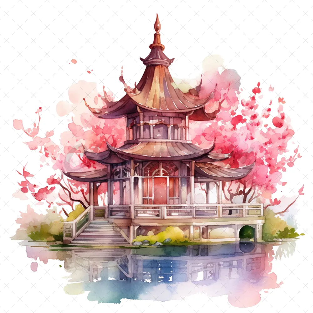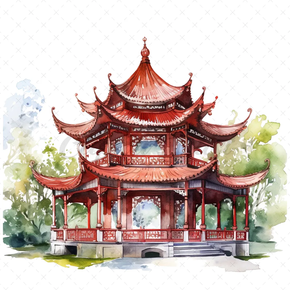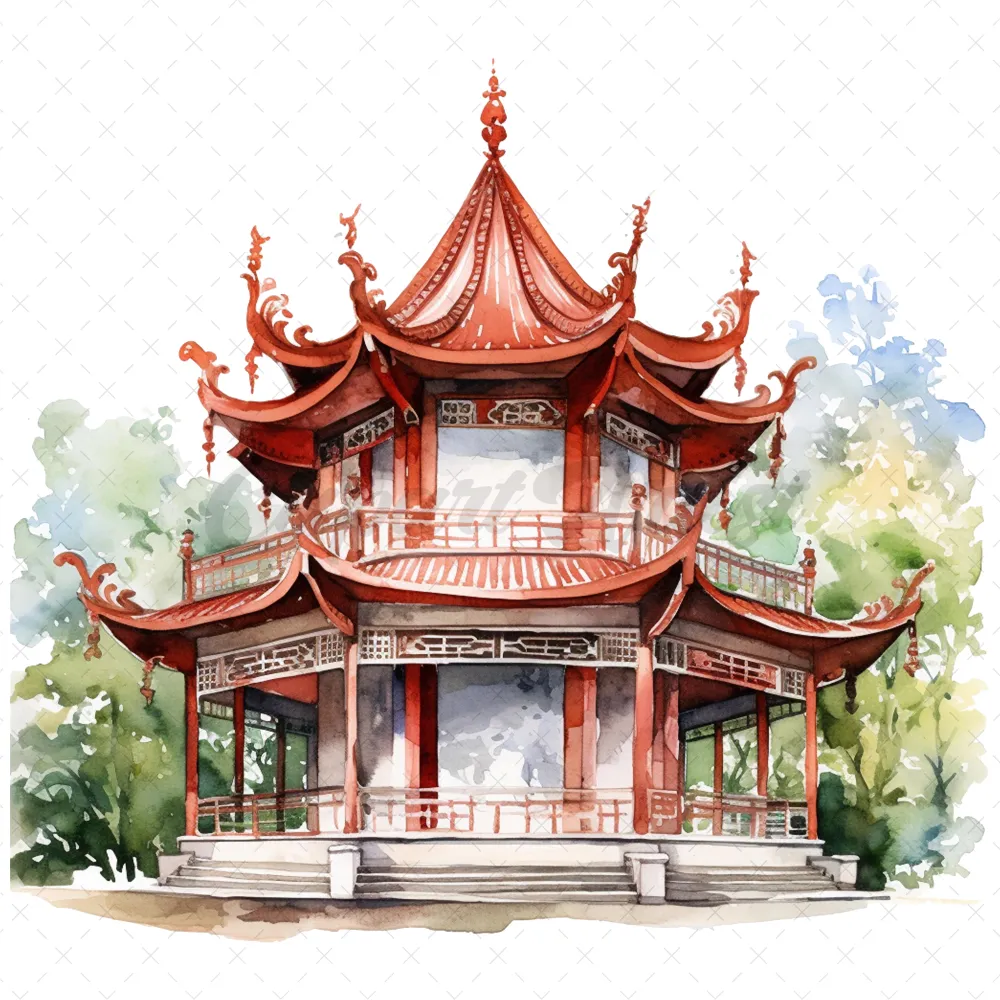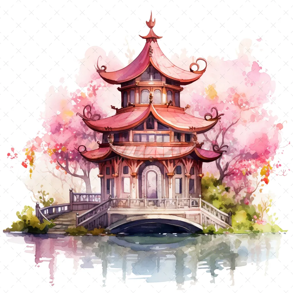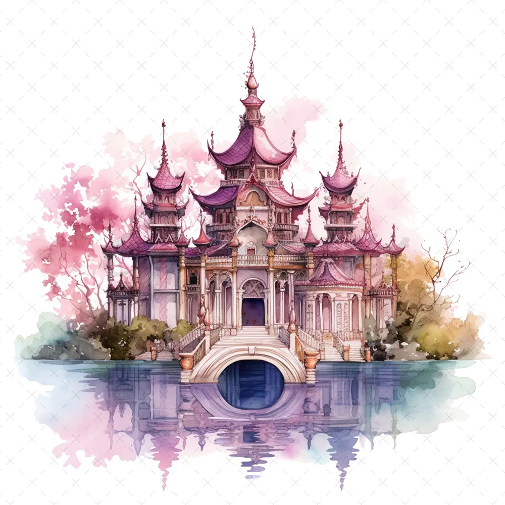 20 High-Quality Fantasy Pavilion Clipart – Fantasy pavilion digital watercolor JPG instant download for commercial use – Digital download