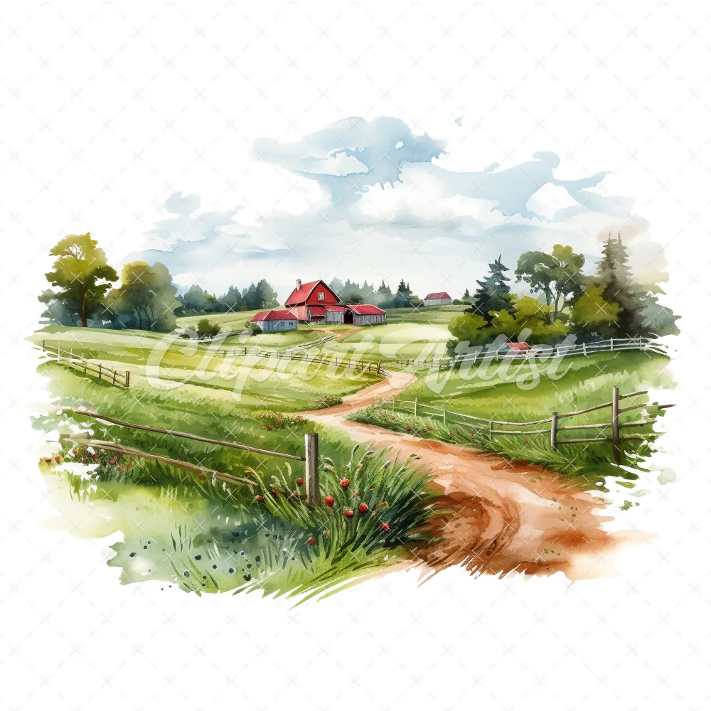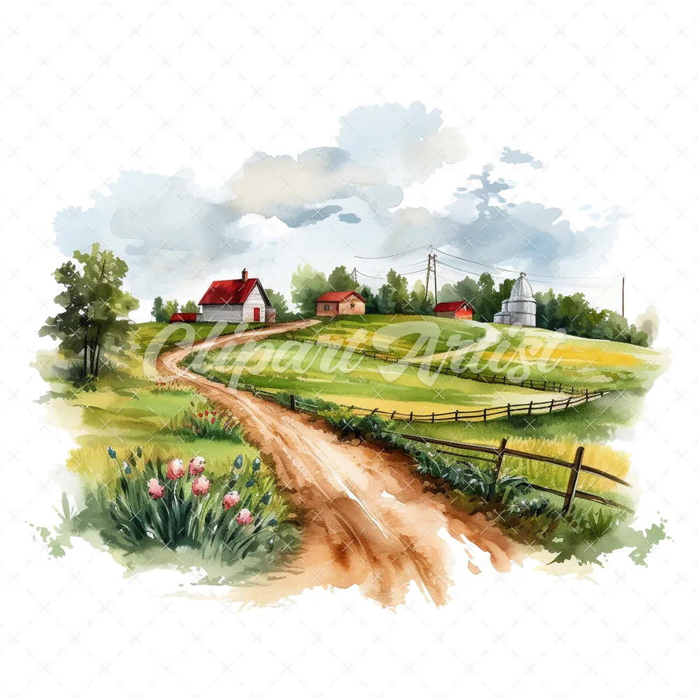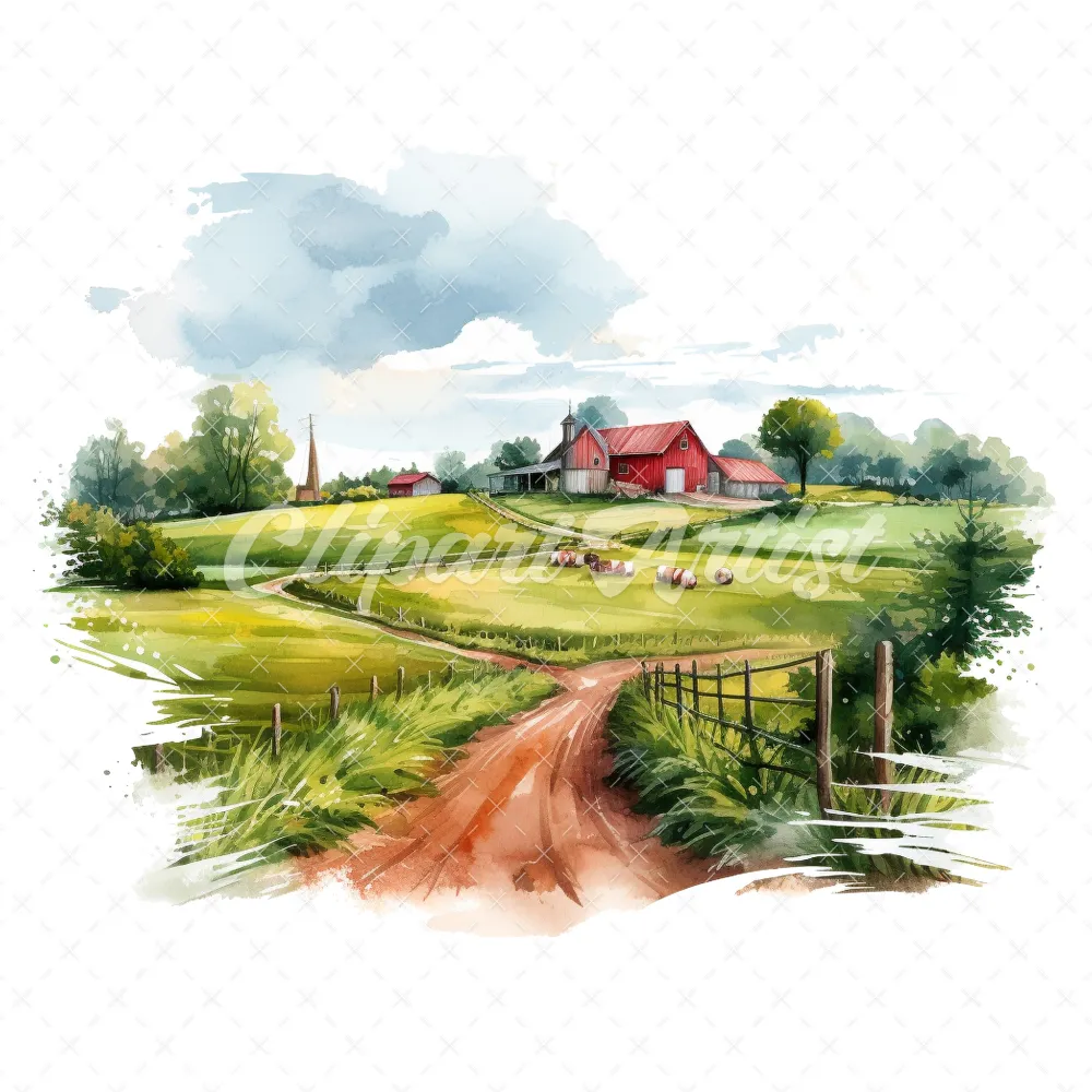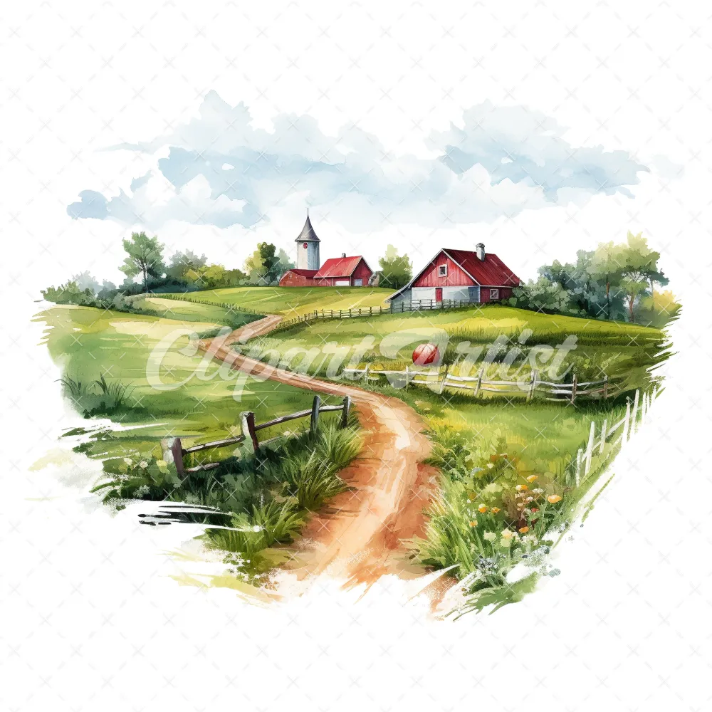 20 High-Quality Farm Fields Clipart – Farm fields digital watercolor JPG instant download for commercial use – Digital download