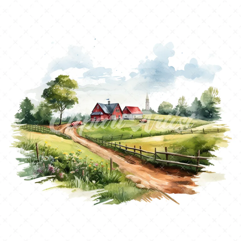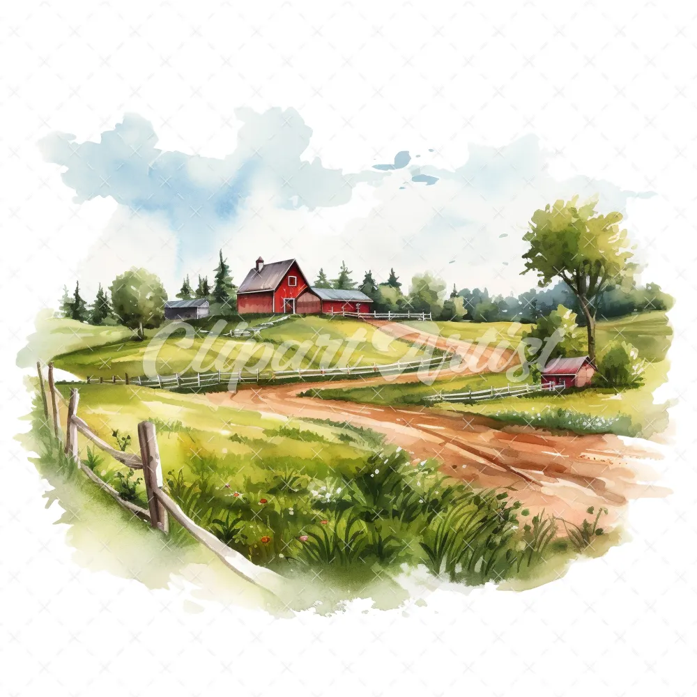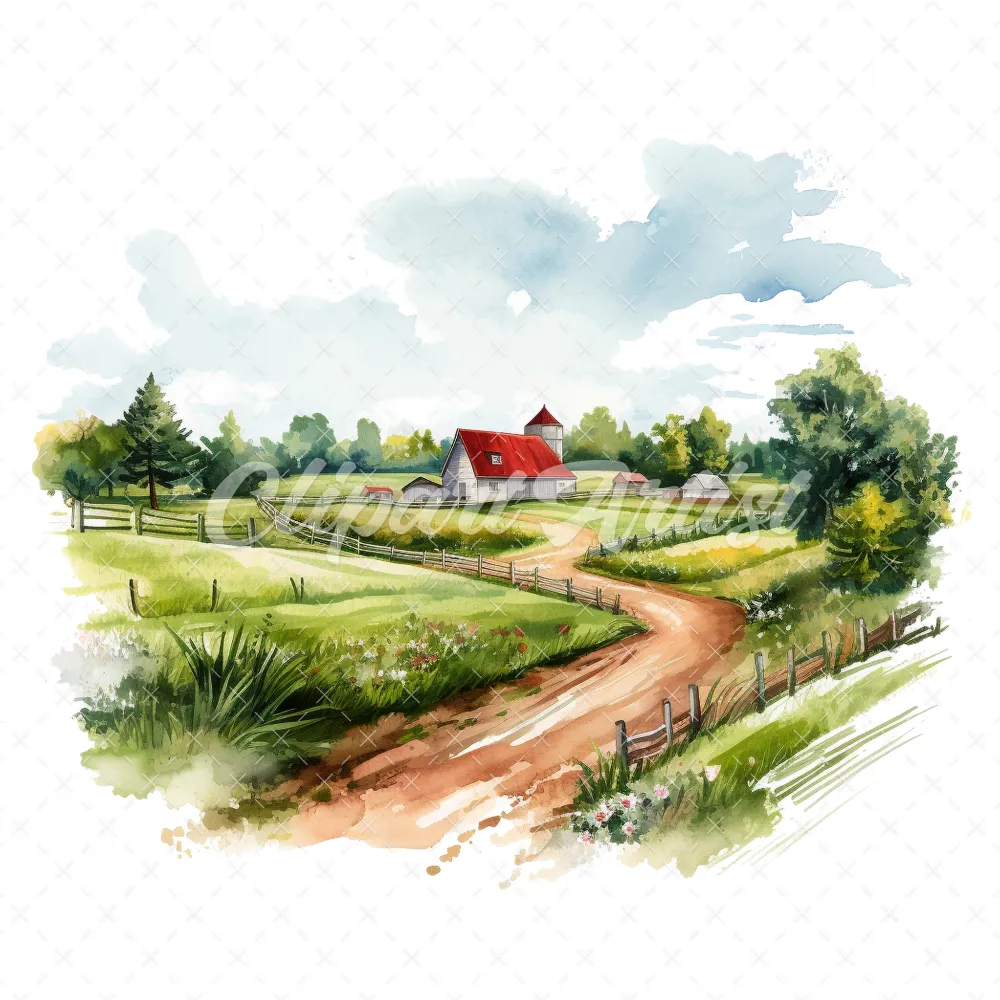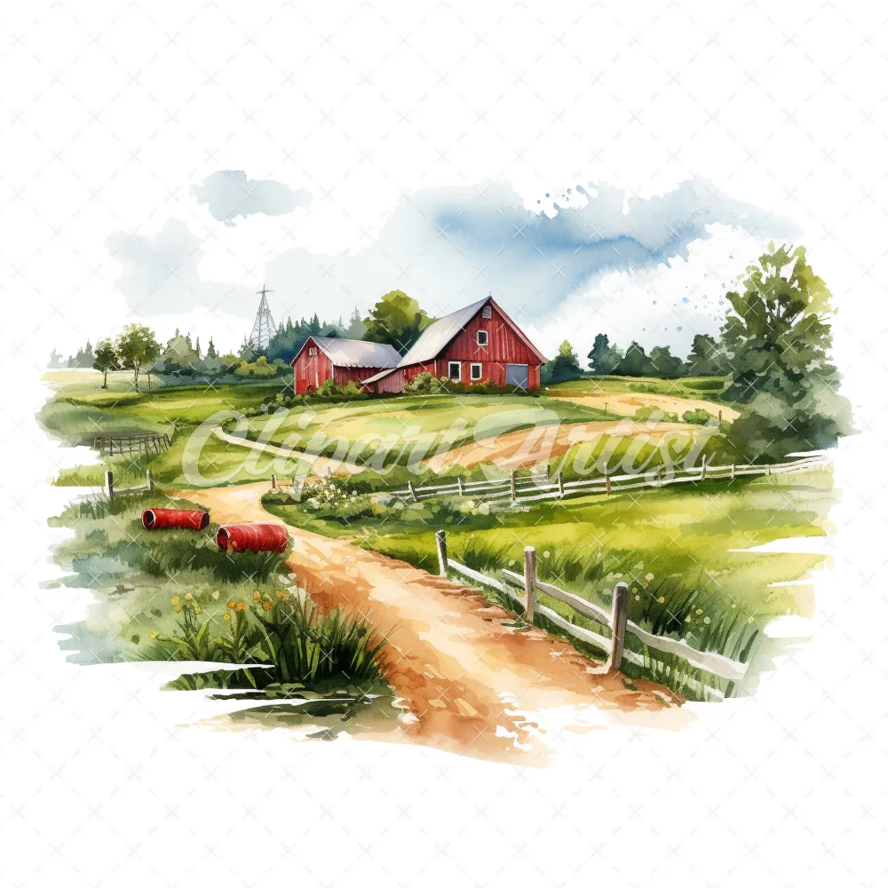 20 High-Quality Farm Fields Clipart – Farm fields digital watercolor JPG instant download for commercial use – Digital download