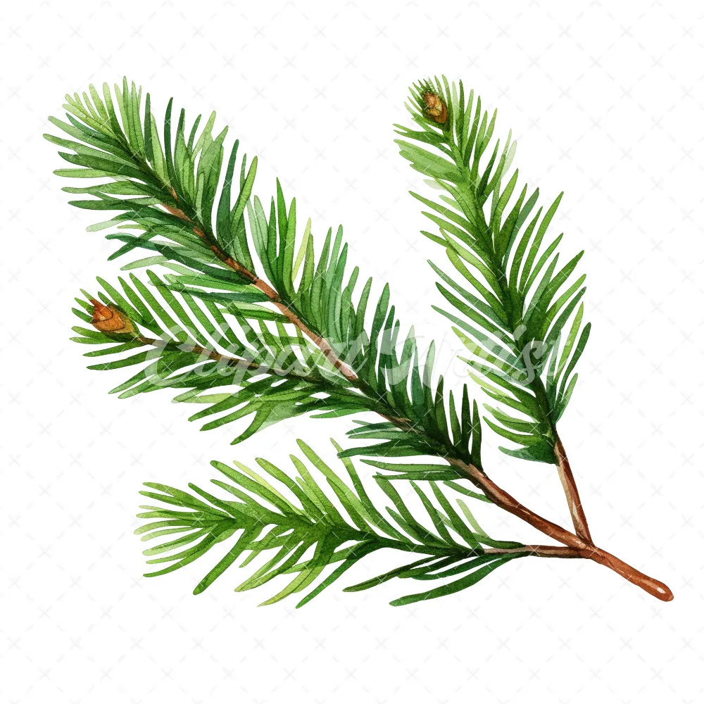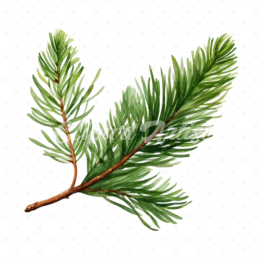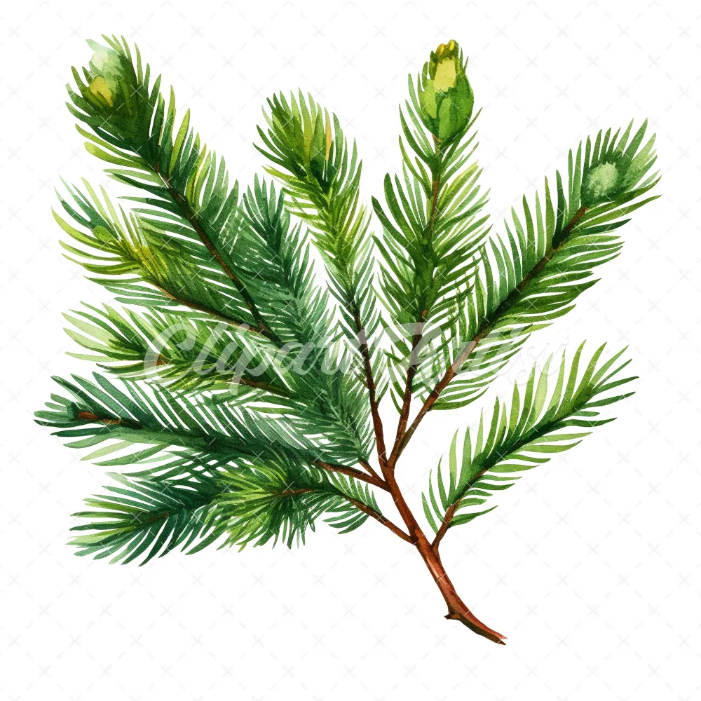 20 High-Quality Fir Branch Clipart – Fir branch digital watercolor JPG instant download for commercial use – Digital download