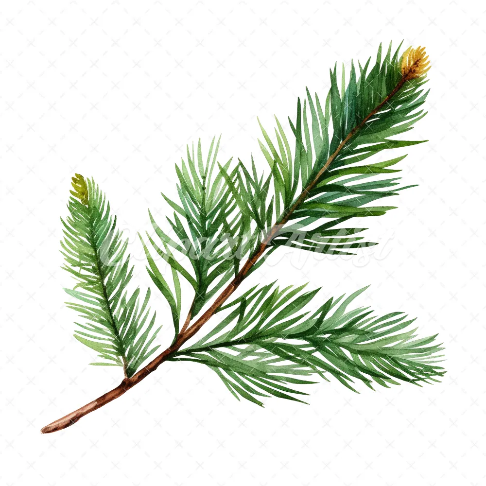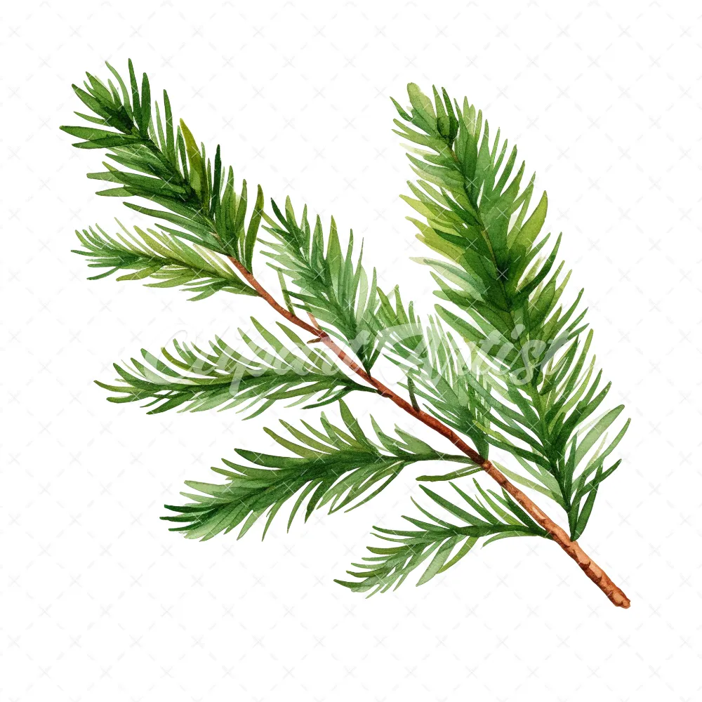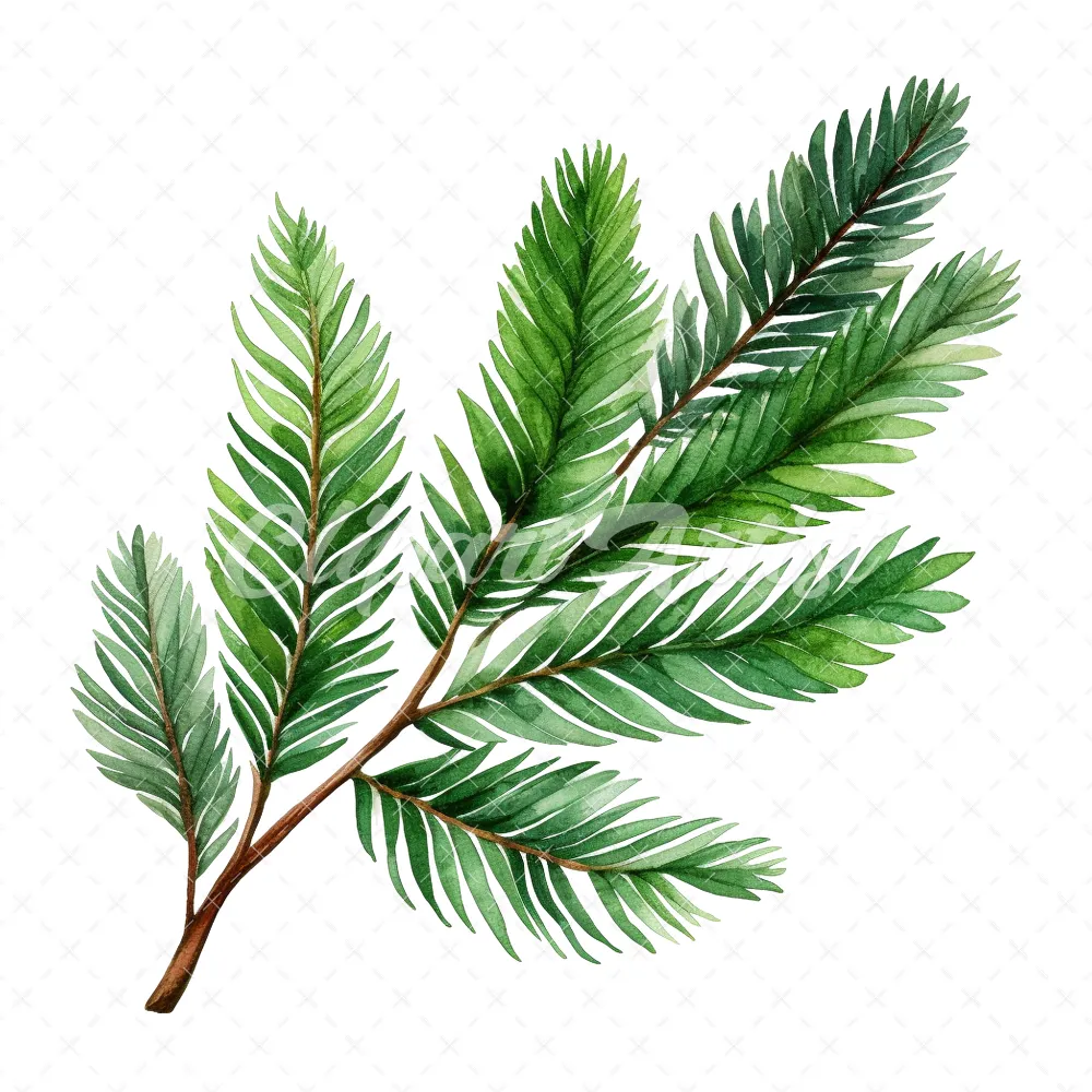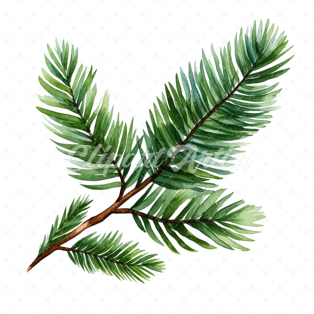 20 High-Quality Fir Branch Clipart – Fir branch digital watercolor JPG instant download for commercial use – Digital download