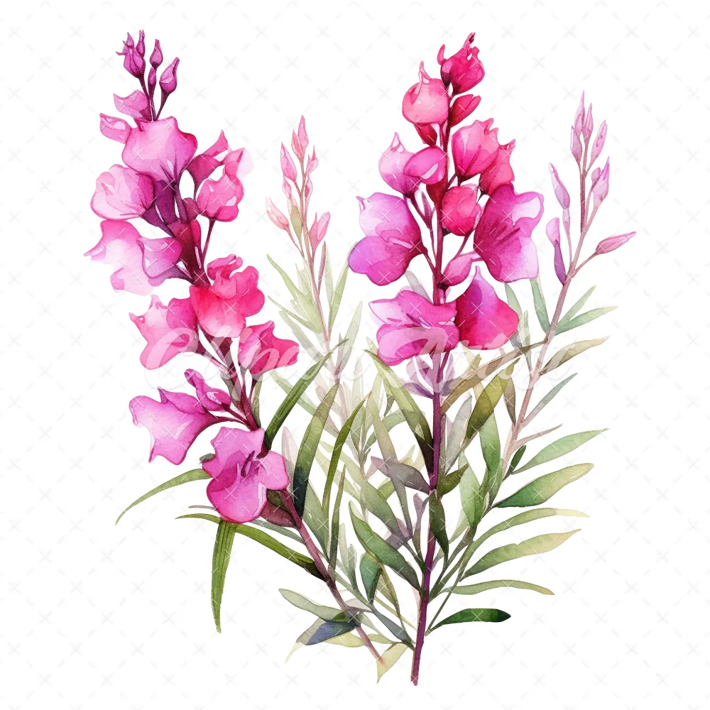 20 High-Quality Fireweed Bouquet Clipart – Fireweed bouquet digital watercolor JPG instant download for commercial use – Digital download