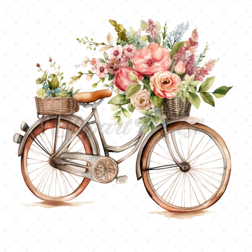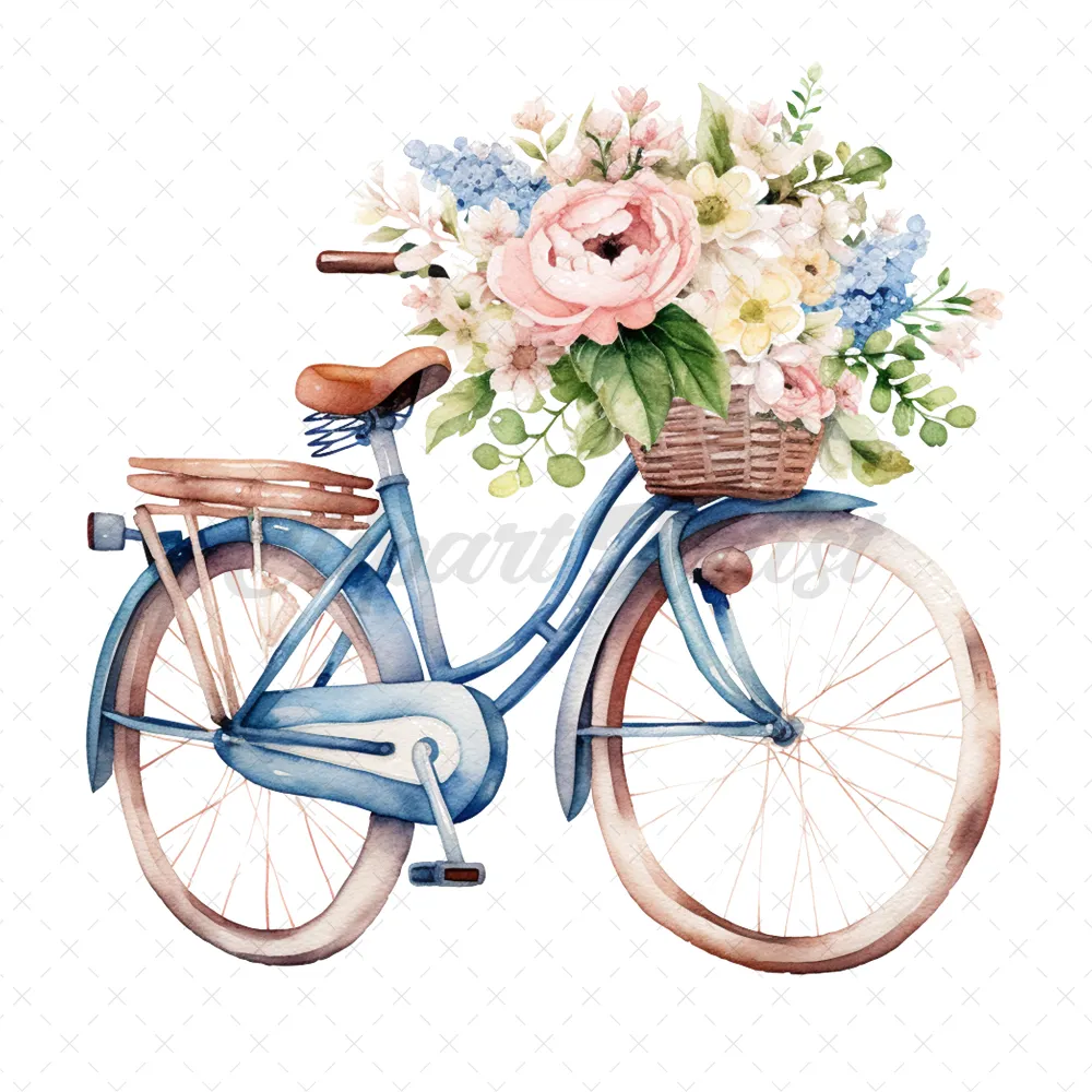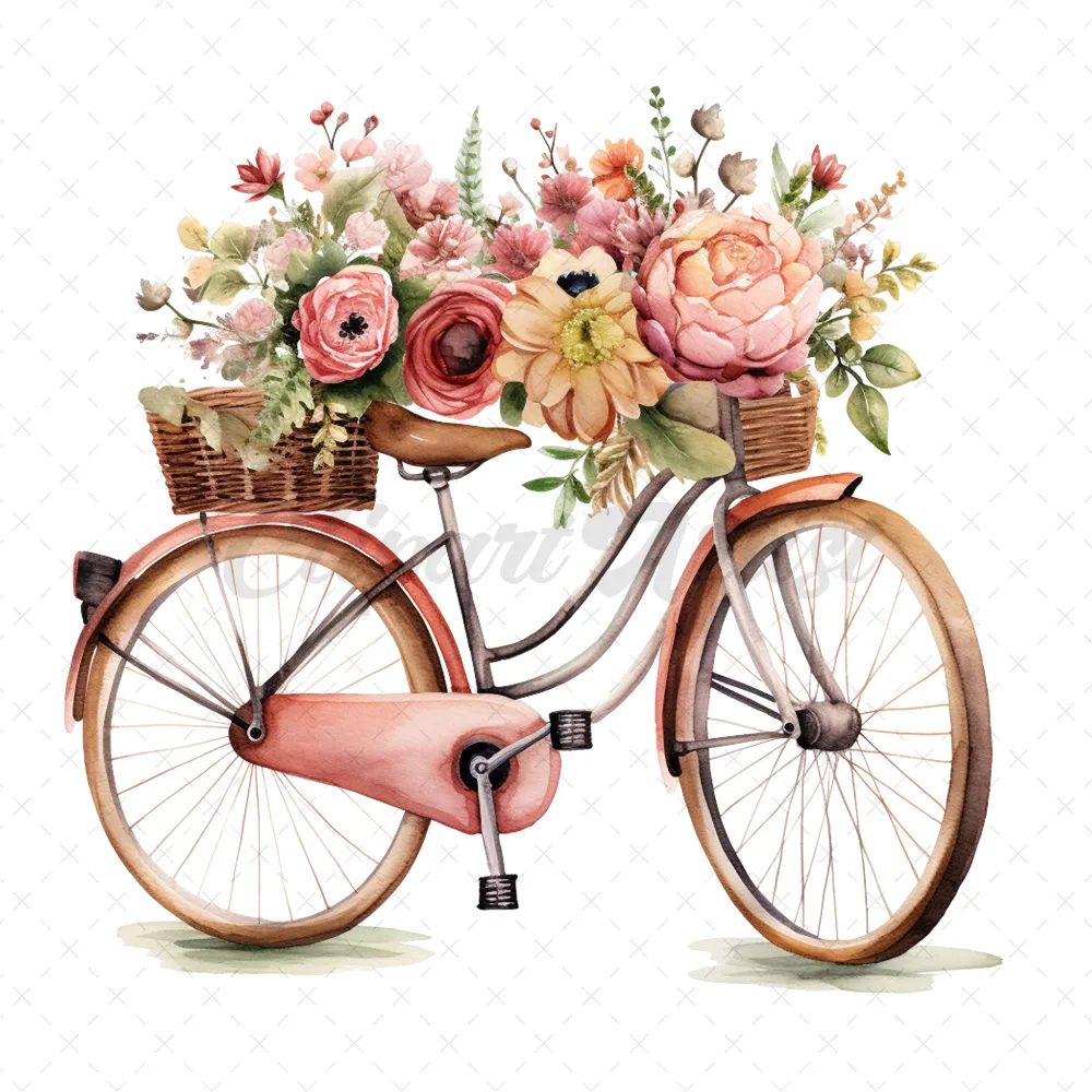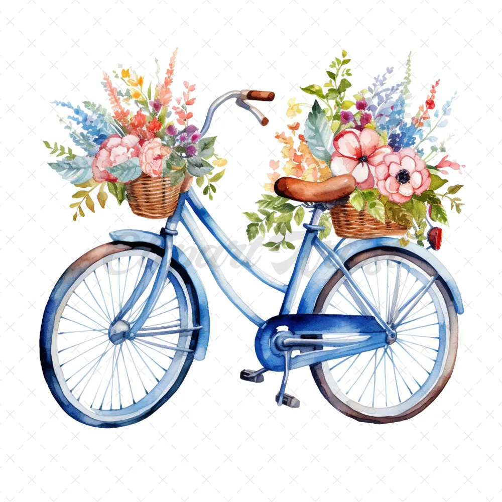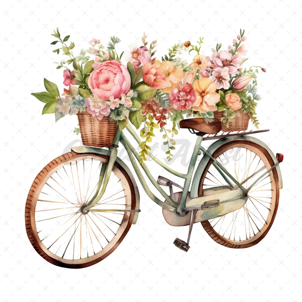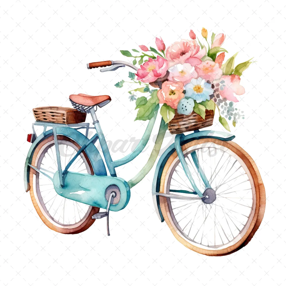 20 High-Quality Floral Bicycles Clipart – Floral bicycles digital watercolor JPG instant download for commercial use – Digital download
