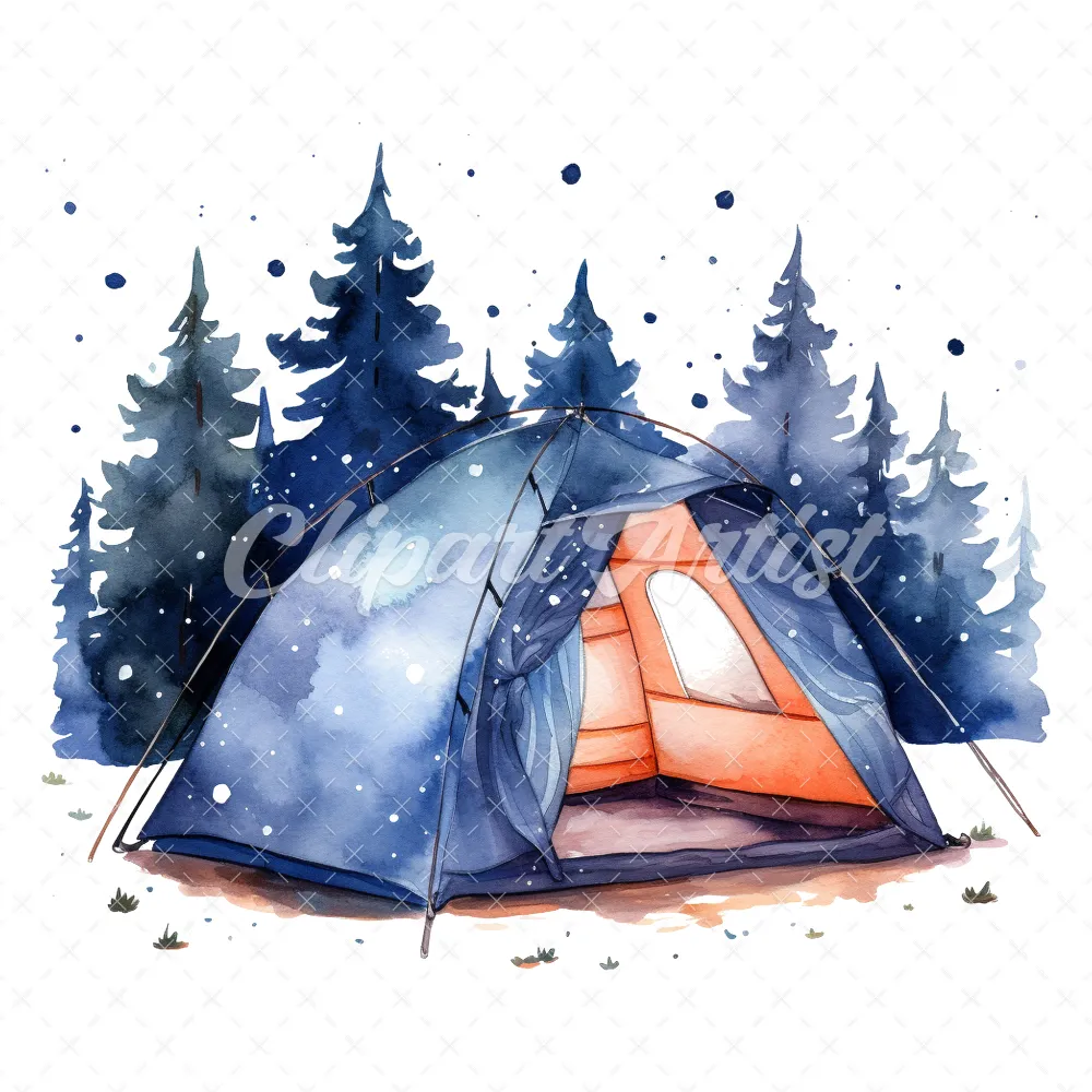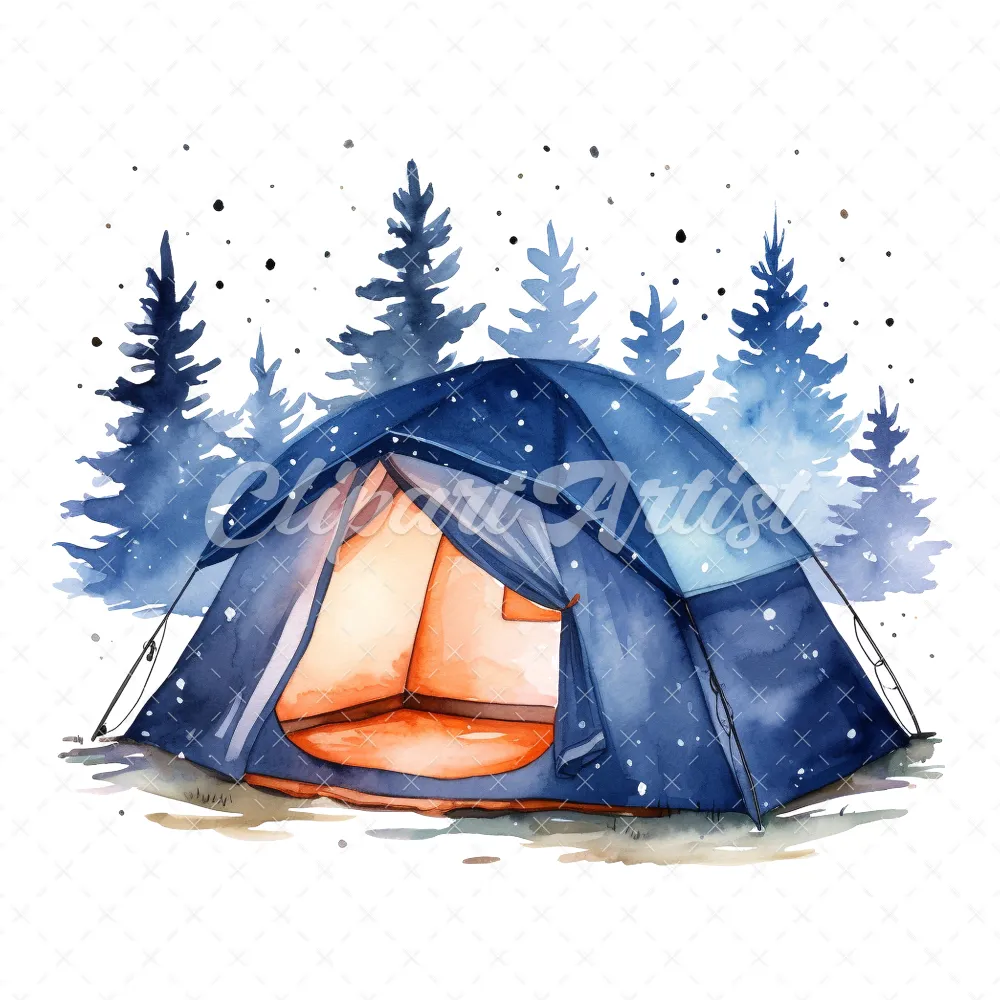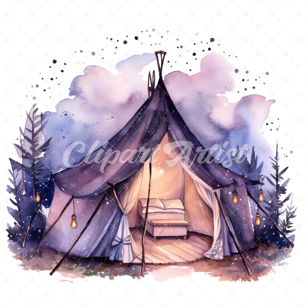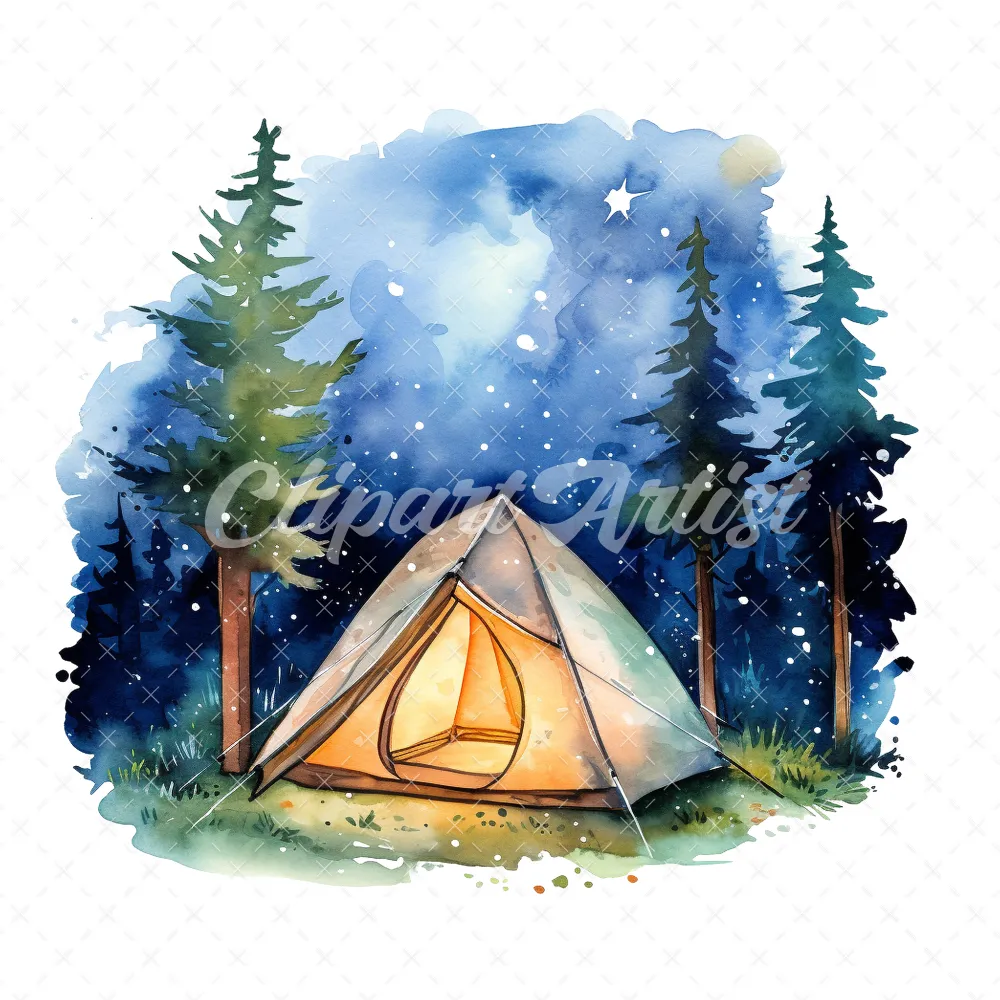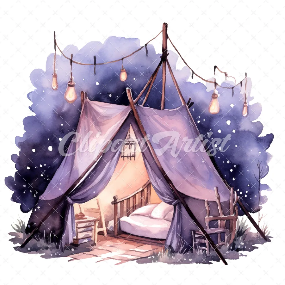 20 High-Quality Night Lighting Tents Clipart – Lighting tents digital watercolor JPG instant download for commercial use – Digital download