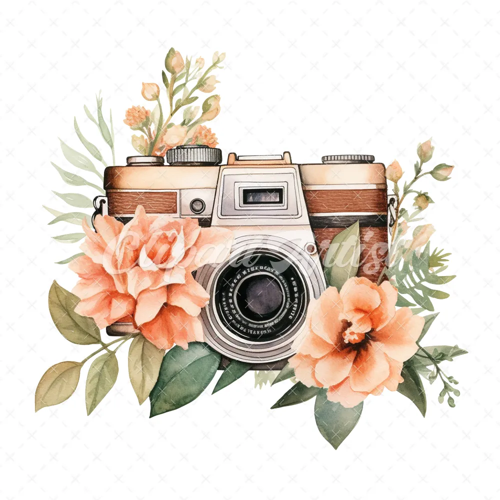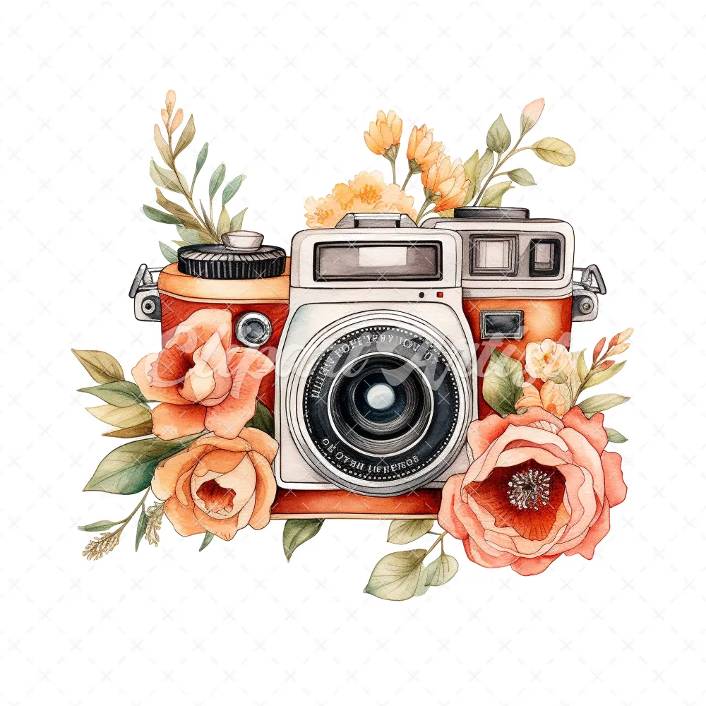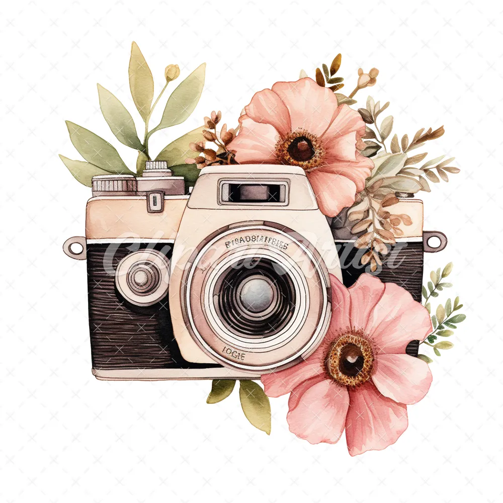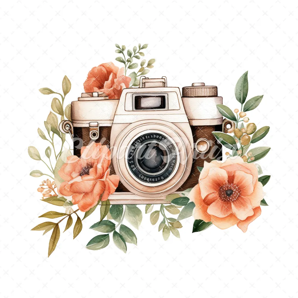 20 High-Quality Floral Cameras Clipart – Floral cameras digital watercolor JPG instant download for commercial use – Digital download