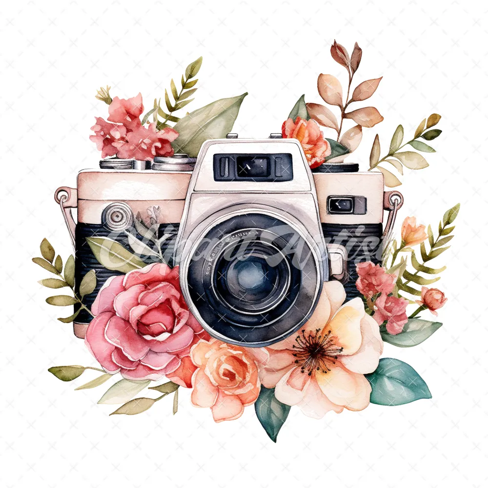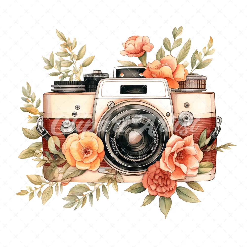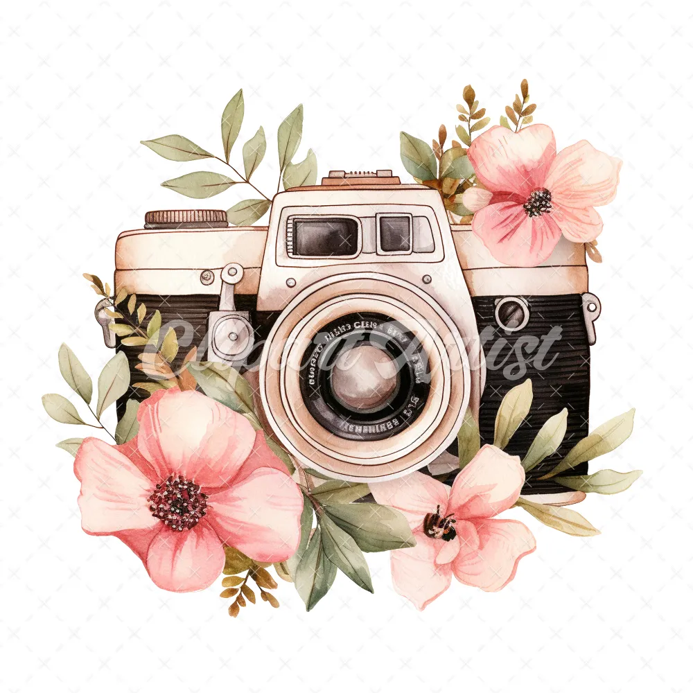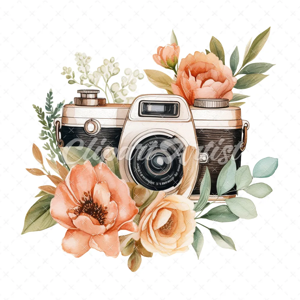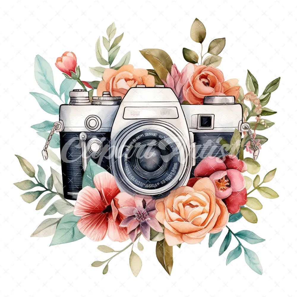 20 High-Quality Floral Cameras Clipart – Floral cameras digital watercolor JPG instant download for commercial use – Digital download