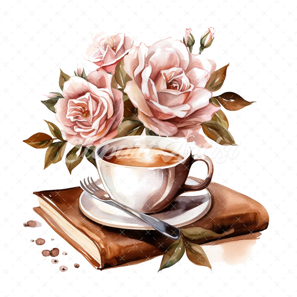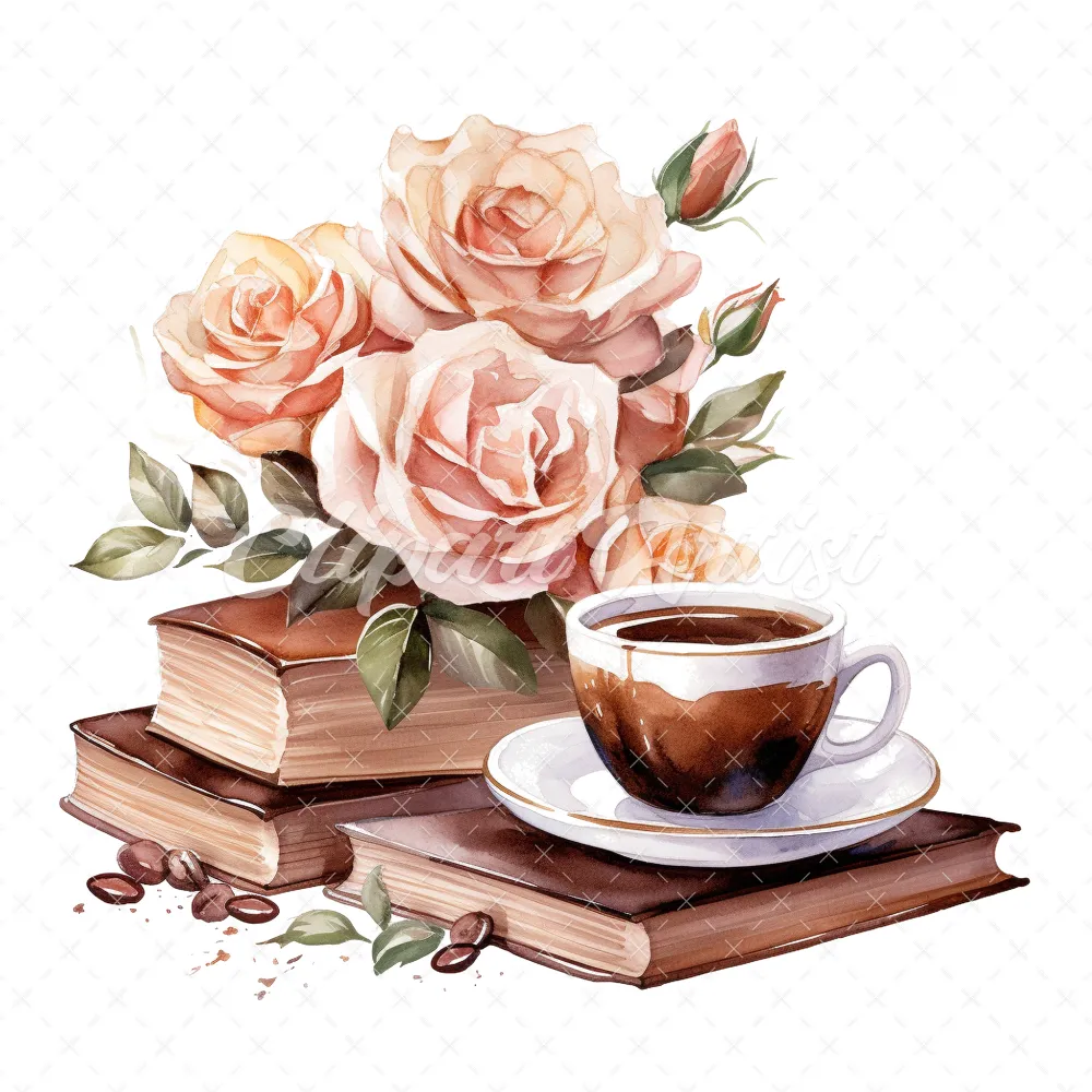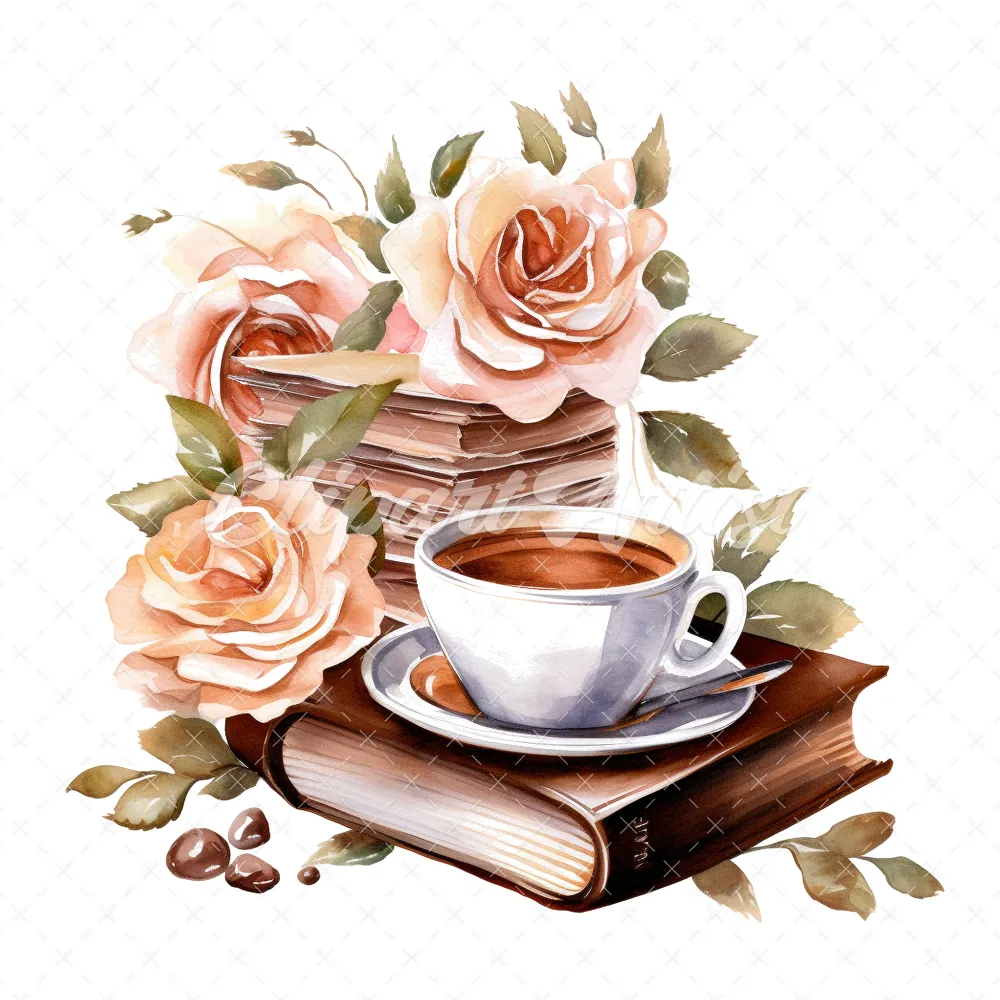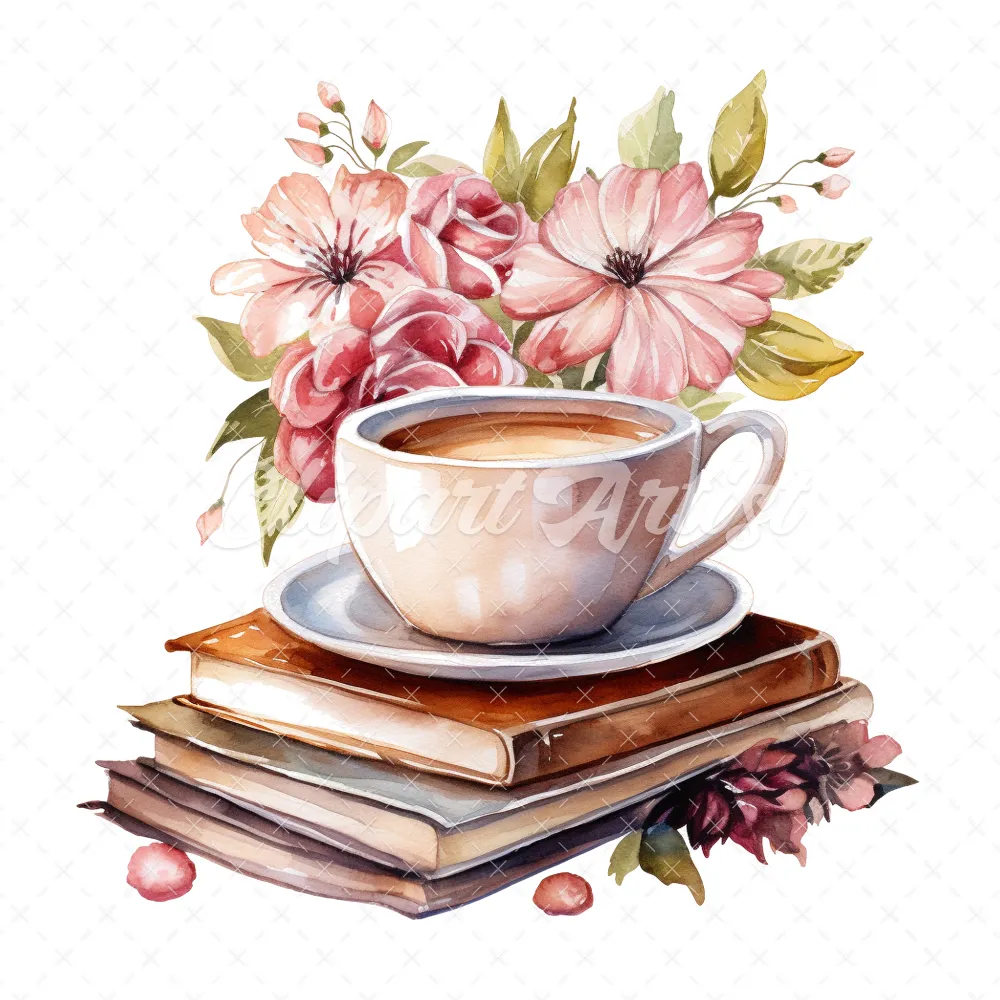 20 High-Quality Floral Coffee Books Clipart – Coffee books digital watercolor JPG instant download for commercial use – Digital download