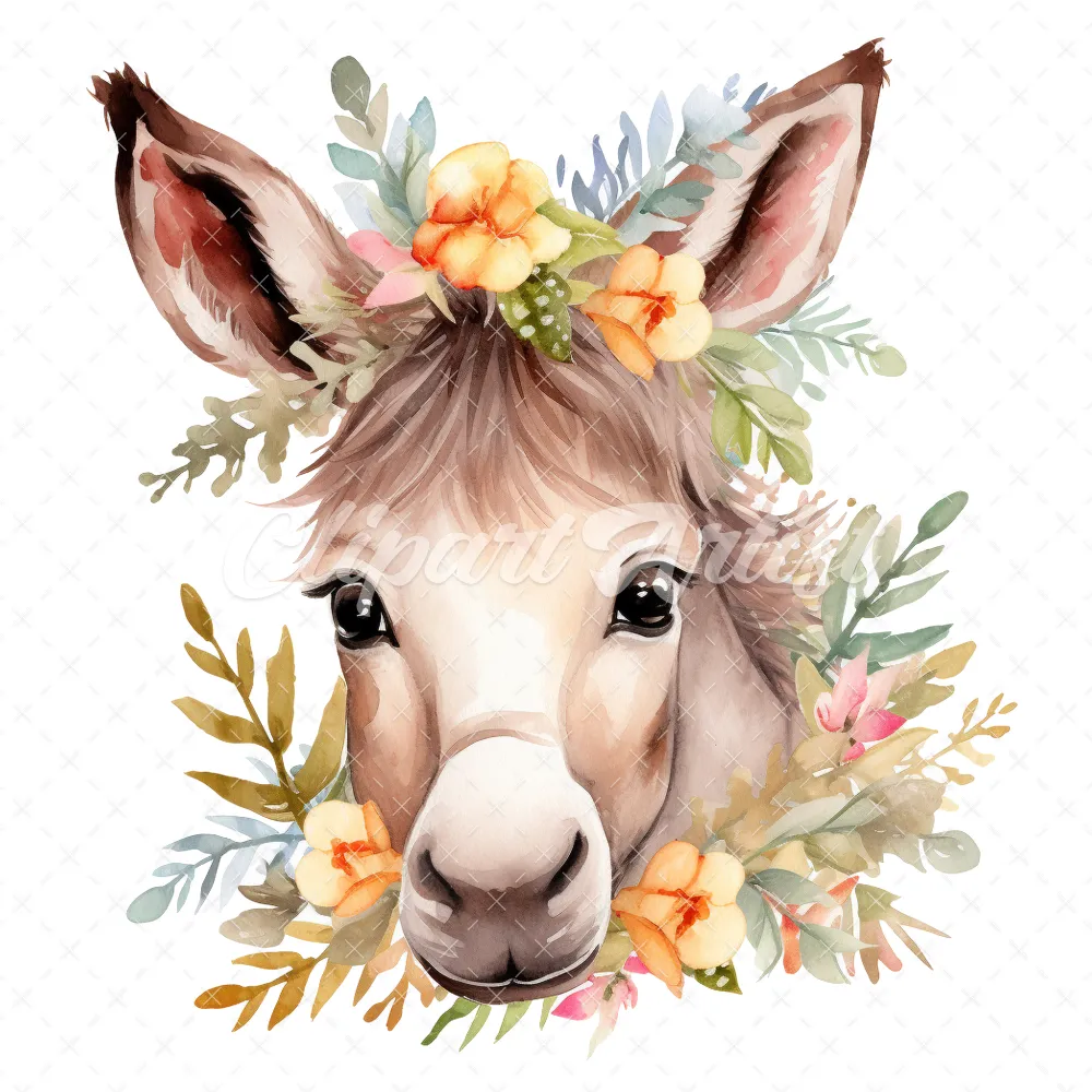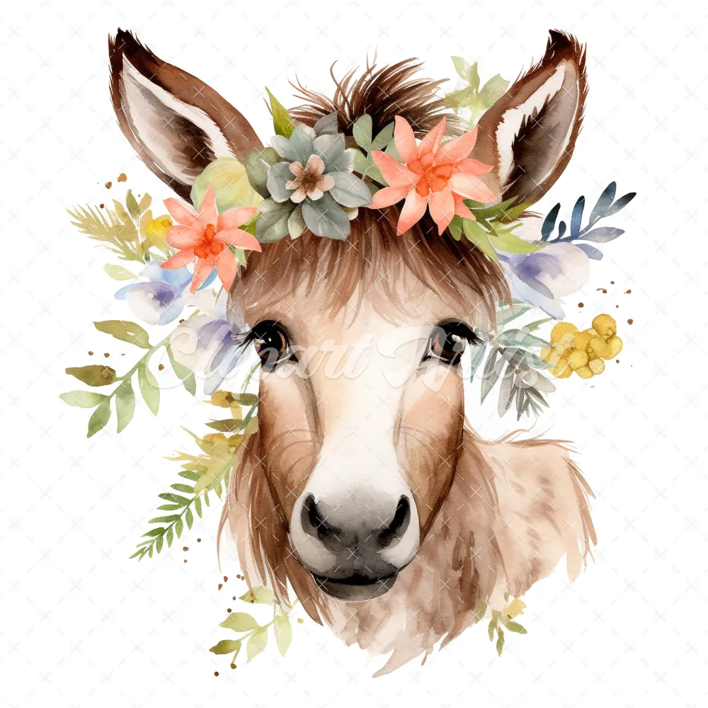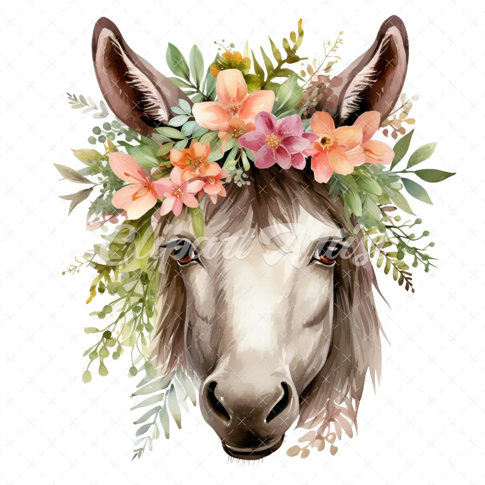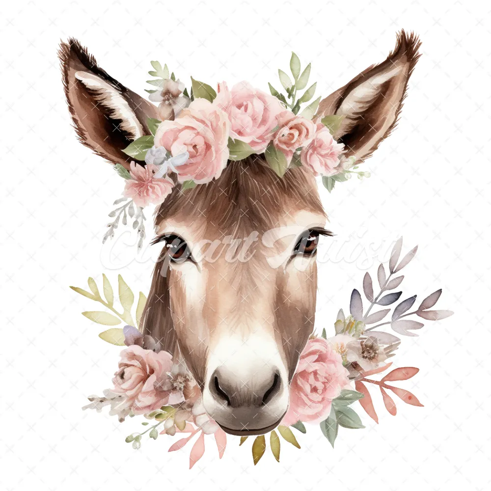 20 High-Quality Floral Donkey Clipart – Floral donkey digital watercolor JPG instant download for commercial use – Digital download
