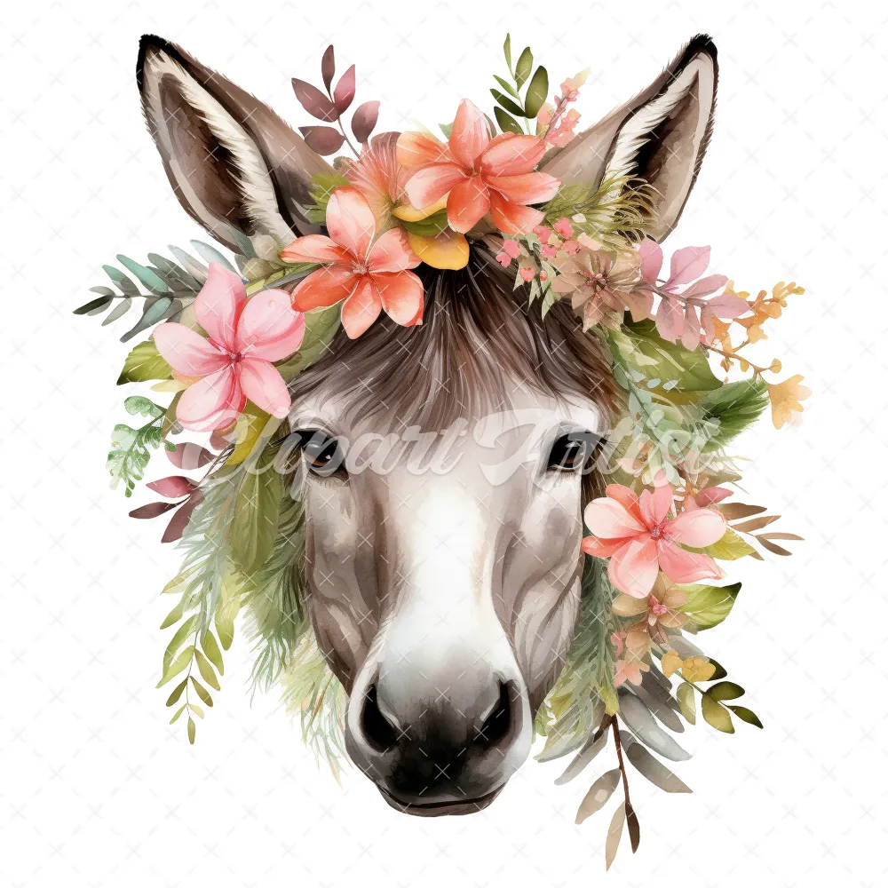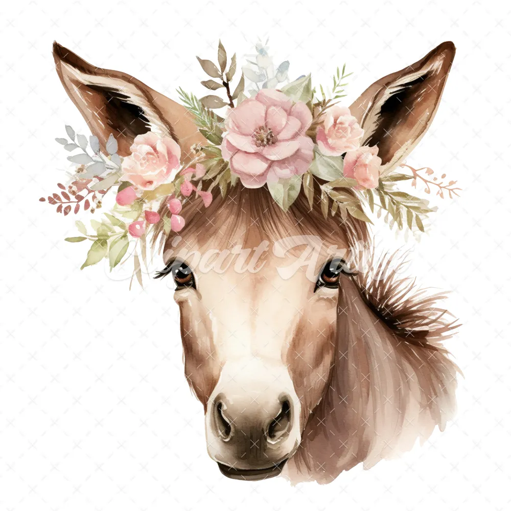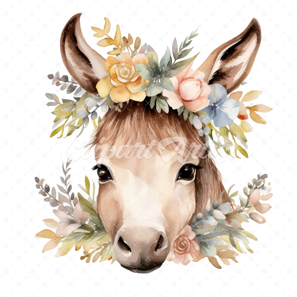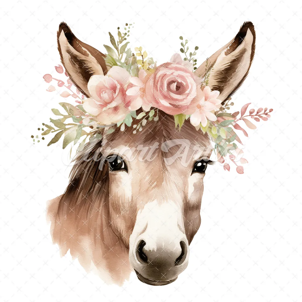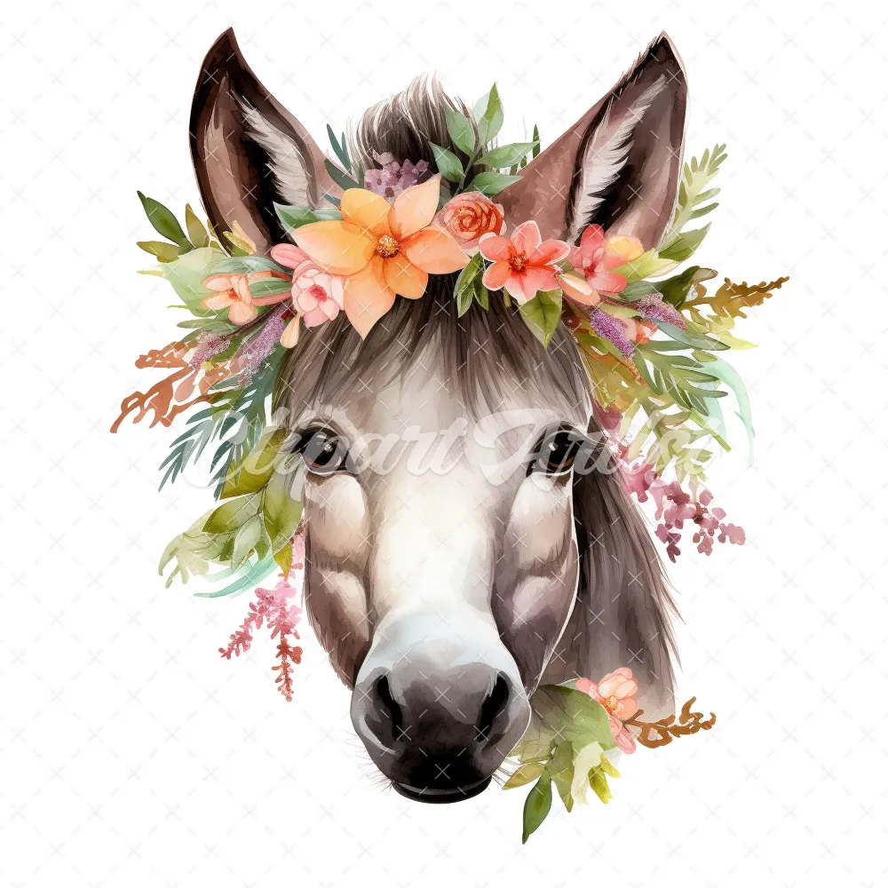 20 High-Quality Floral Donkey Clipart – Floral donkey digital watercolor JPG instant download for commercial use – Digital download