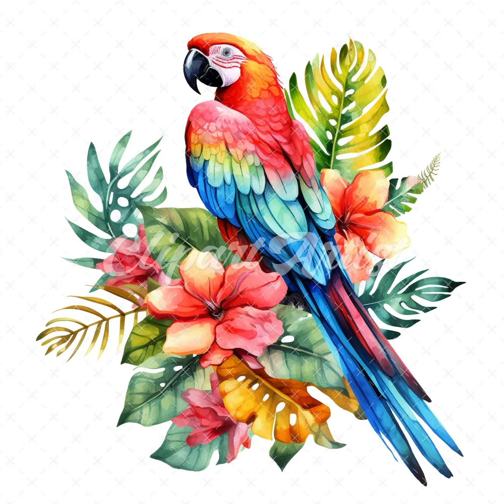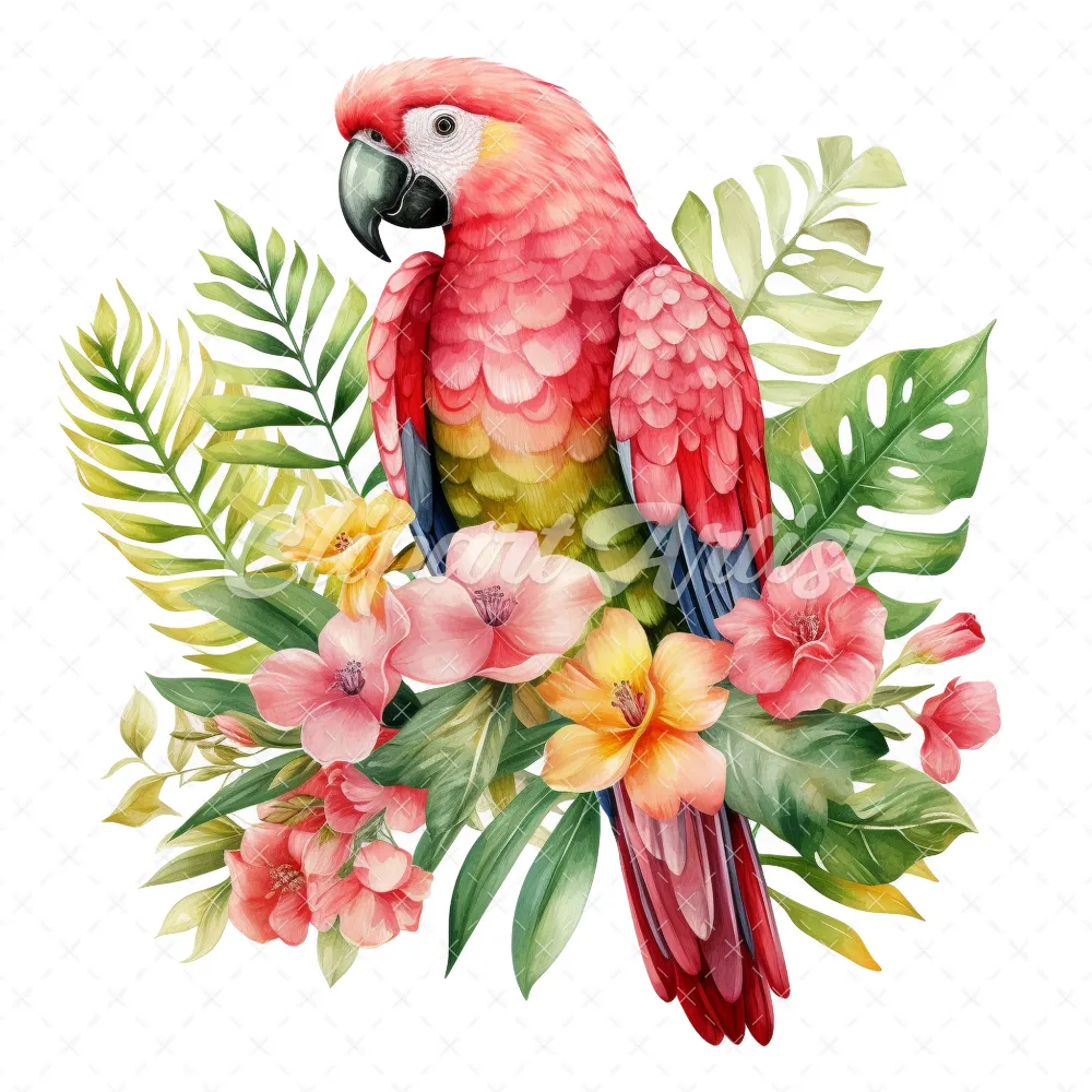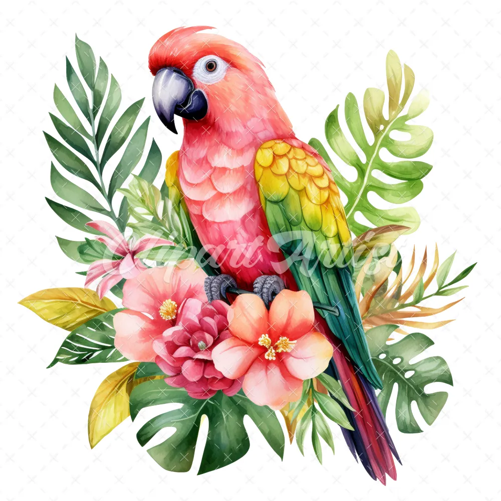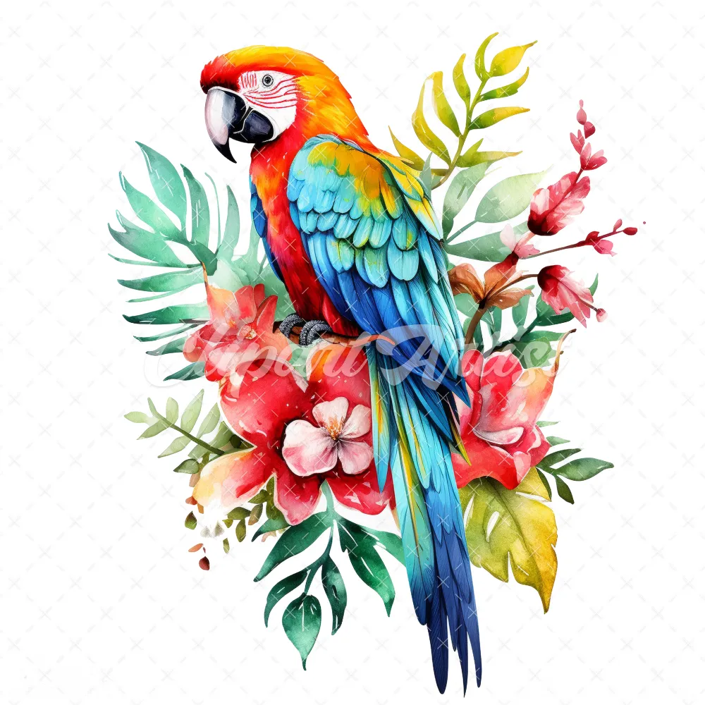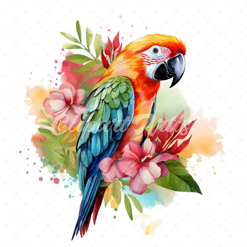 20 High-Quality Floral Parrot Clipart – Floral parrot digital watercolor JPG instant download for commercial use – Digital download