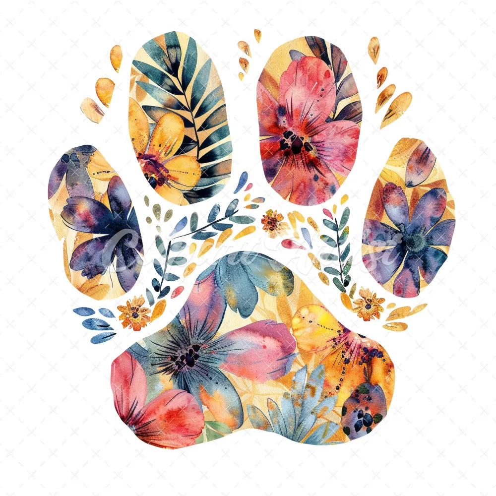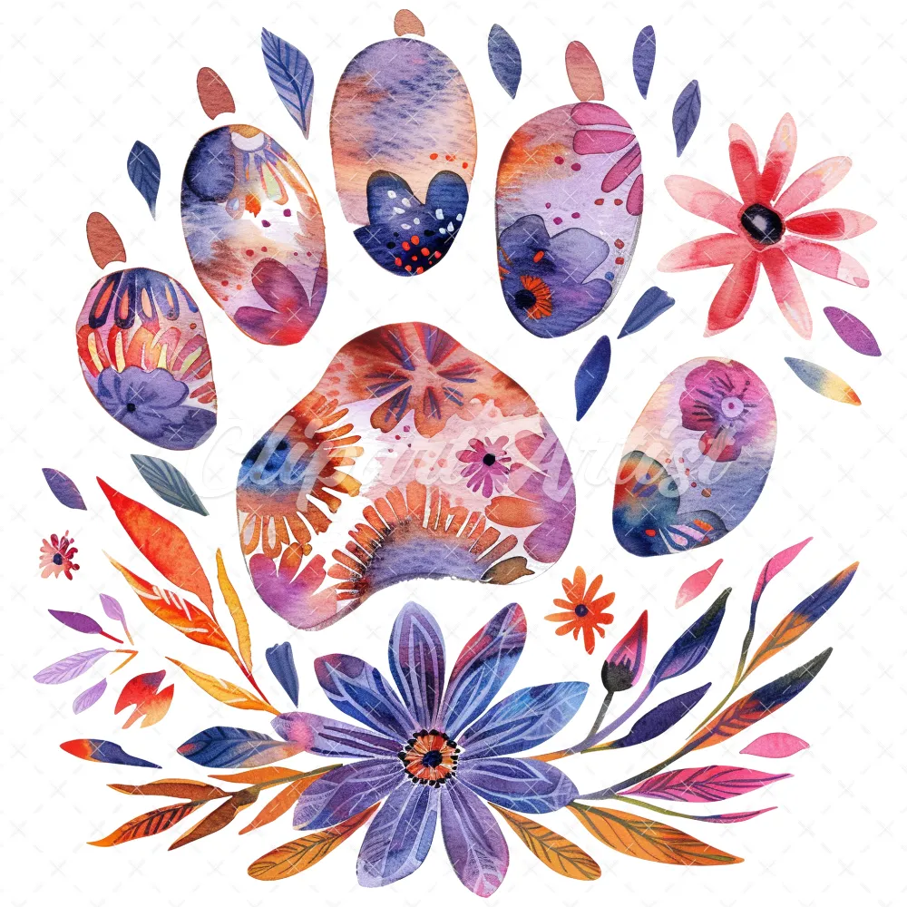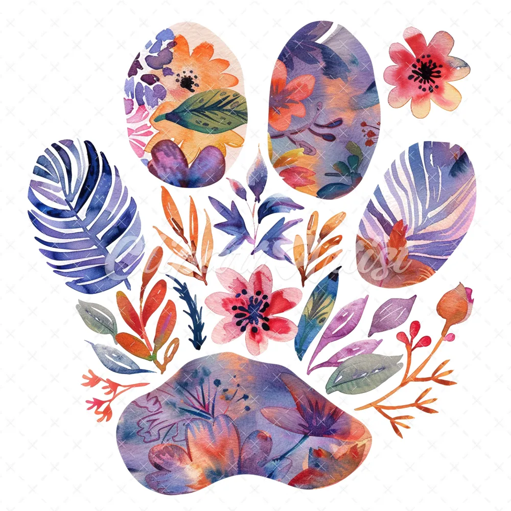 20 High-Quality Floral Paw Prints Clipart – Floral paw prints digital watercolor JPG instant download for commercial use – Digital download