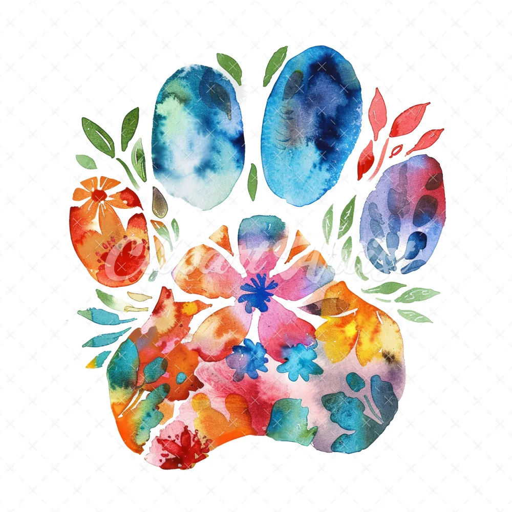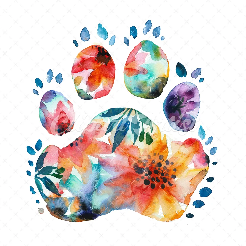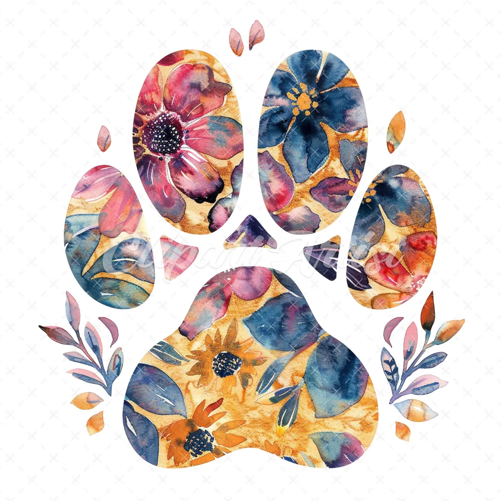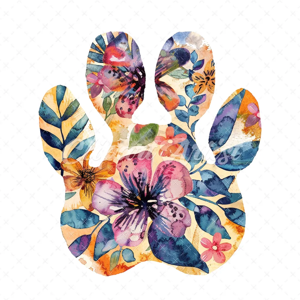 20 High-Quality Floral Paw Prints Clipart – Floral paw prints digital watercolor JPG instant download for commercial use – Digital download