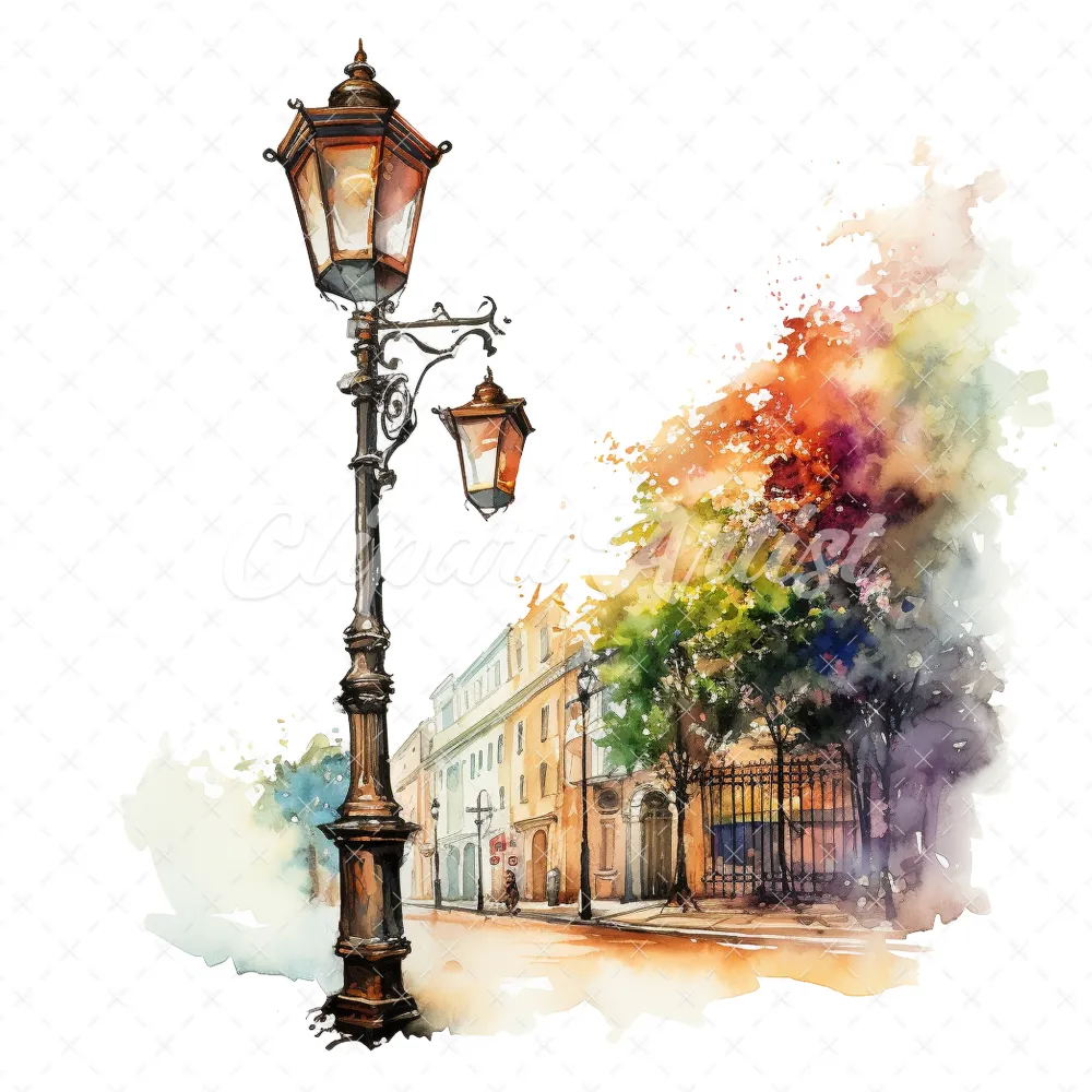 20 High-Quality Floral Street Lamps Clipart – Street lamps digital watercolor JPG instant download for commercial use – Digital download