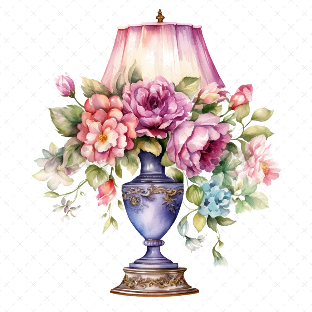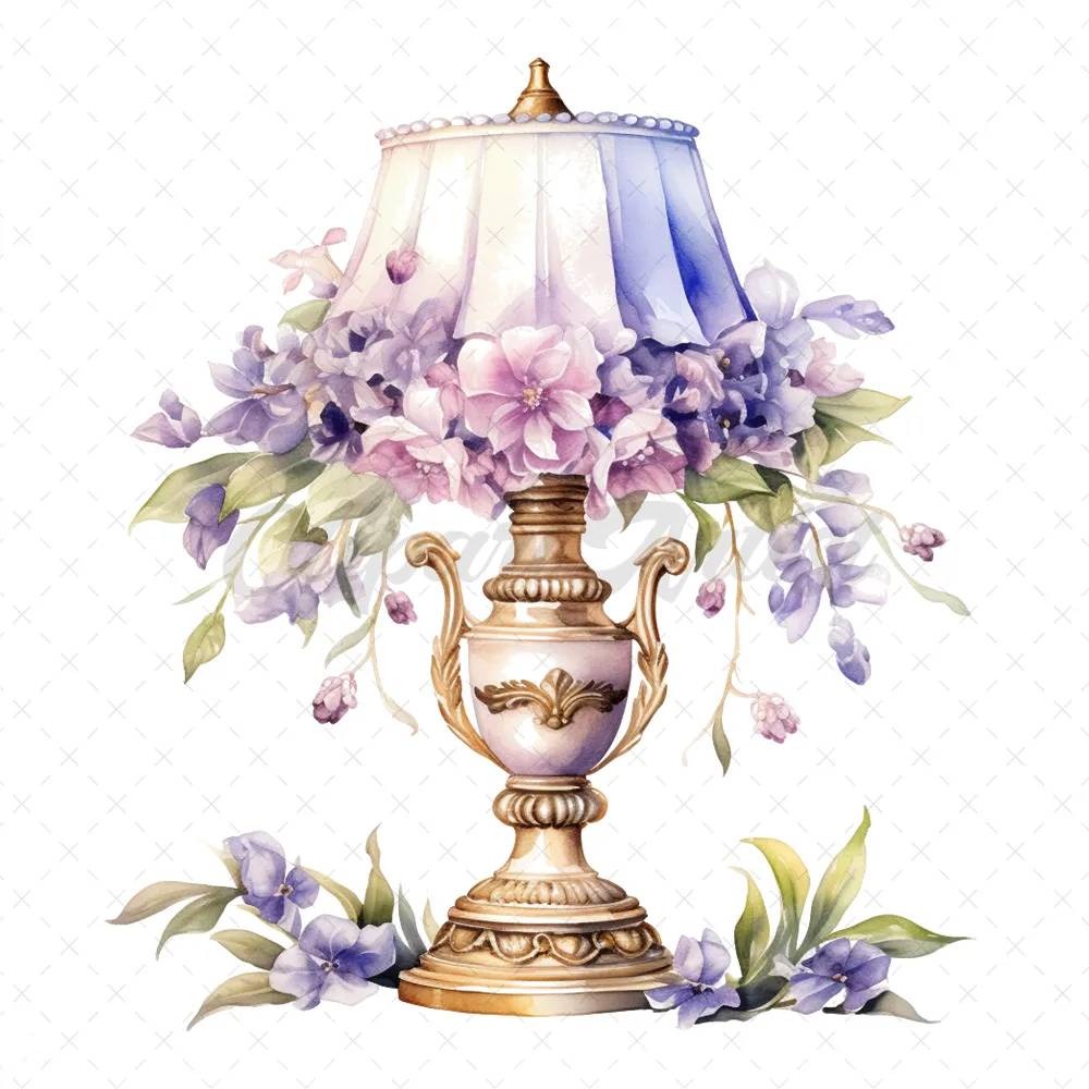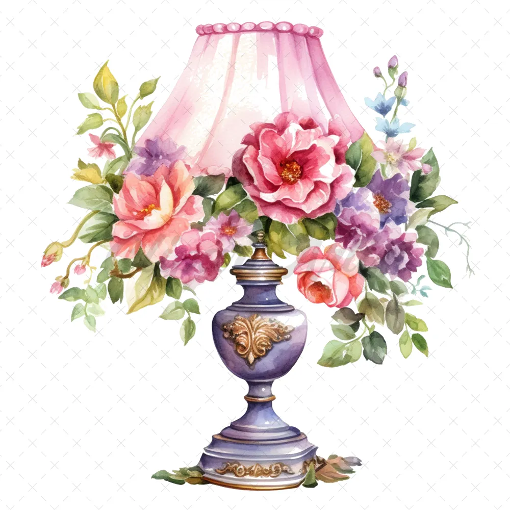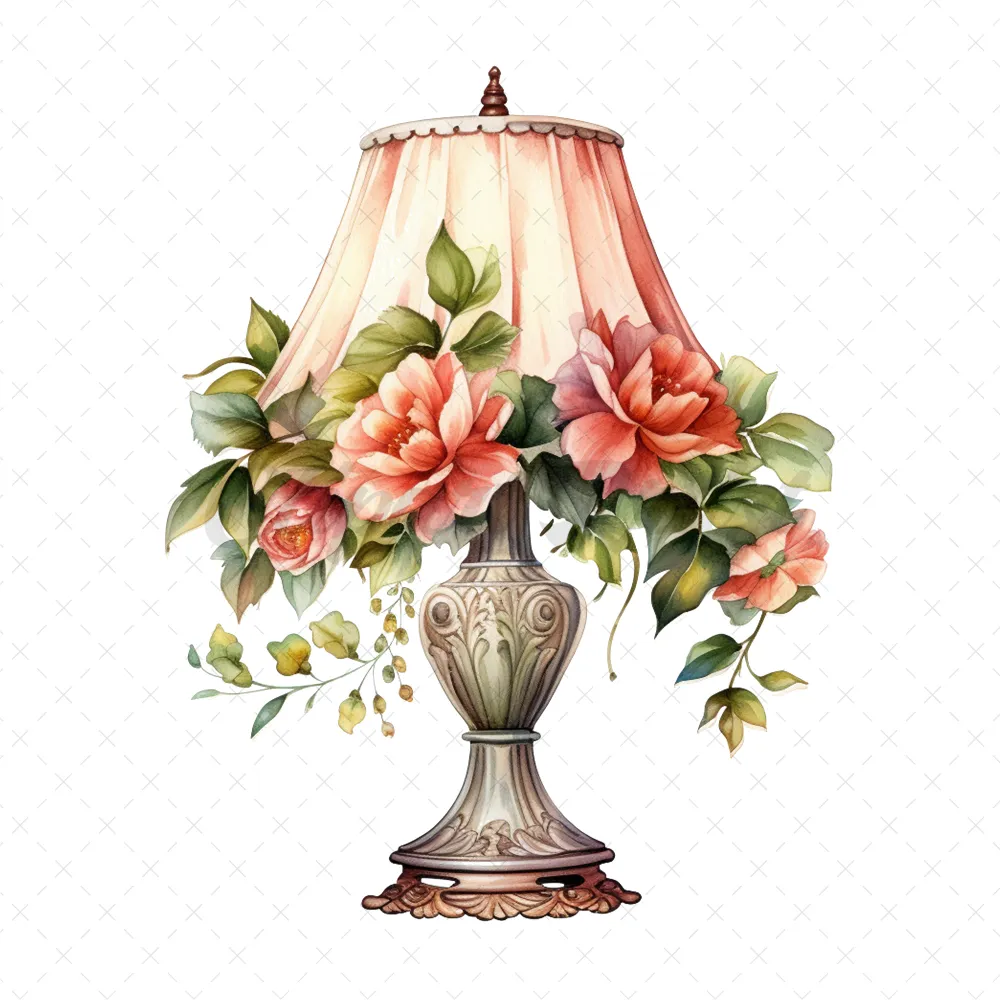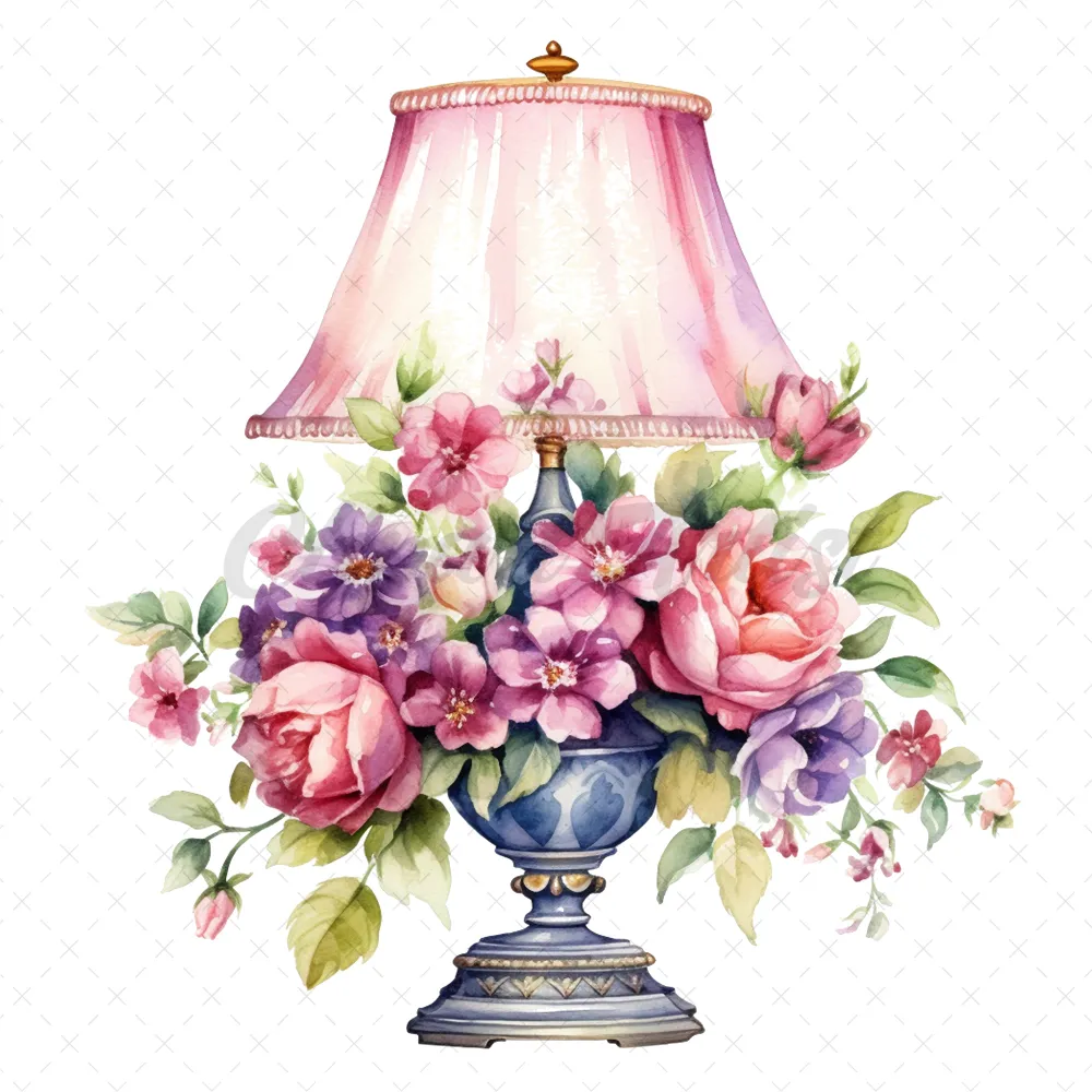 20 High-Quality Floral Table Lamps Clipart – Floral table lamp watercolor digital JPG instant download for commercial use – Digital download