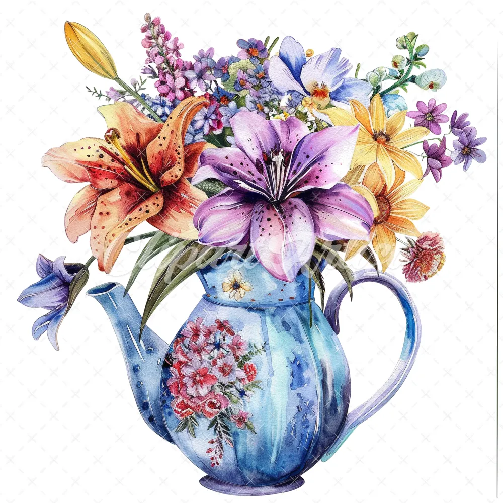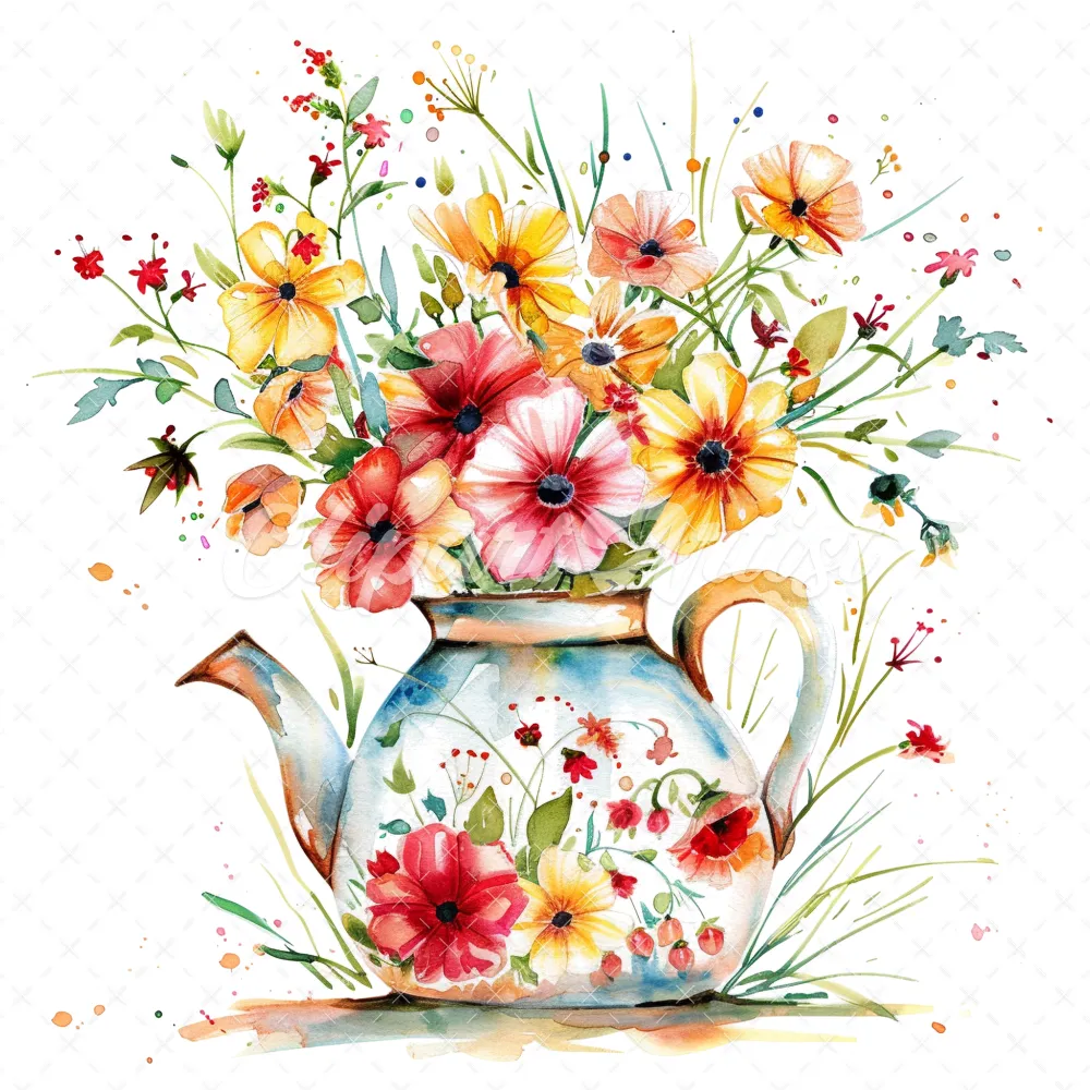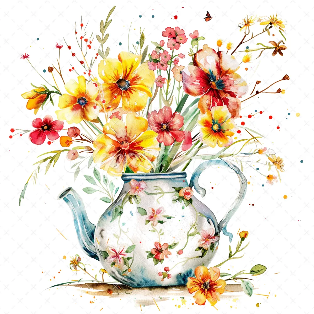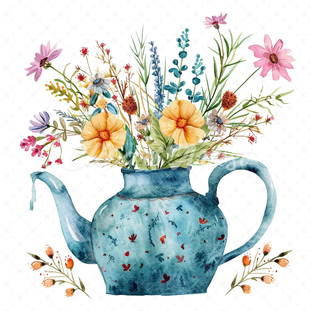 20 High-Quality Floral Teapot Clipart – Floral teapot digital watercolor JPG instant download for commercial use – Digital download