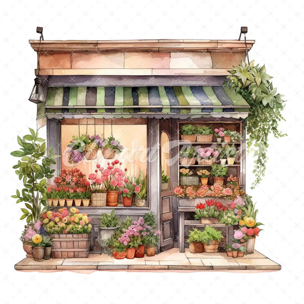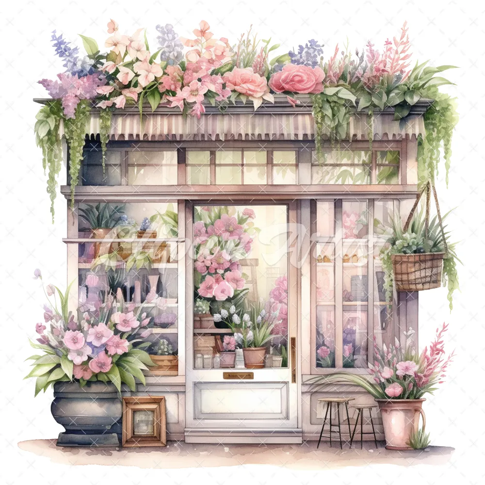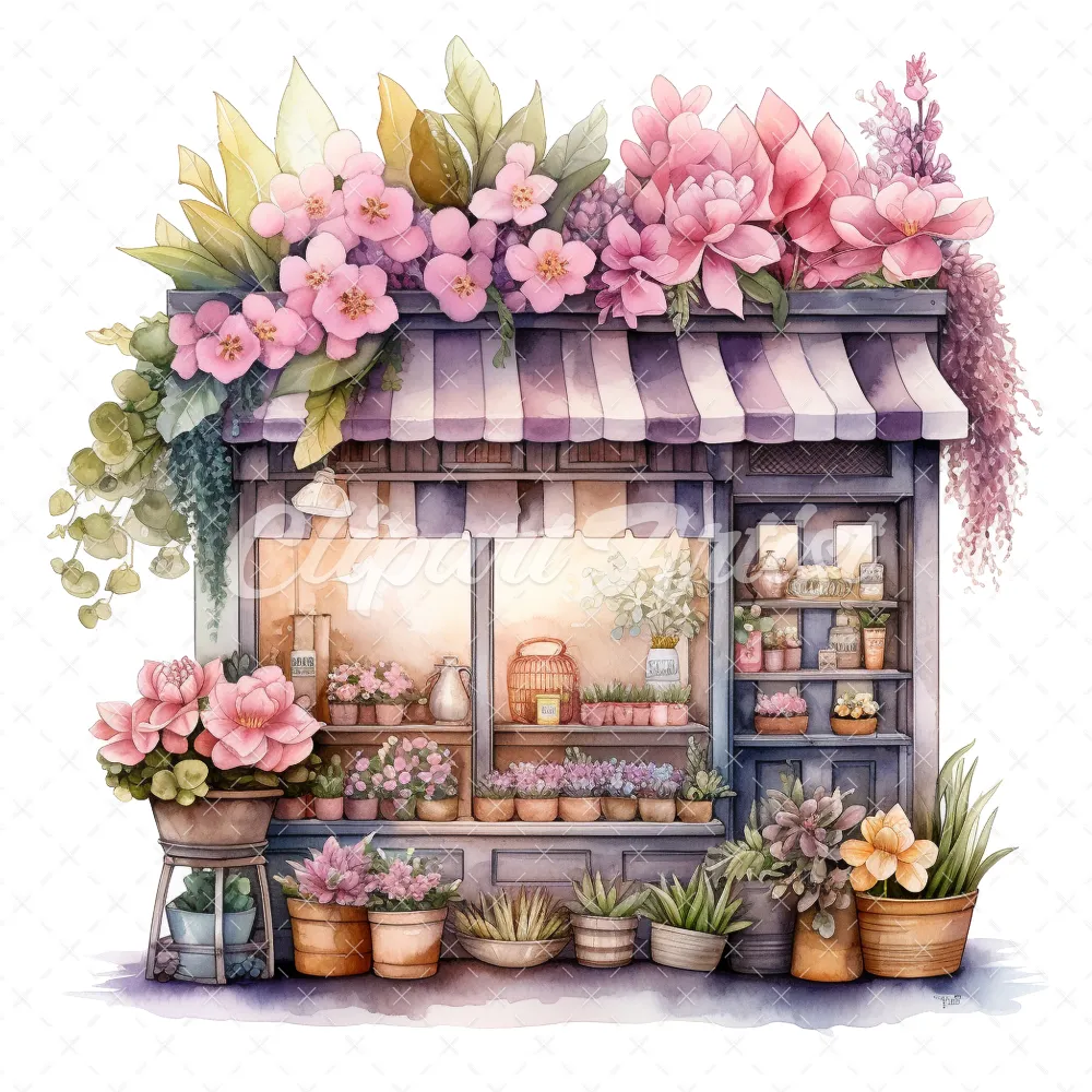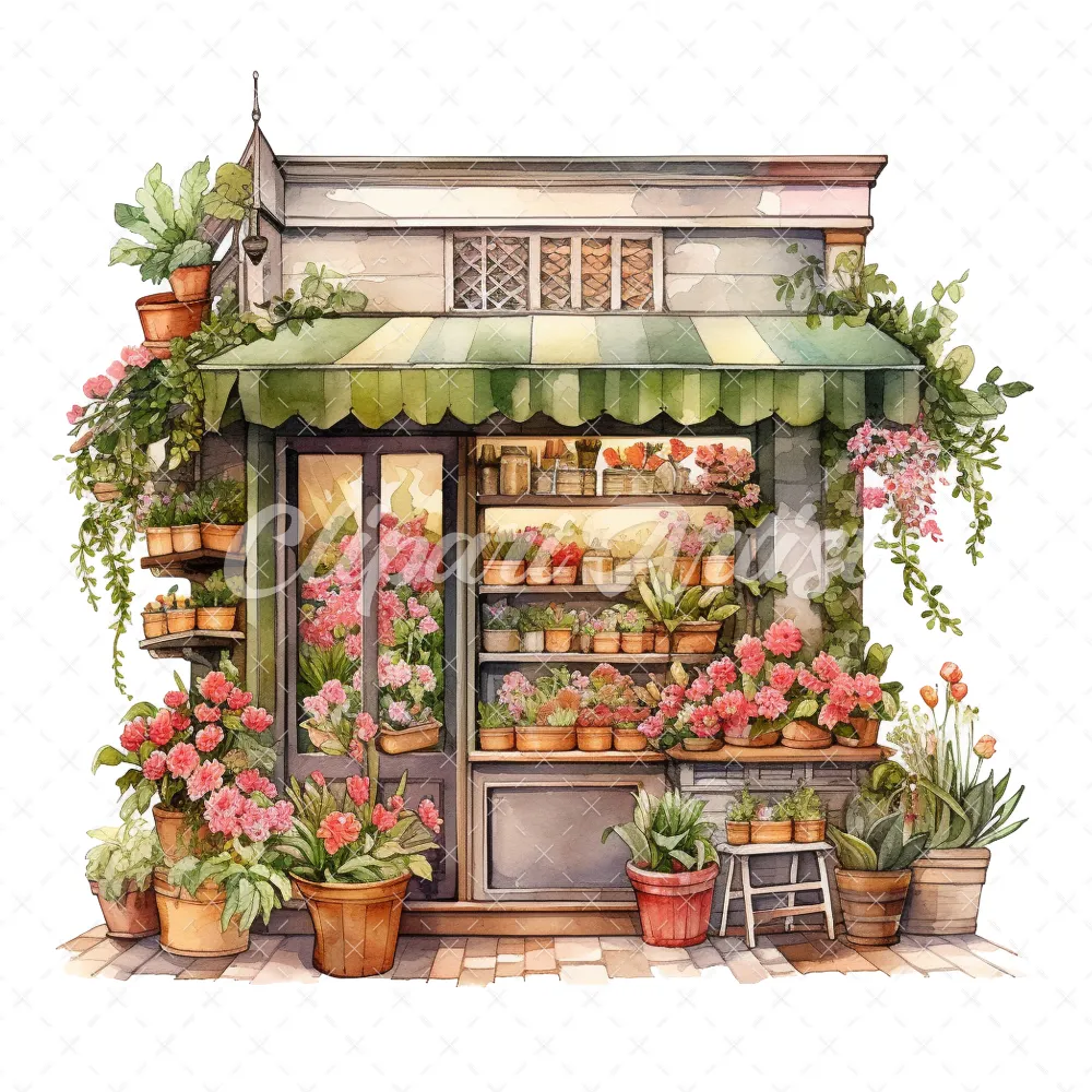 20 High-Quality Flower Shops Clipart – Flower shops digital watercolor JPG instant download for commercial use – Digital download