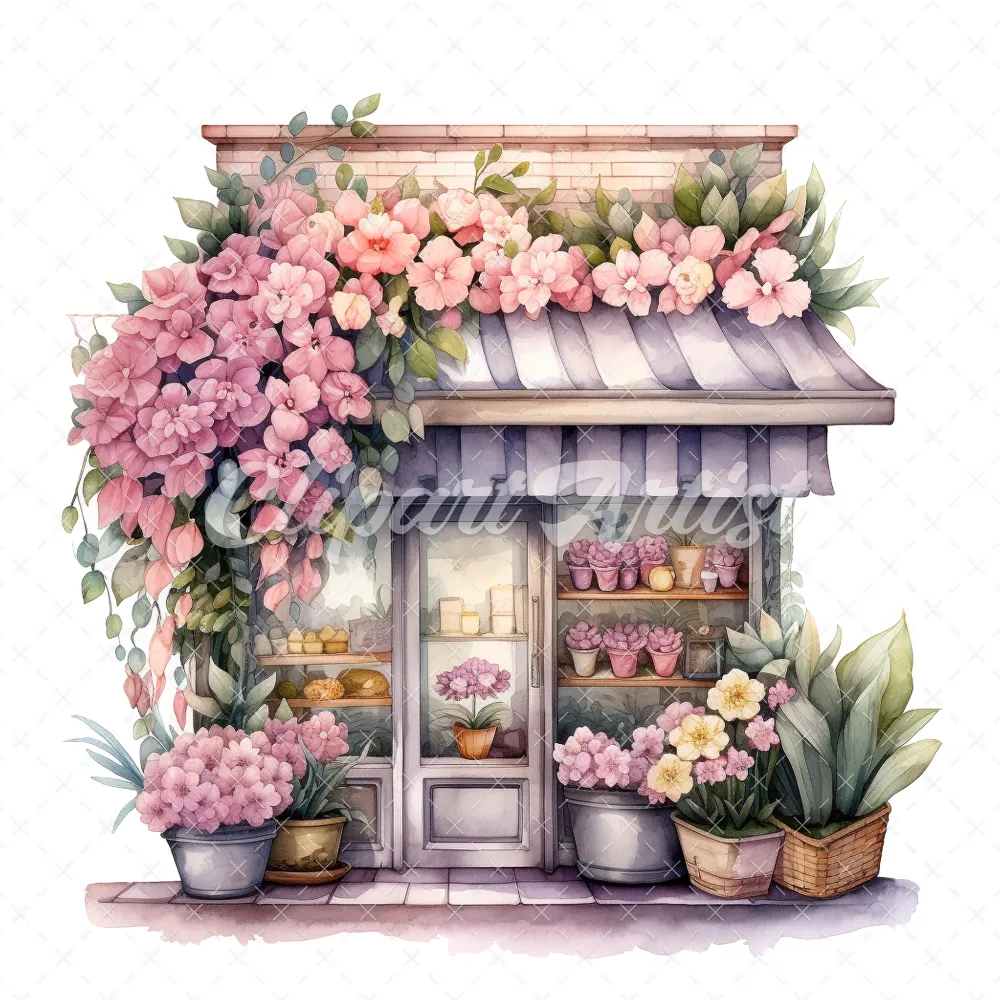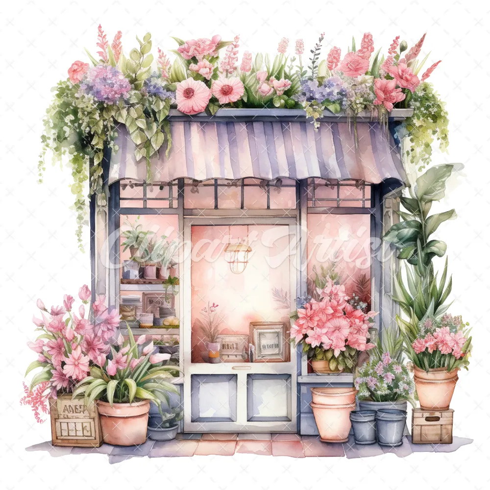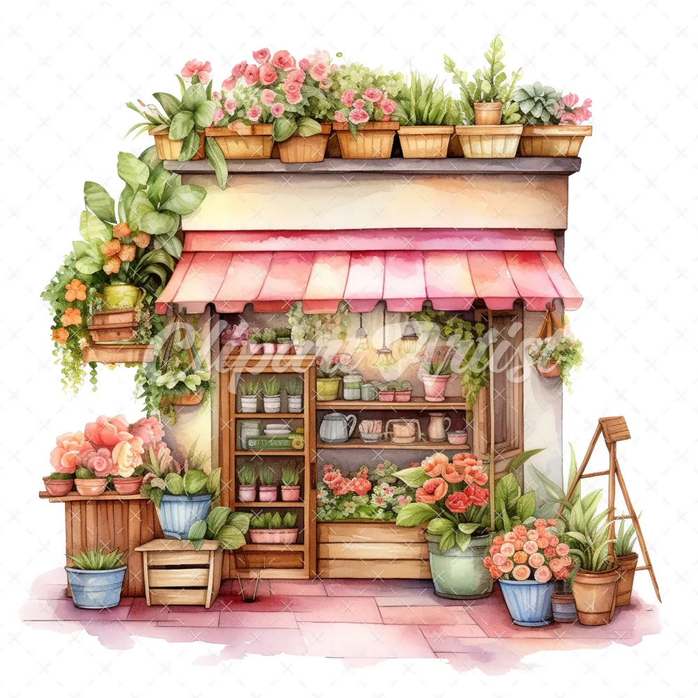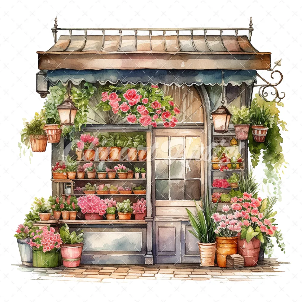 20 High-Quality Flower Shops Clipart – Flower shops digital watercolor JPG instant download for commercial use – Digital download