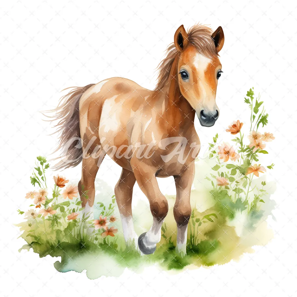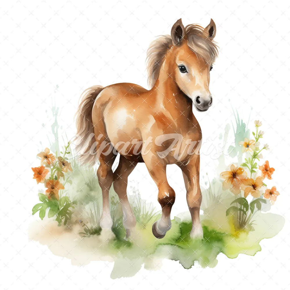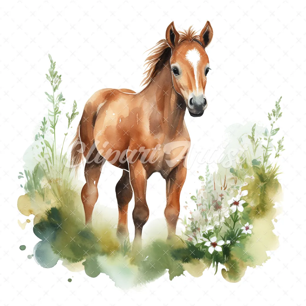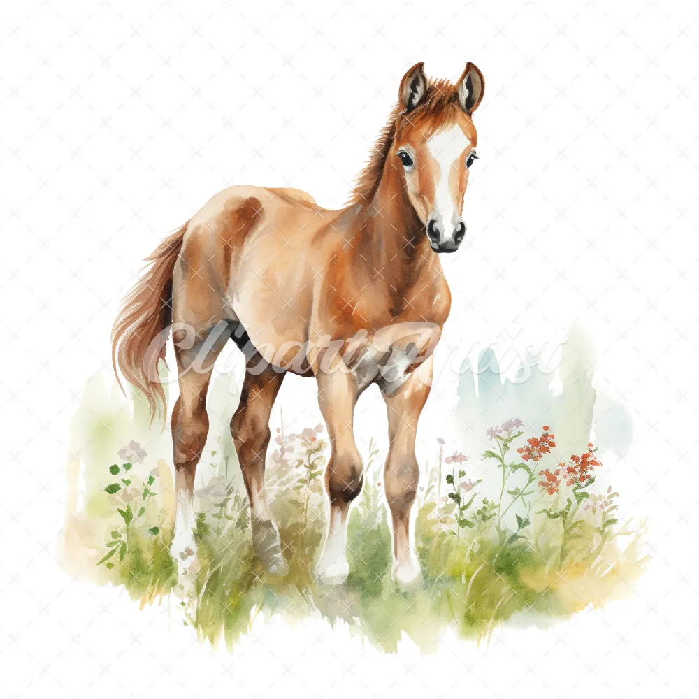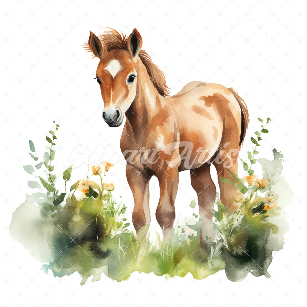 20 High-Quality Foal Clipart – Foal animal digital watercolor JPG instant download for commercial use – Digital download