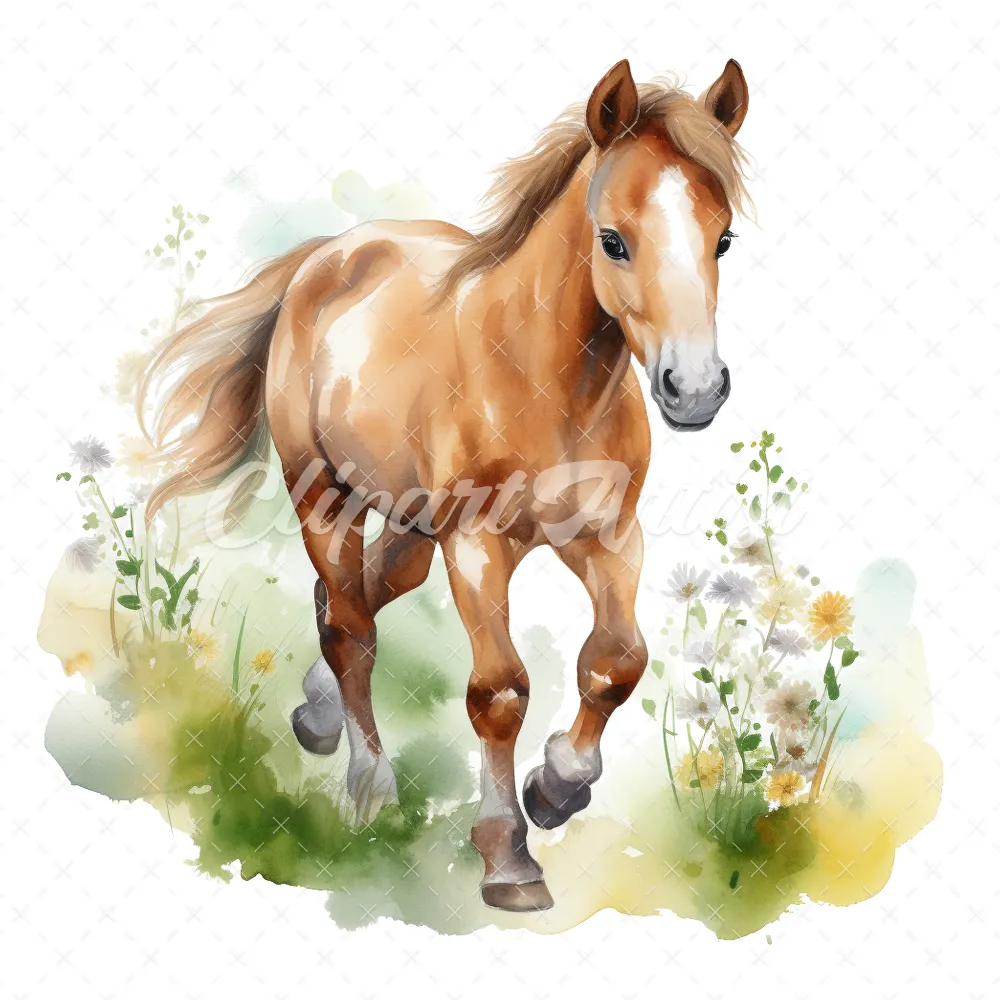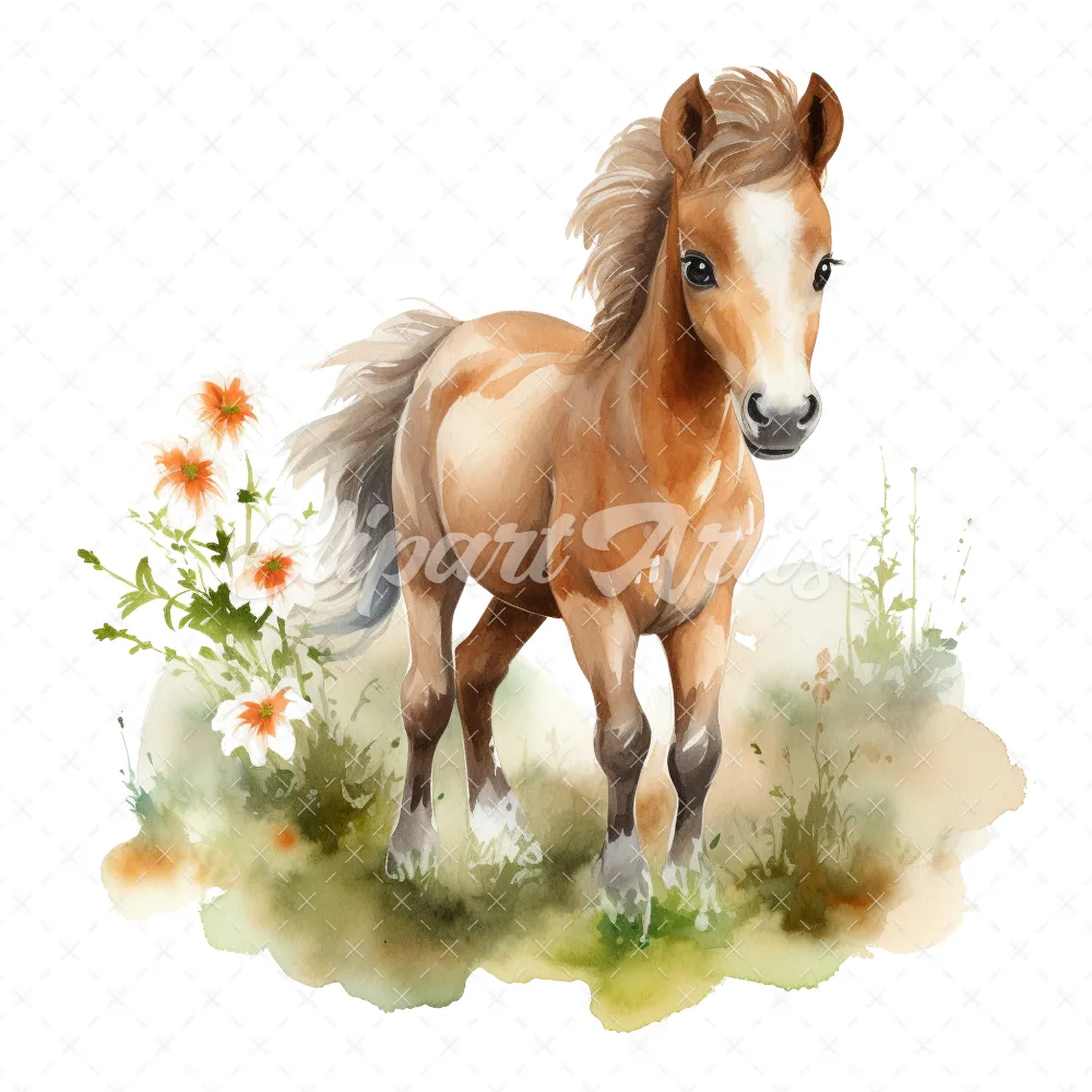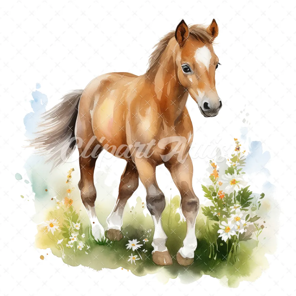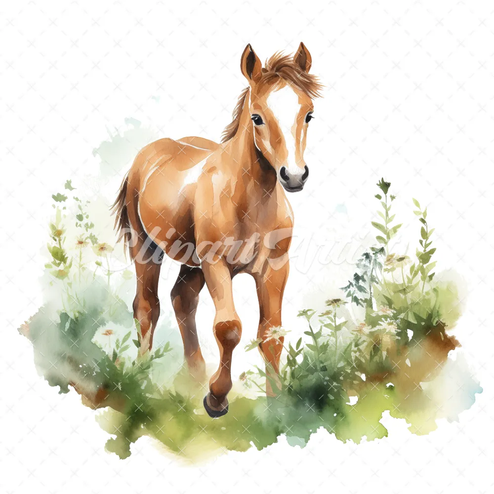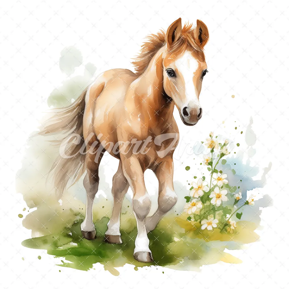 20 High-Quality Foal Clipart – Foal animal digital watercolor JPG instant download for commercial use – Digital download