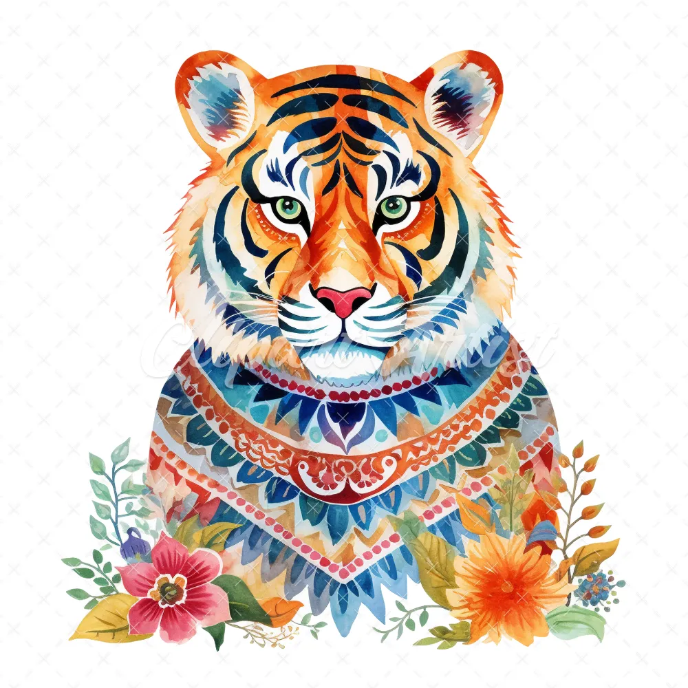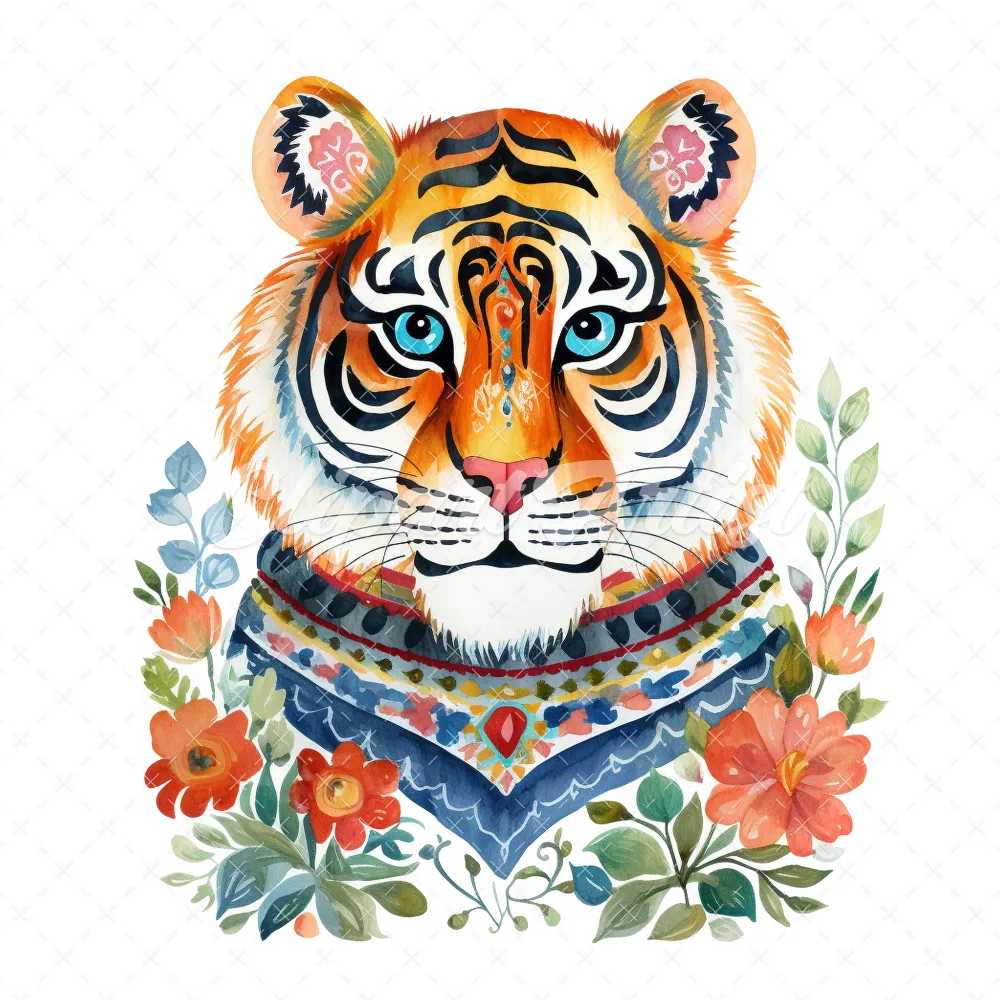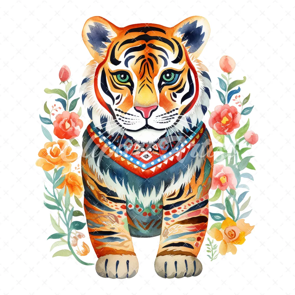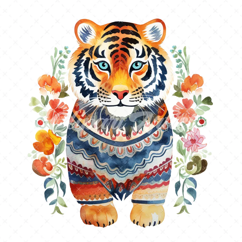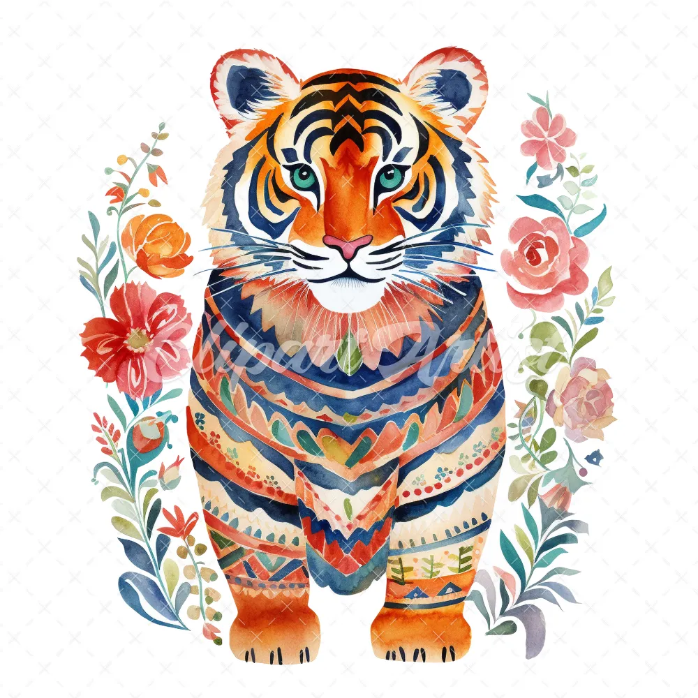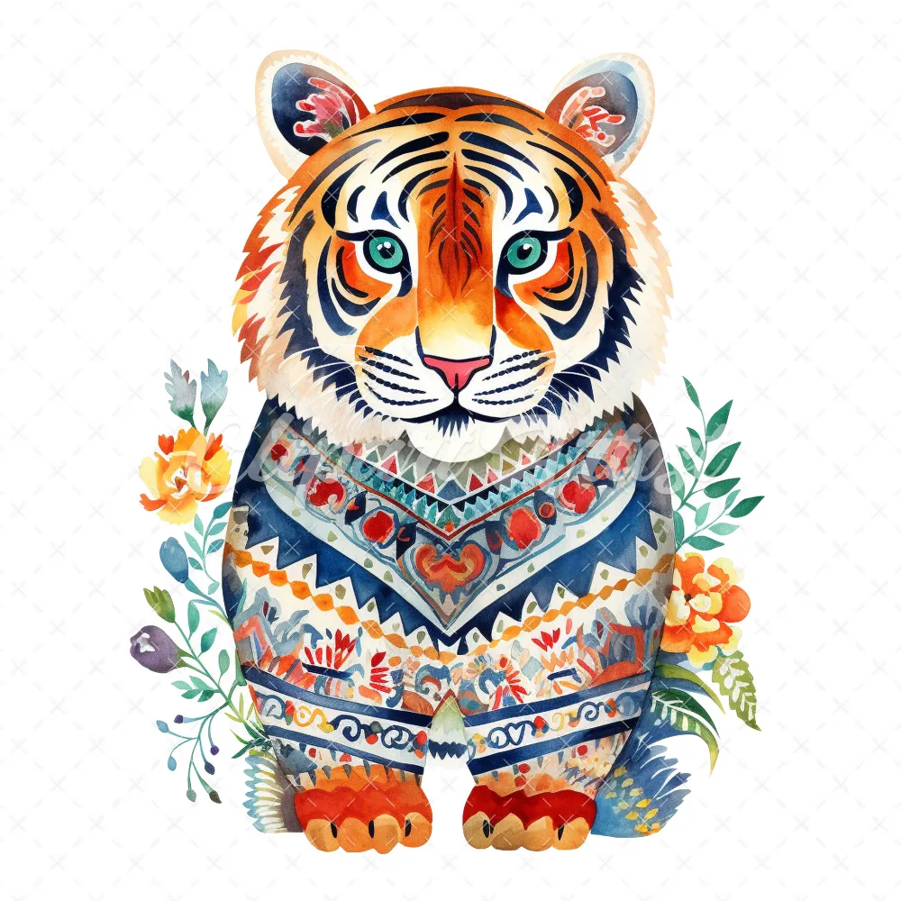 20 High-Quality Folkloric Tigers Clipart – Folkloric tigers digital watercolor JPG instant download for commercial use – Digital download