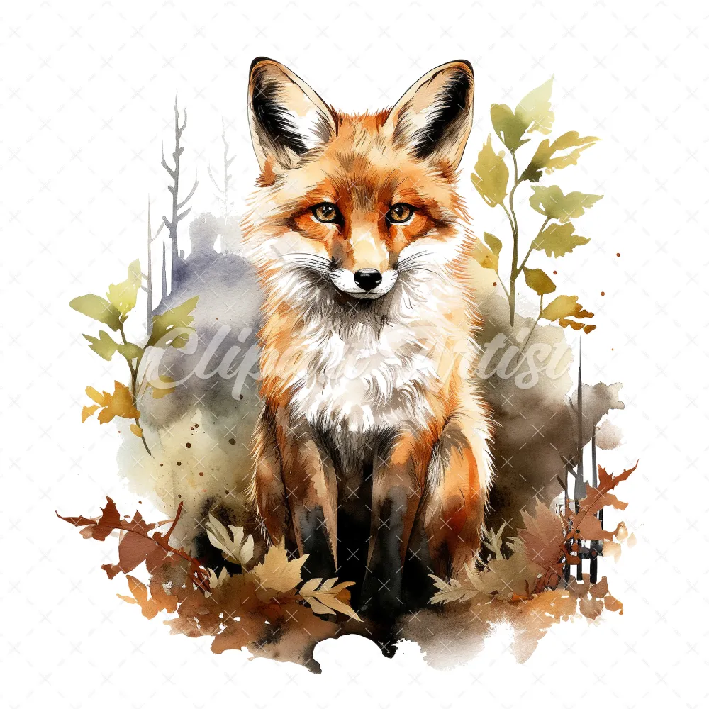 20 High-Quality Forest Fox Clipart – Forest fox digital watercolor JPG instant download for commercial use – Digital download