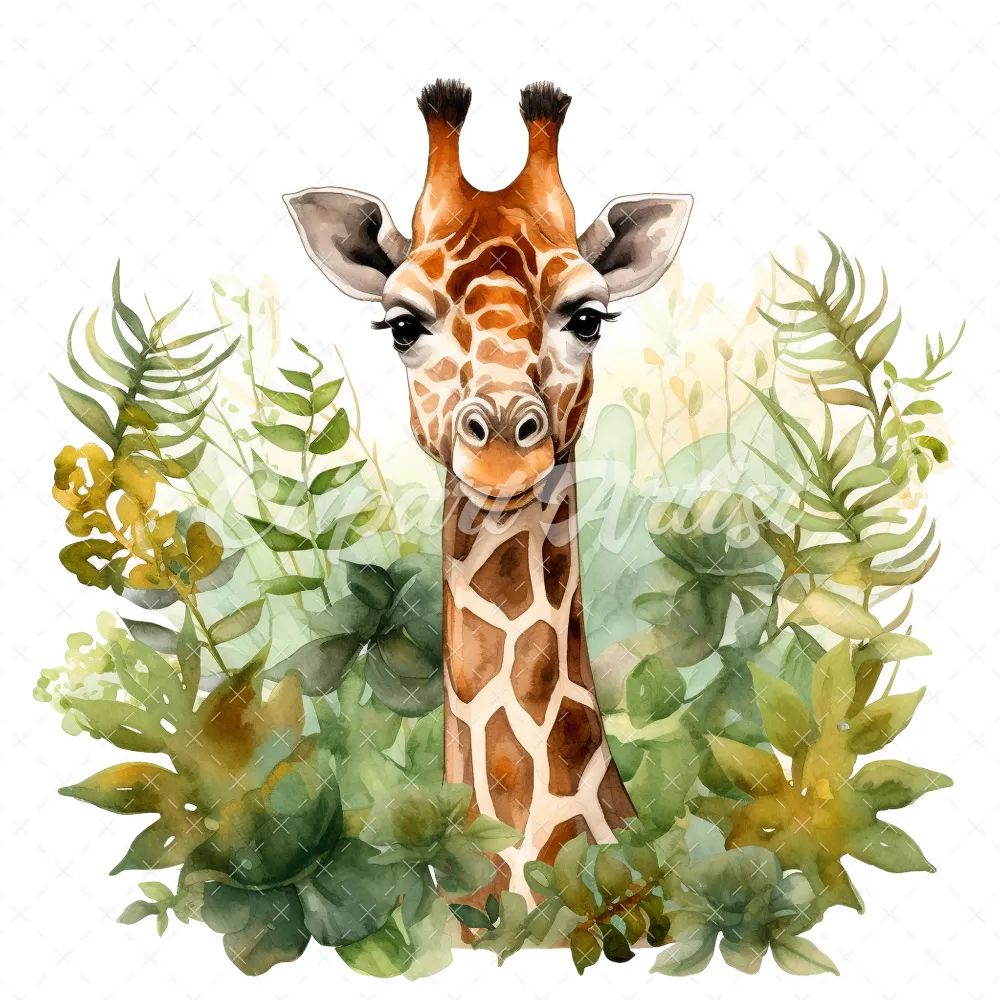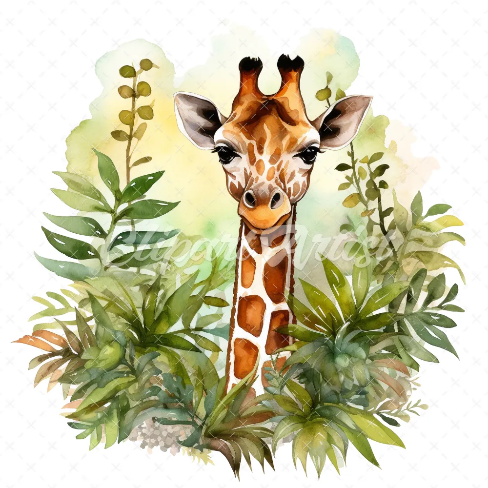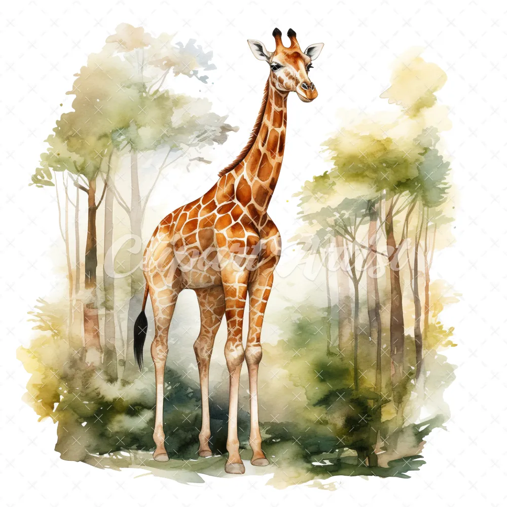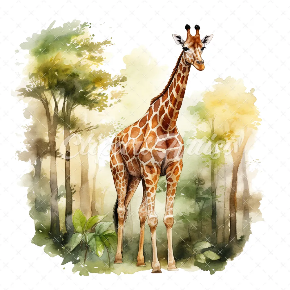 20 High-Quality Forest Giraffe Clipart – Forest giraffe digital watercolor JPG instant download for commercial use – Digital download