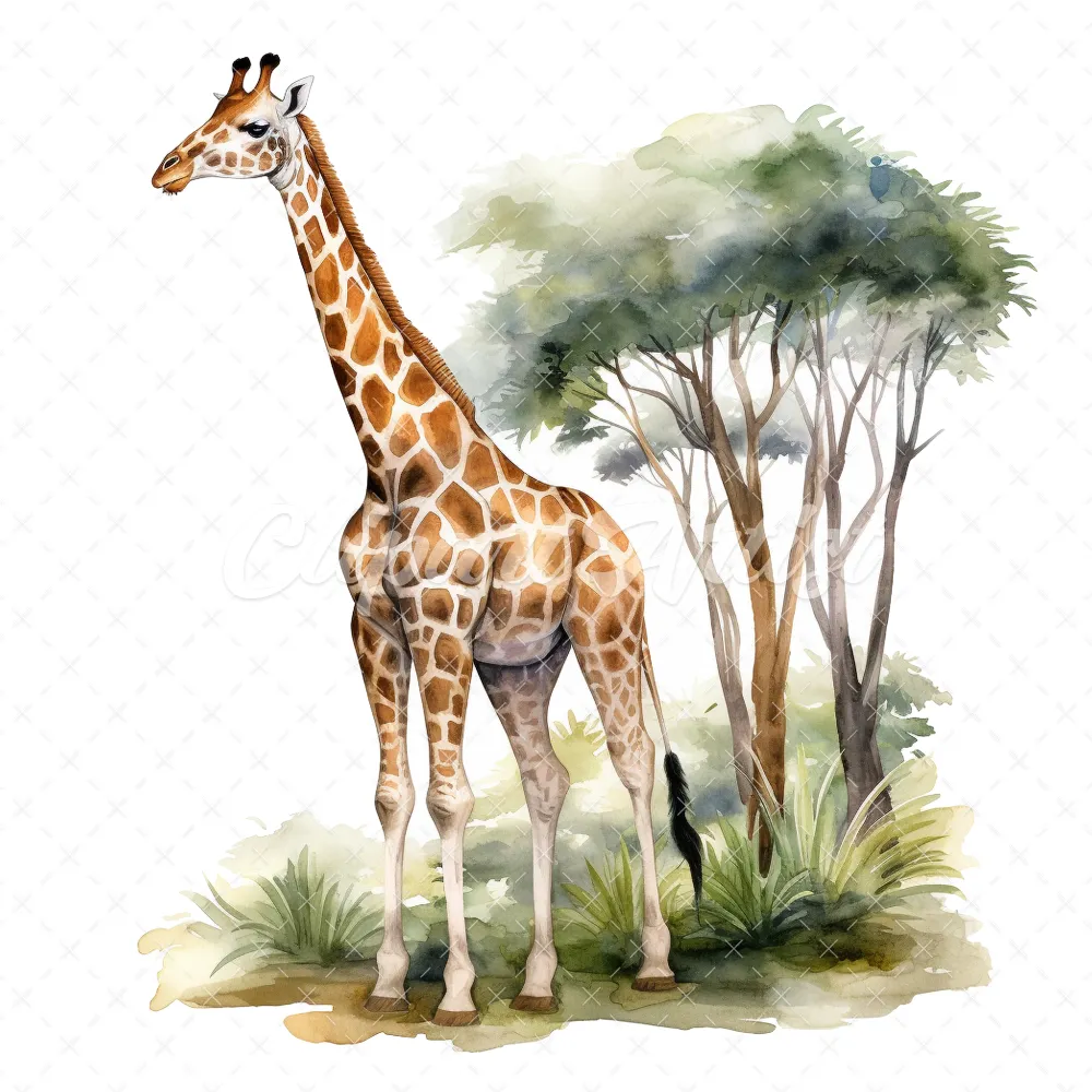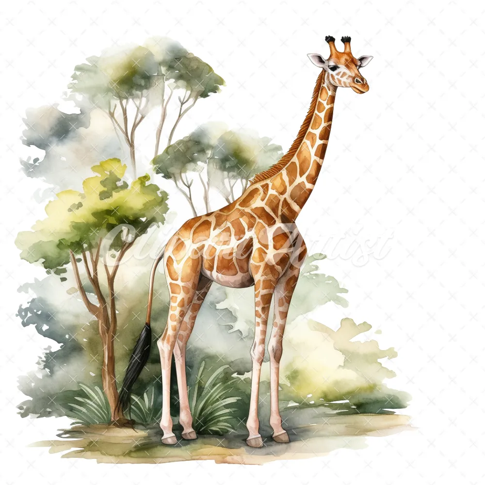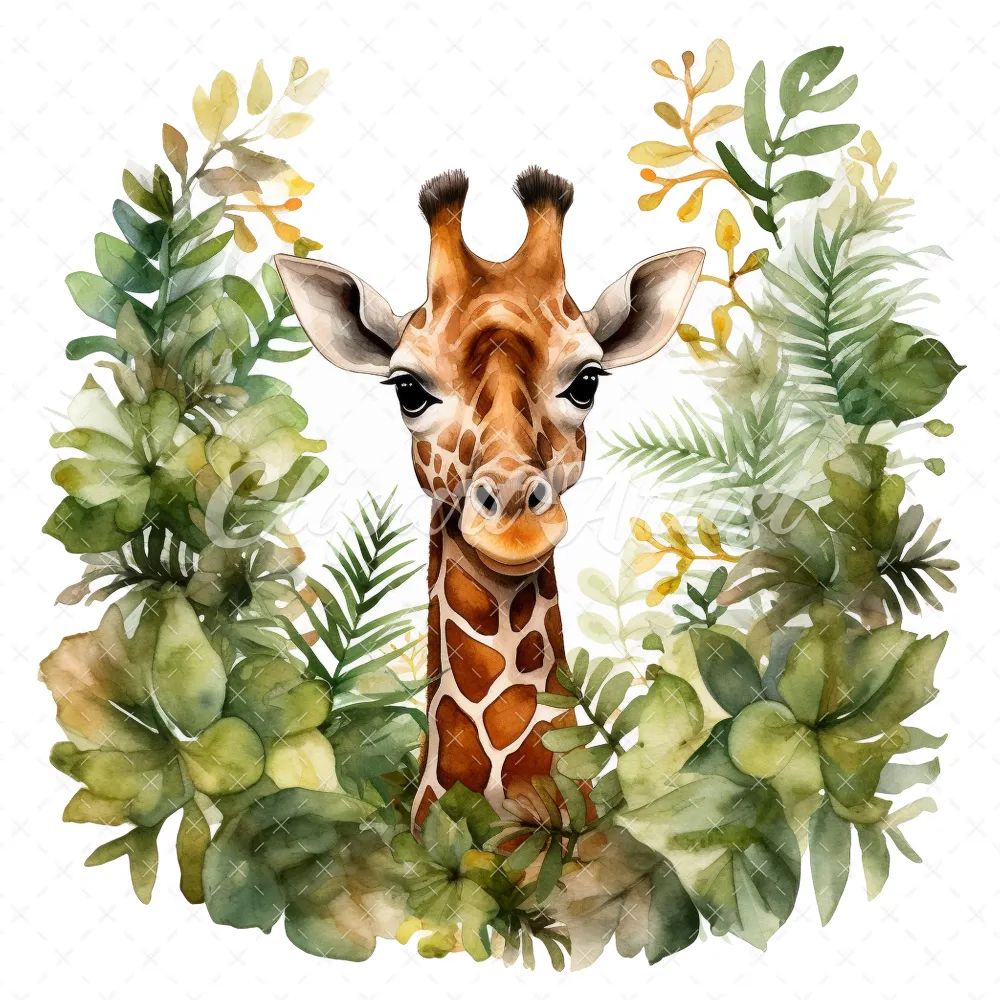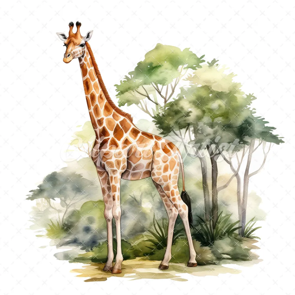 20 High-Quality Forest Giraffe Clipart – Forest giraffe digital watercolor JPG instant download for commercial use – Digital download
