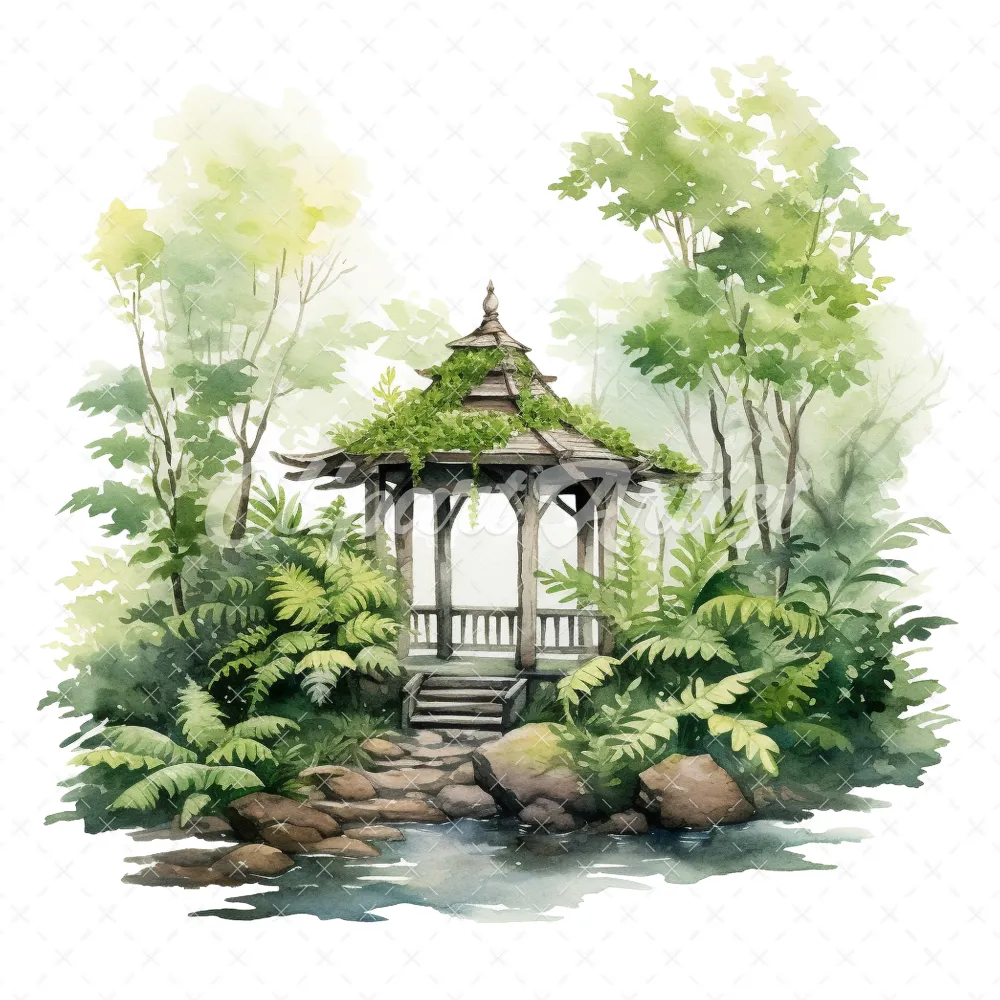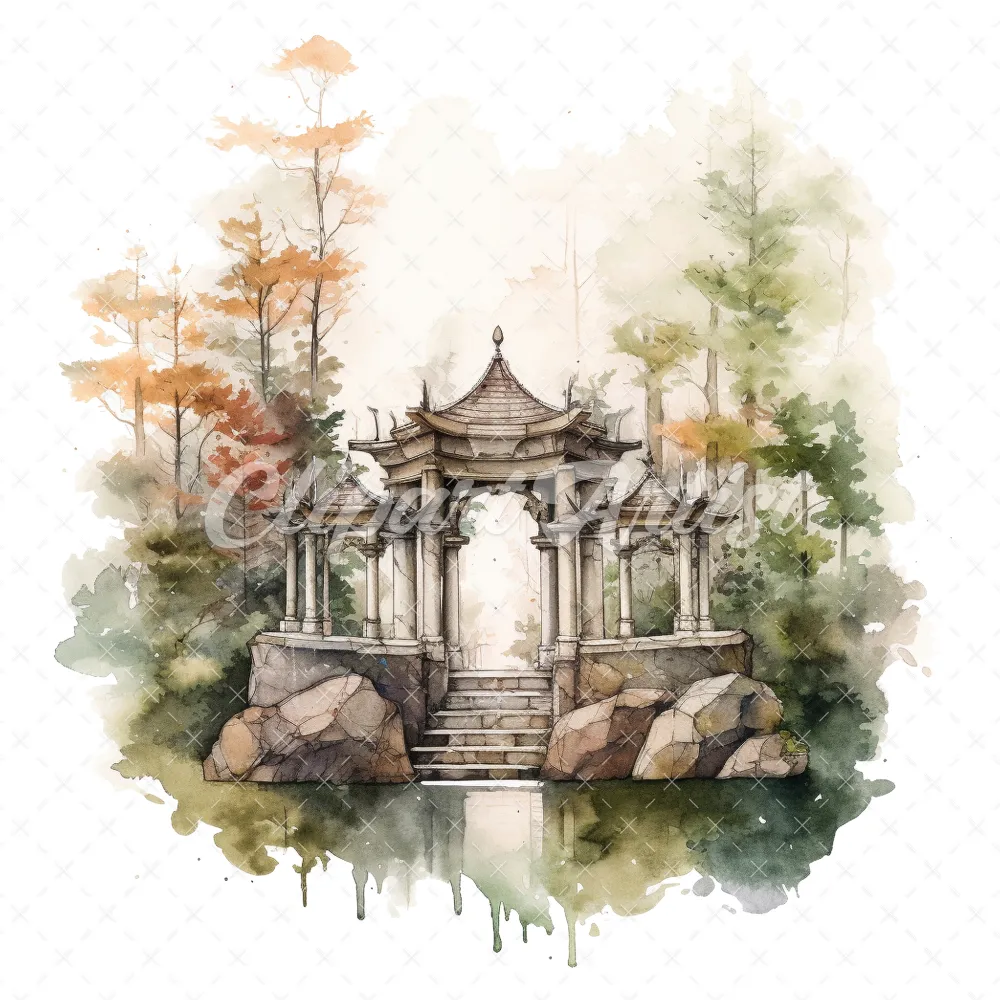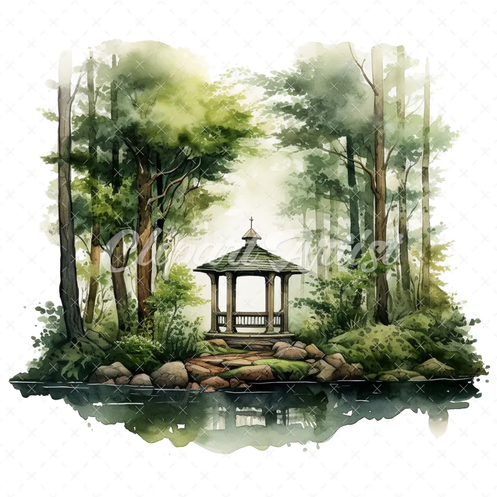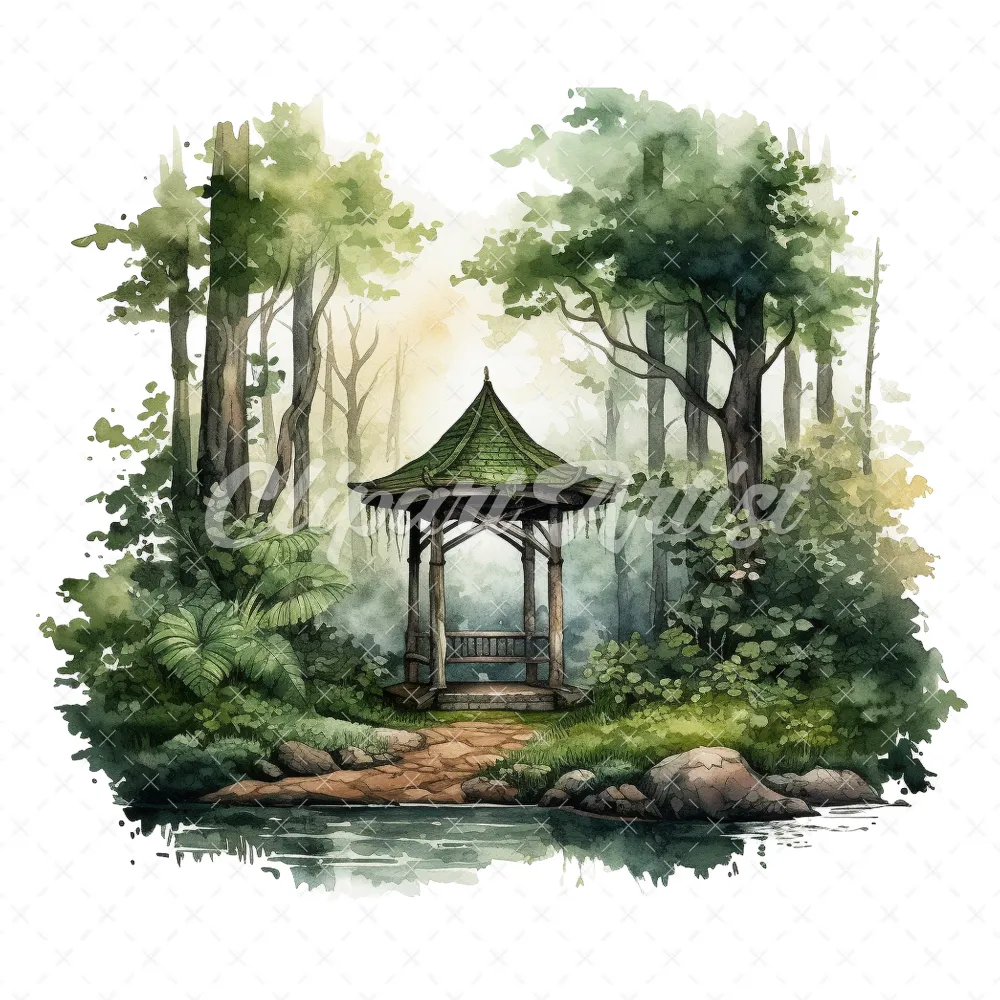 20 High-Quality Forest Shrine Clipart – Forest shrine digital watercolor JPG instant download for commercial use – Digital download