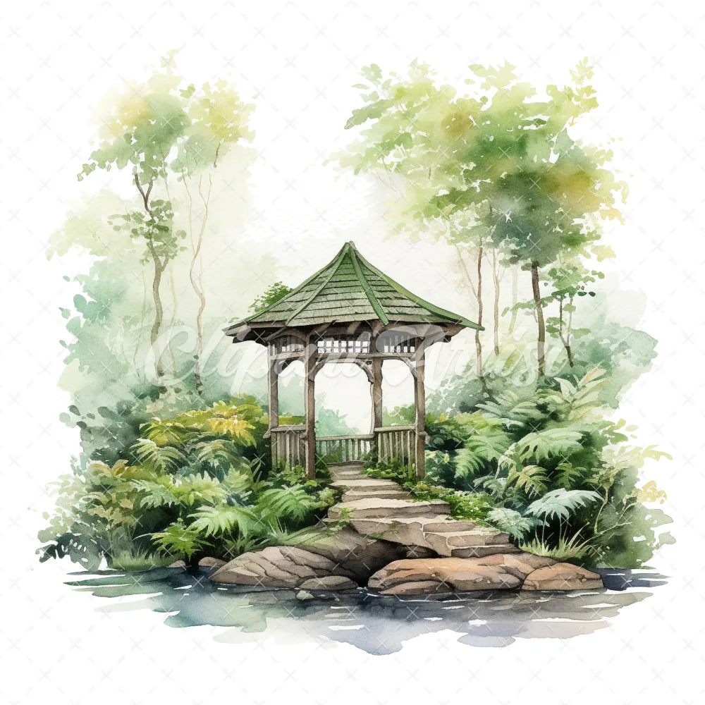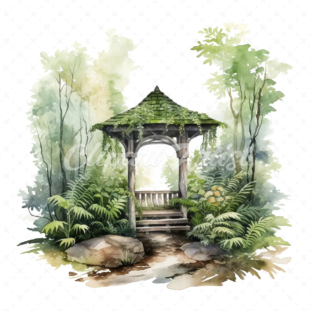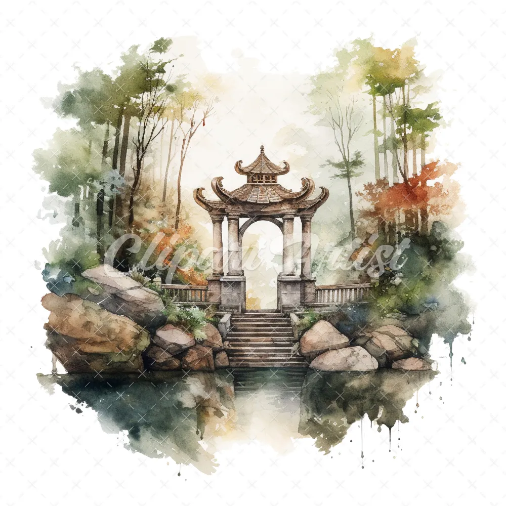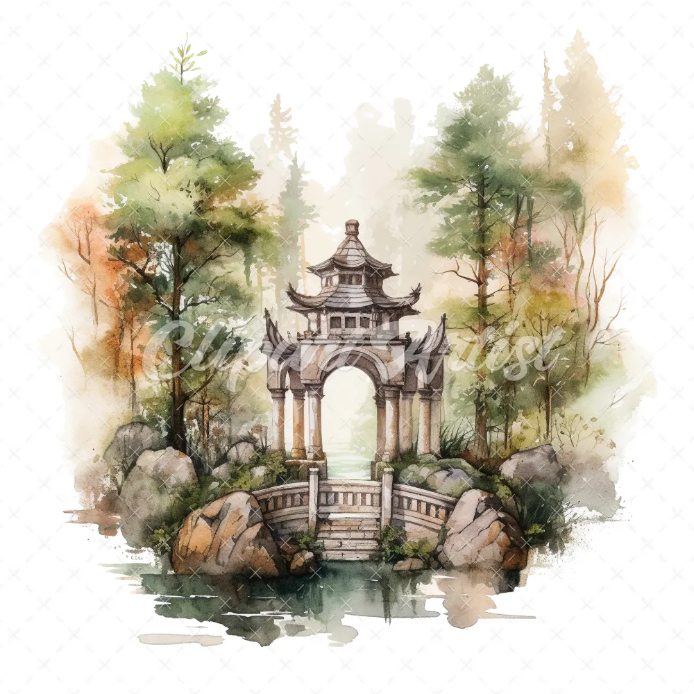 20 High-Quality Forest Shrine Clipart – Forest shrine digital watercolor JPG instant download for commercial use – Digital download