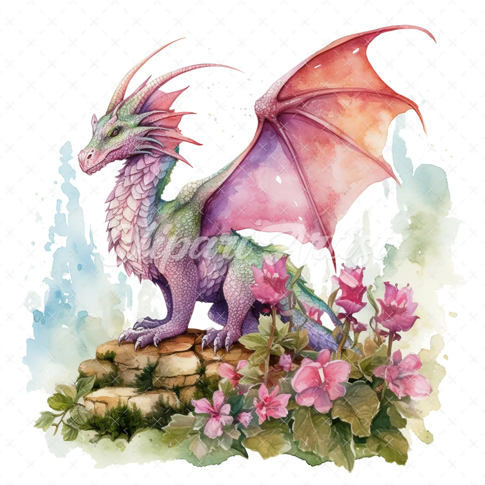 20 High-Quality Garden Dragons Clipart – Garden dragons digital watercolor JPG instant download for commercial use – Digital download
