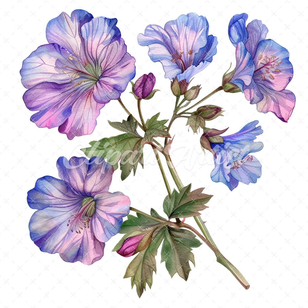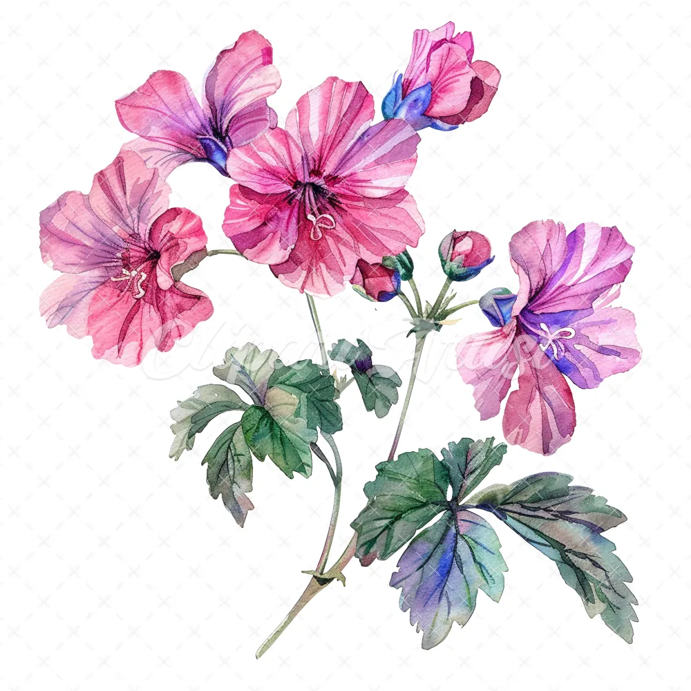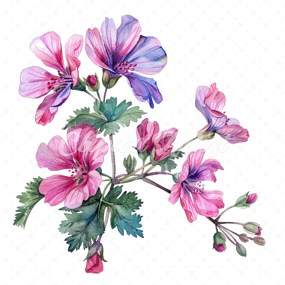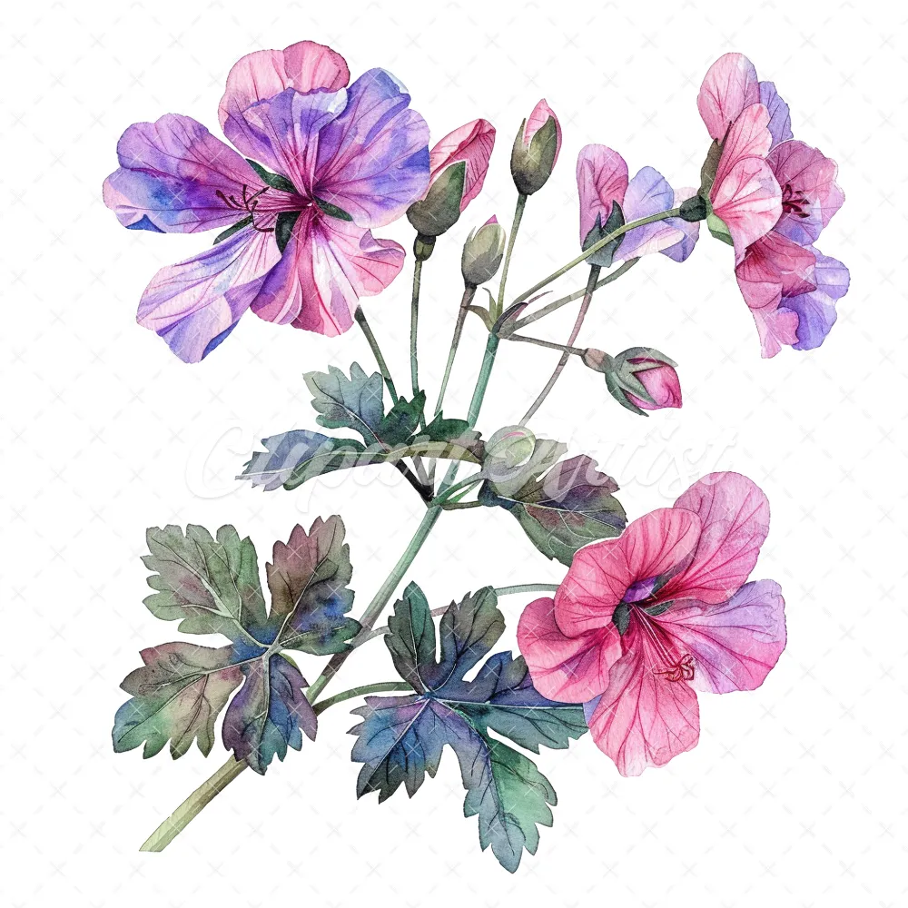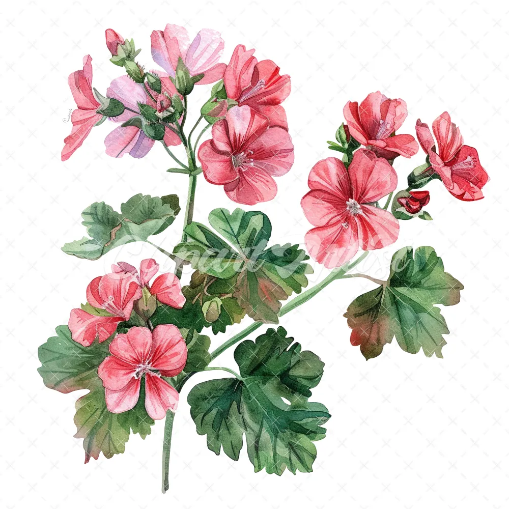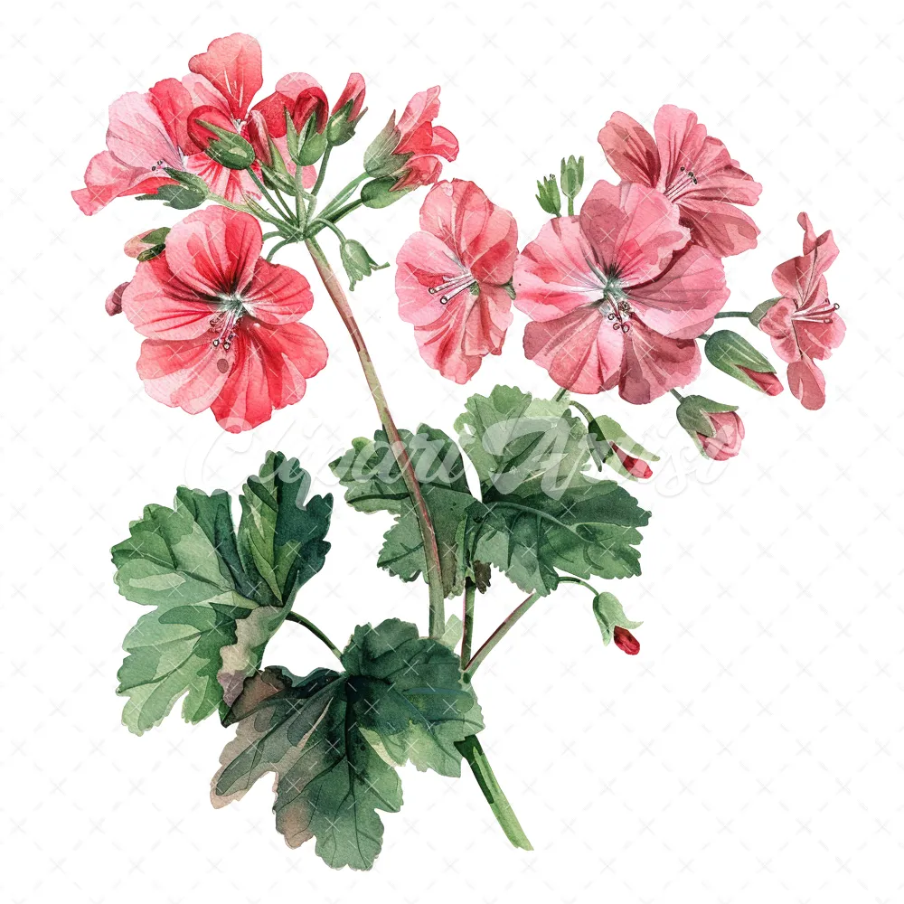 20 High-Quality Geranium Flowers Clipart – Geranium flowers digital watercolor JPG instant download for commercial use – Digital download