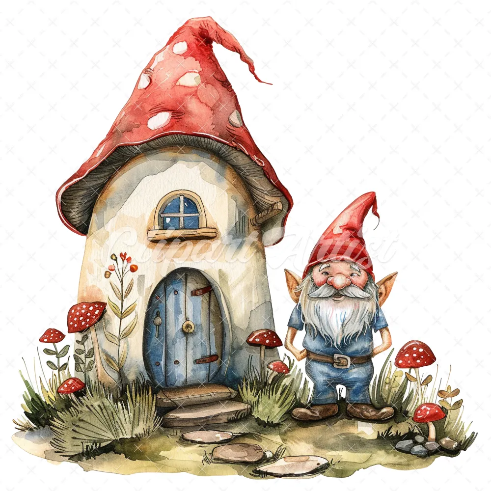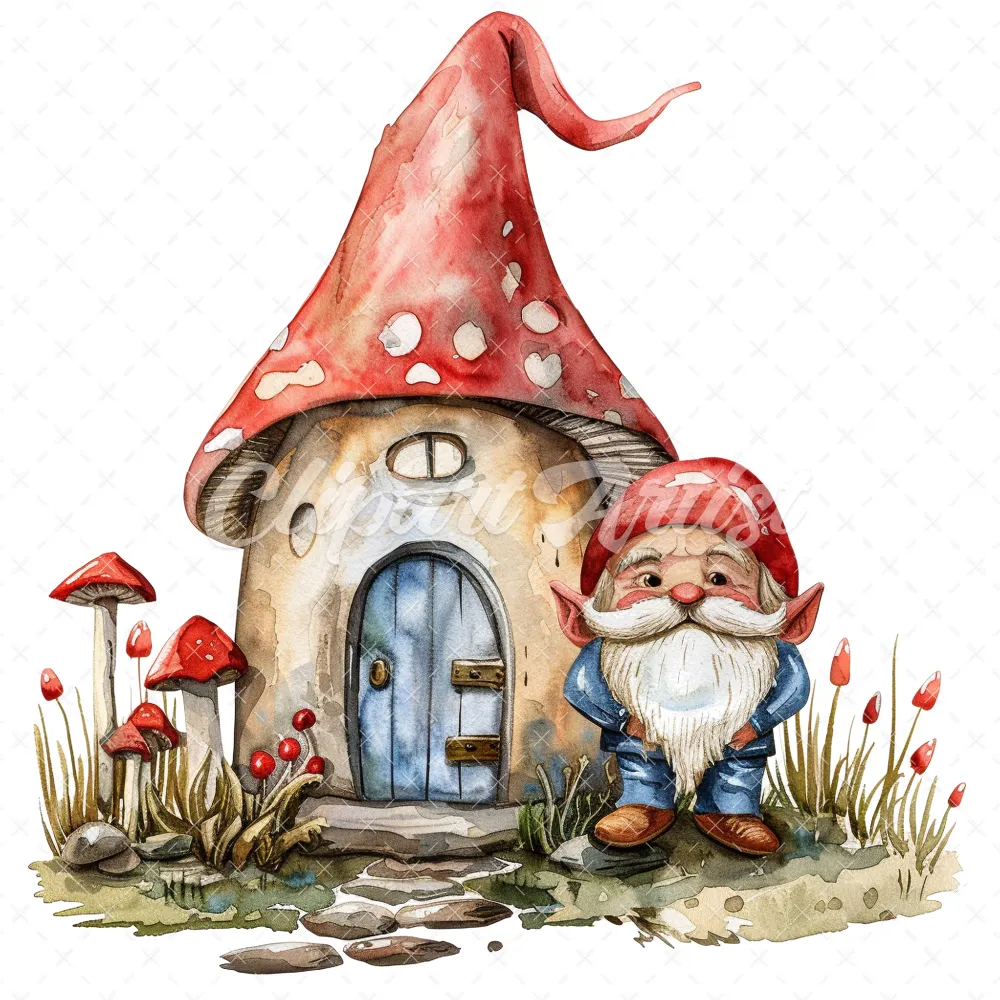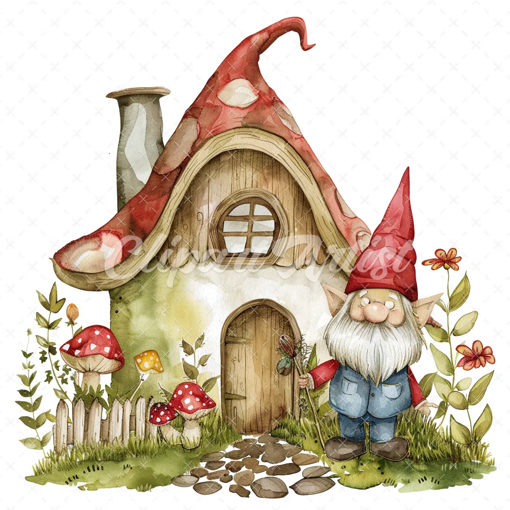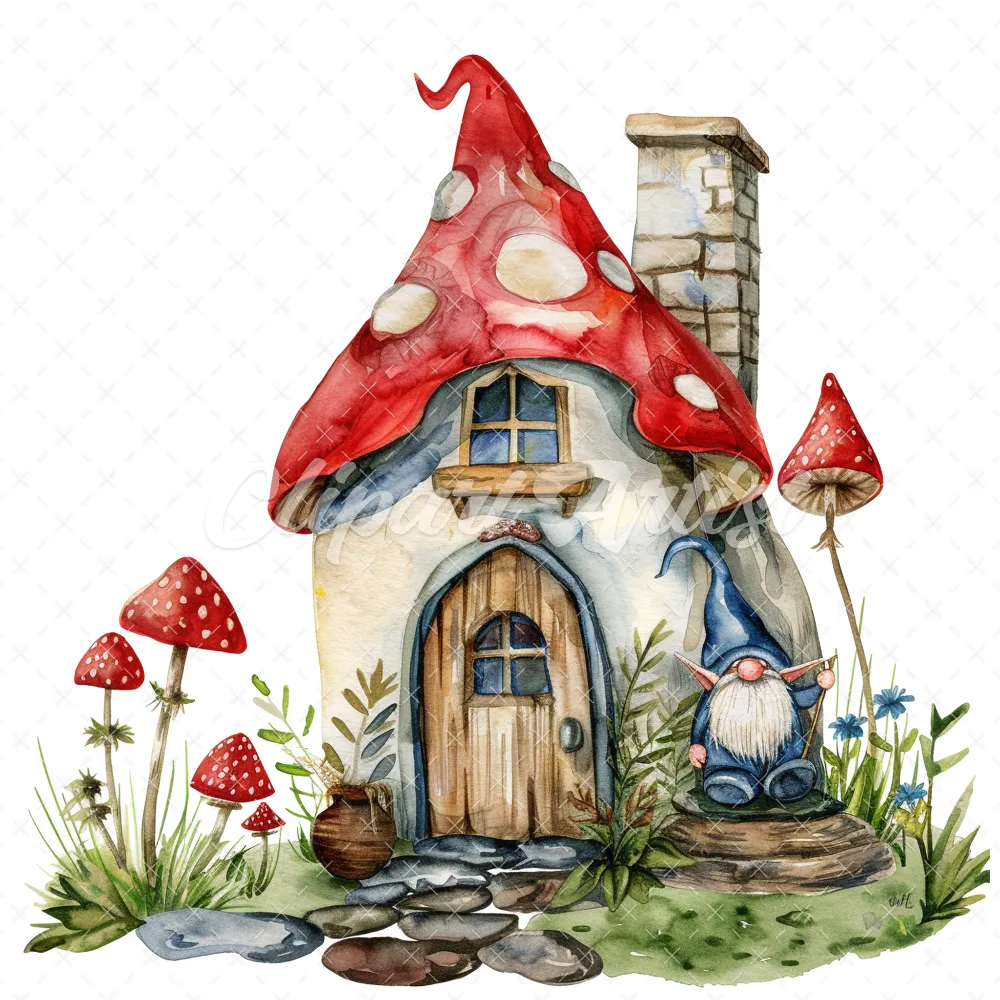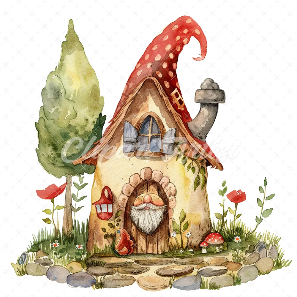20 High-Quality Gnome House Clipart – Gnome house digital watercolor JPG instant download for commercial use – Digital download