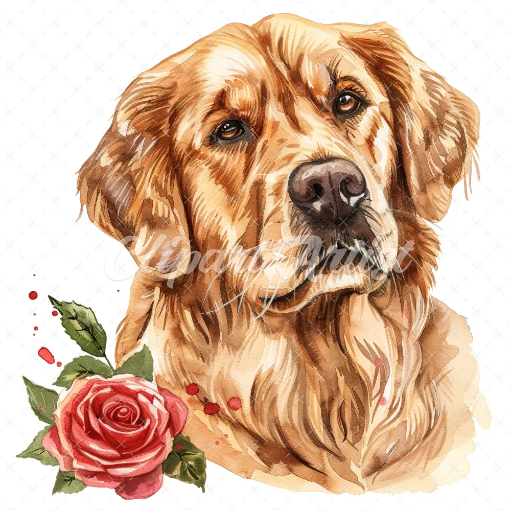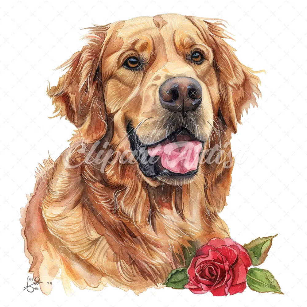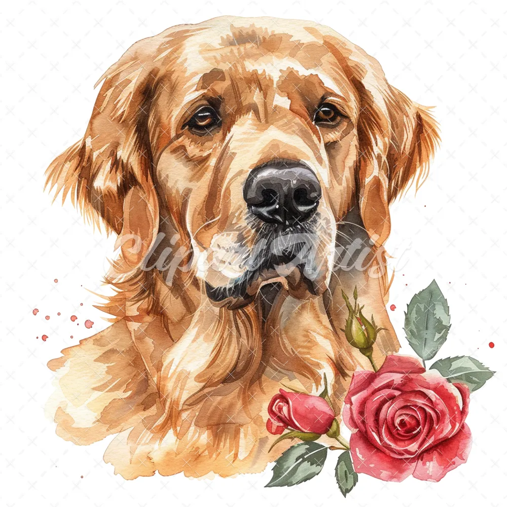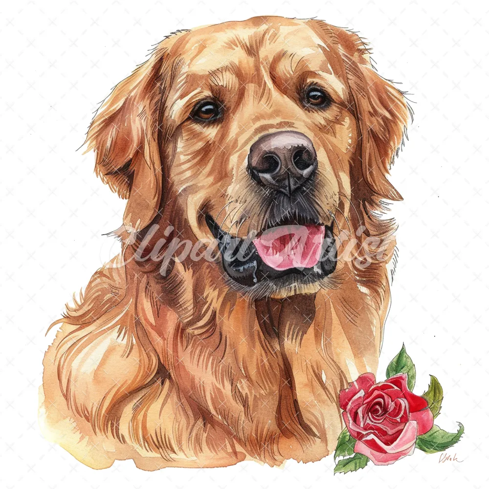 20 High-Quality Golden Retriever Clipart – Golden retriever digital watercolor JPG instant download for commercial use – Digital download
