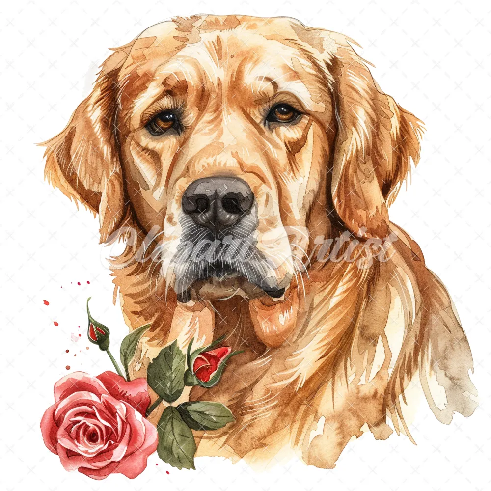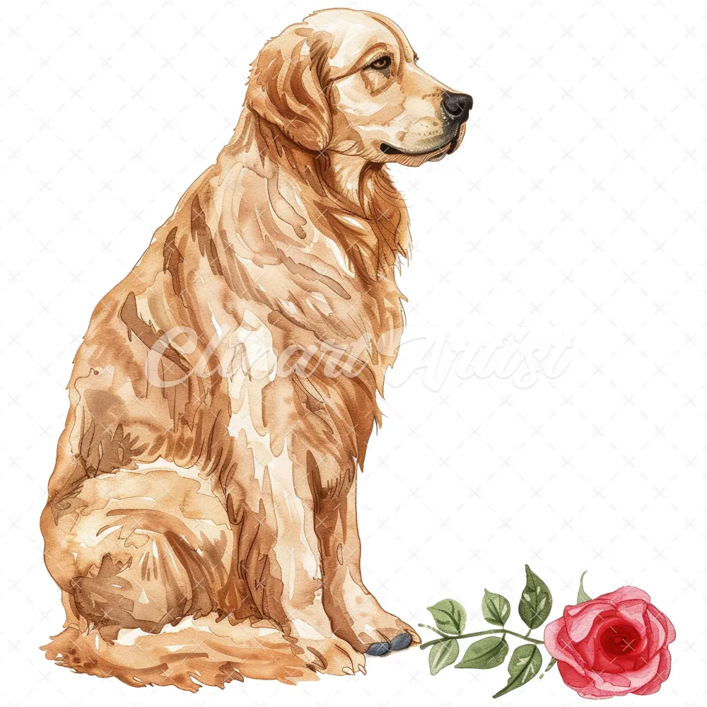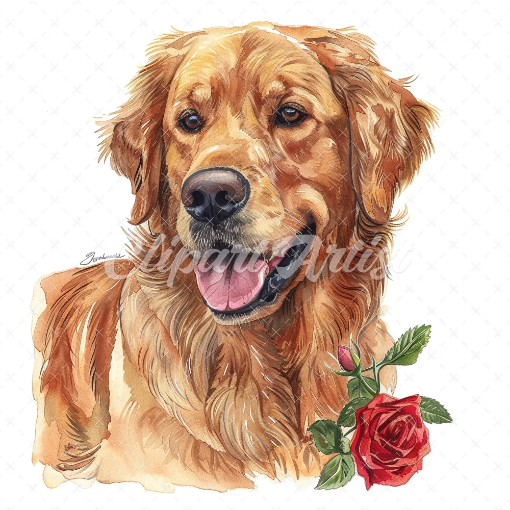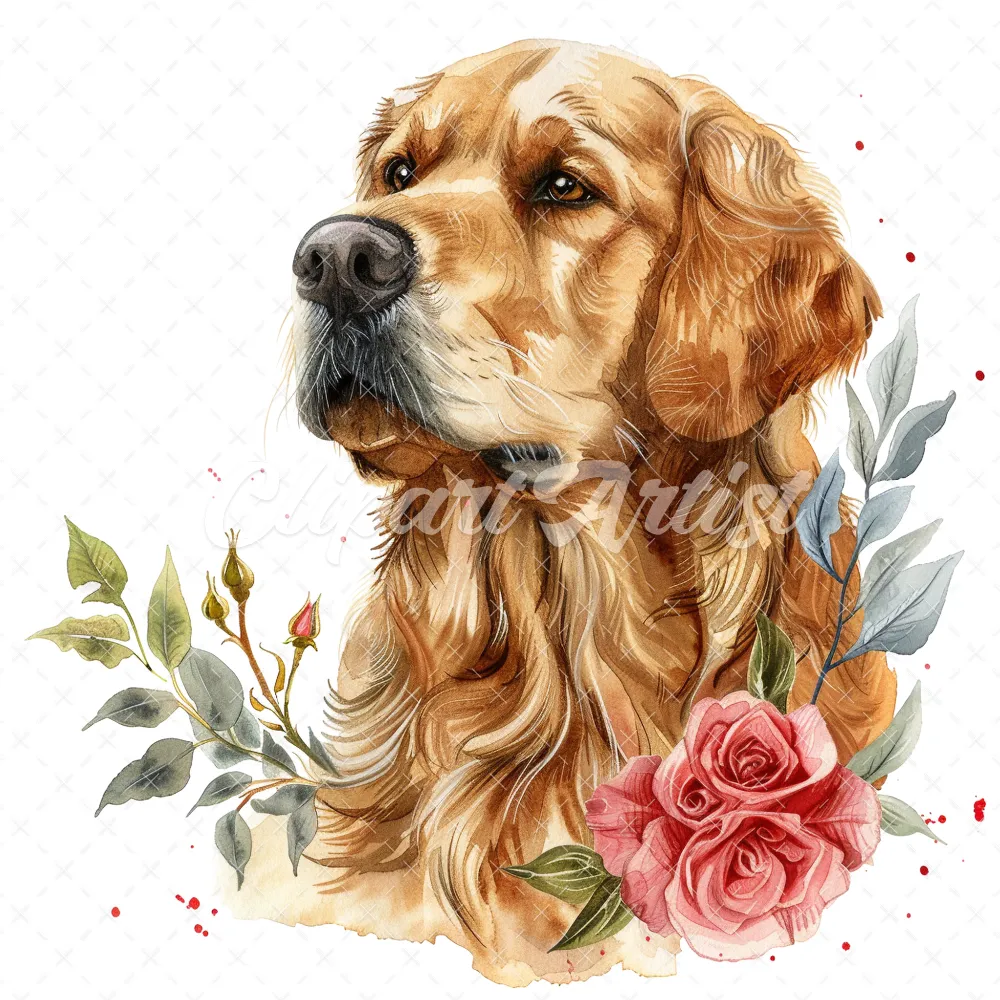 20 High-Quality Golden Retriever Clipart – Golden retriever digital watercolor JPG instant download for commercial use – Digital download