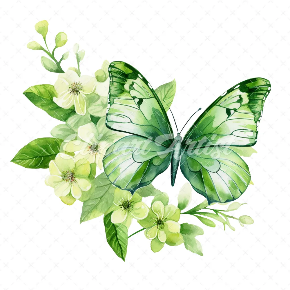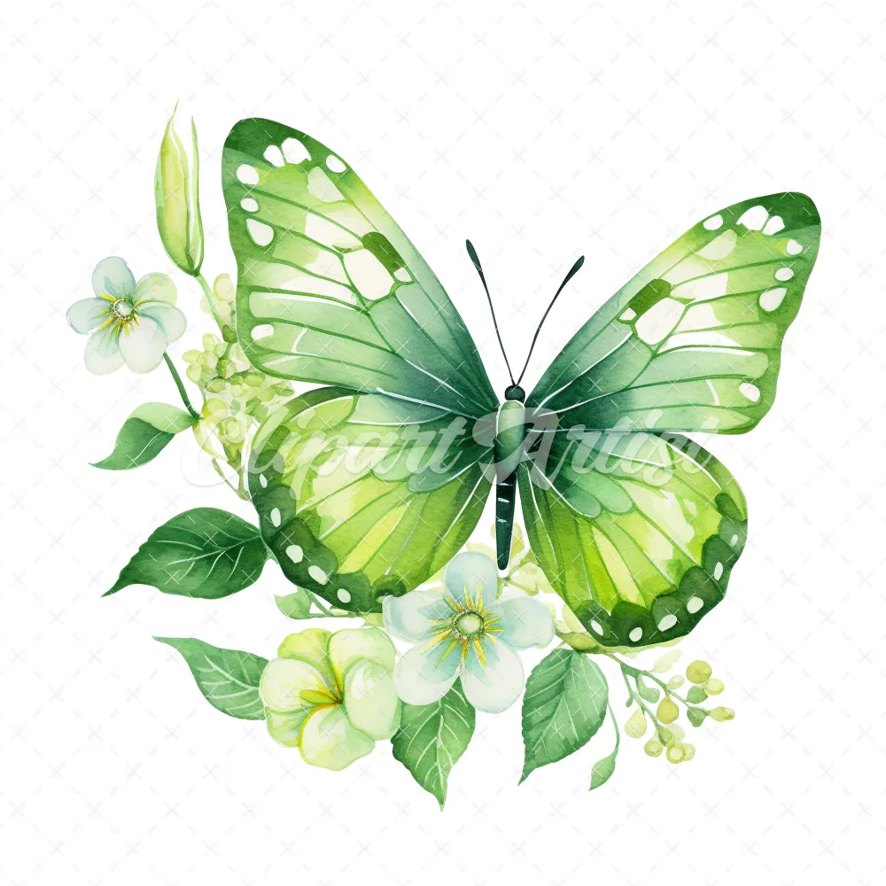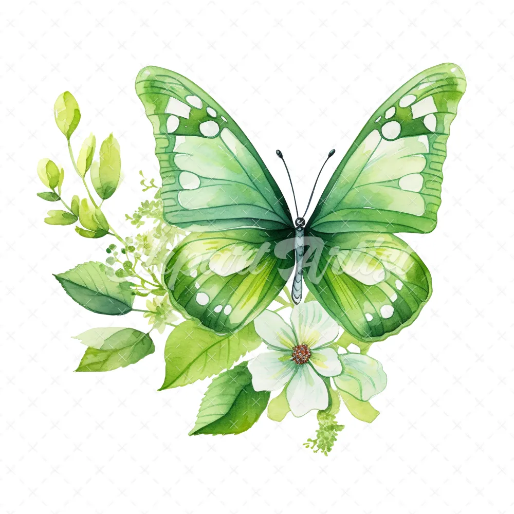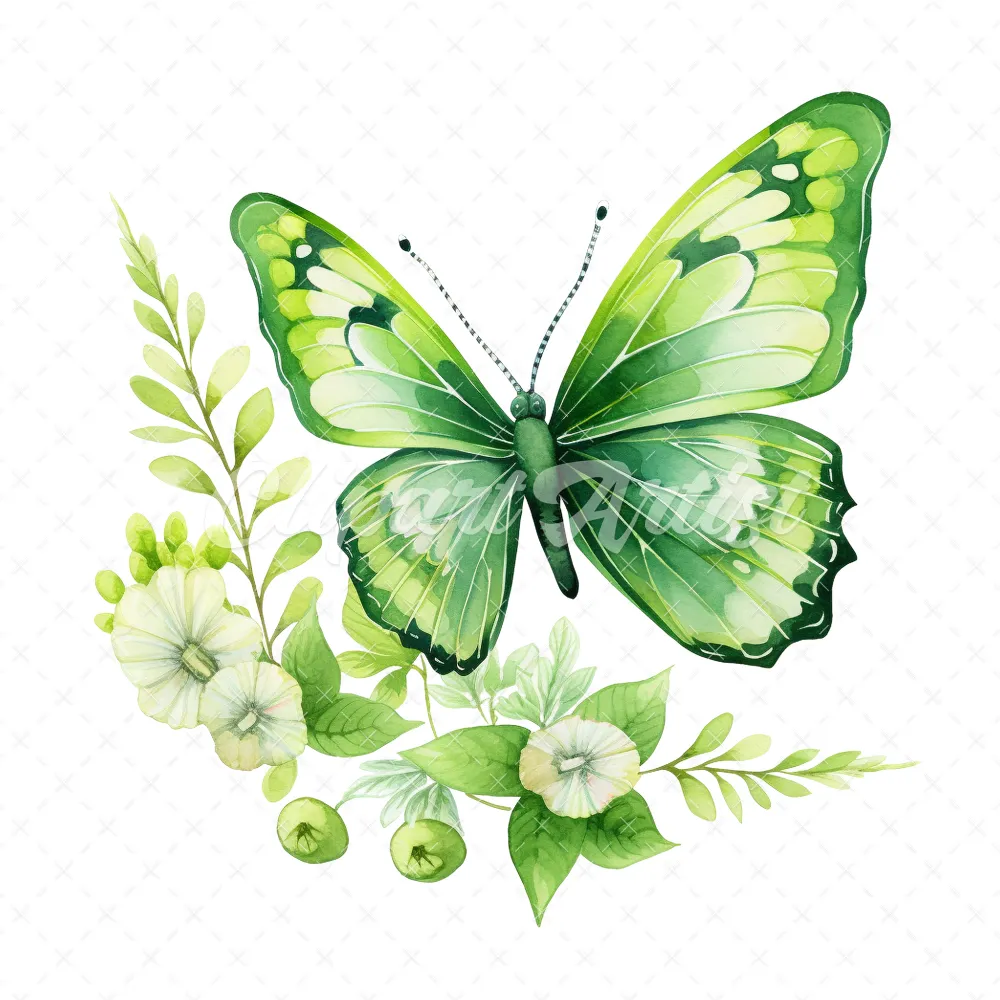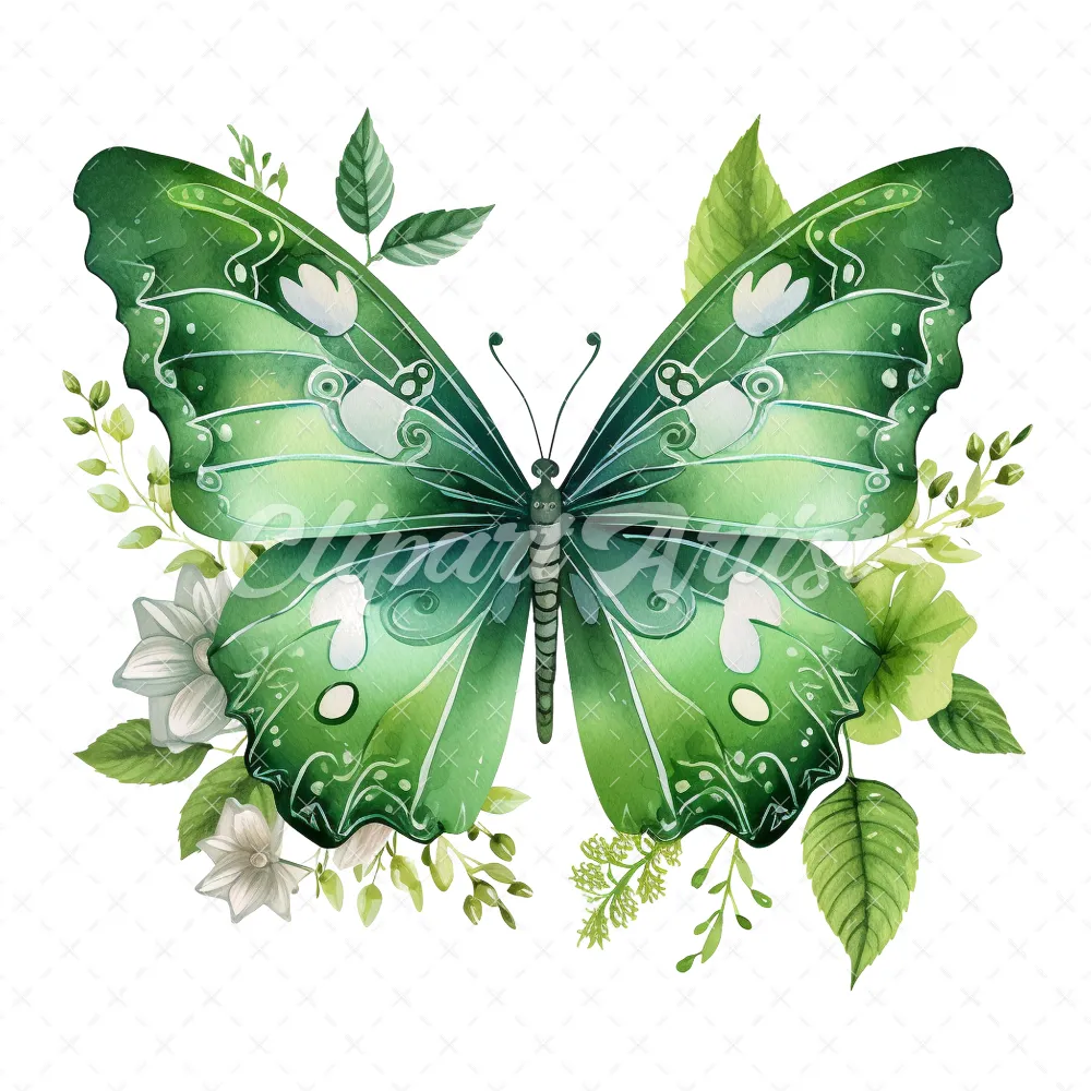 20 High-Quality Green Floral Butterfly Clipart – Butterfly digital watercolor JPG instant download for commercial use – Digital download