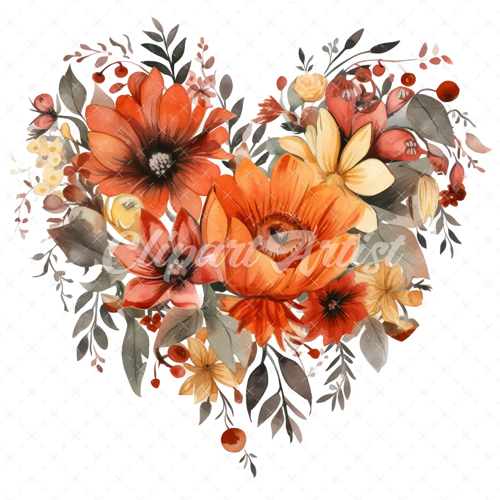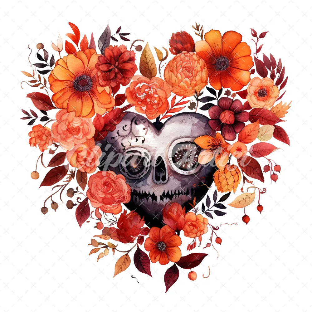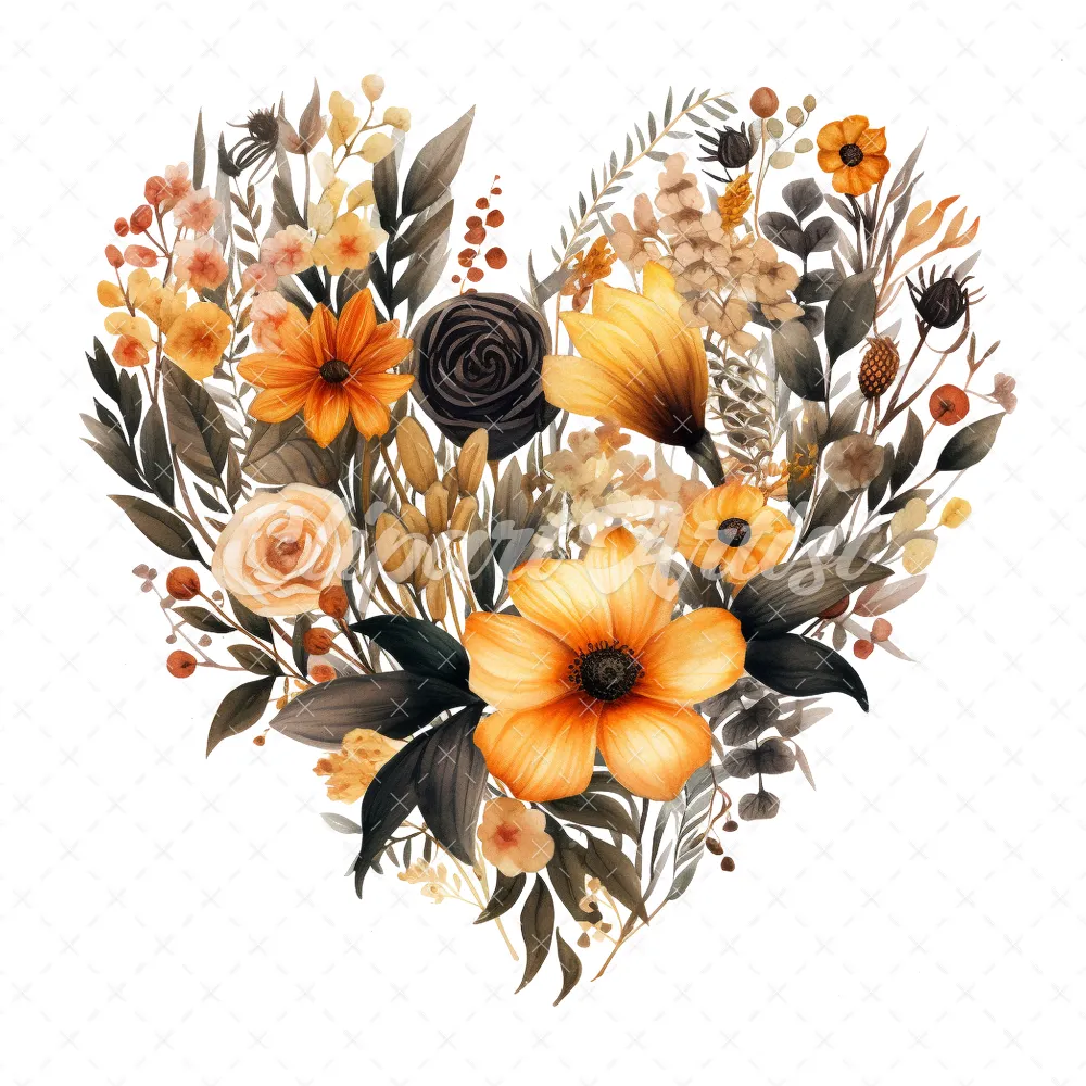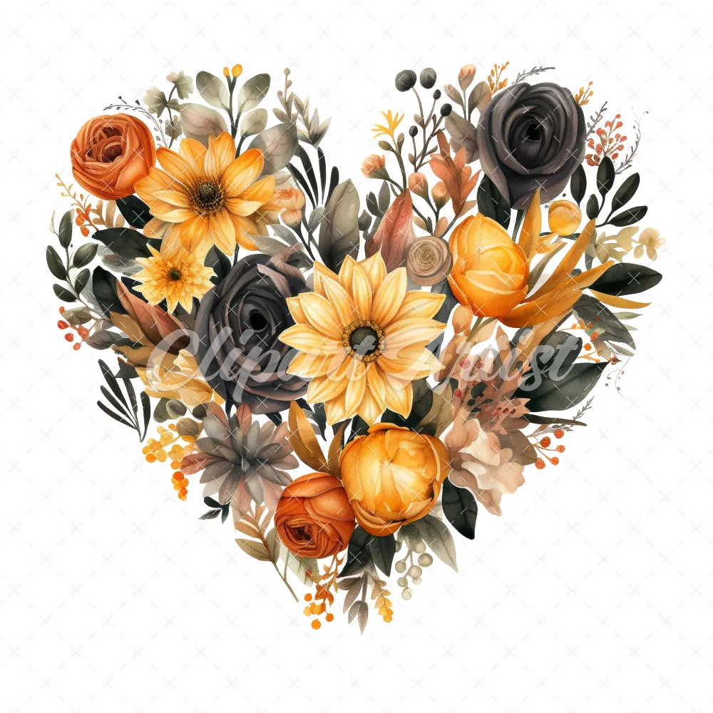 20 High-Quality Halloween Floral Hearts Clipart – Floral heart digital watercolor JPG instant download for commercial use – Digital download