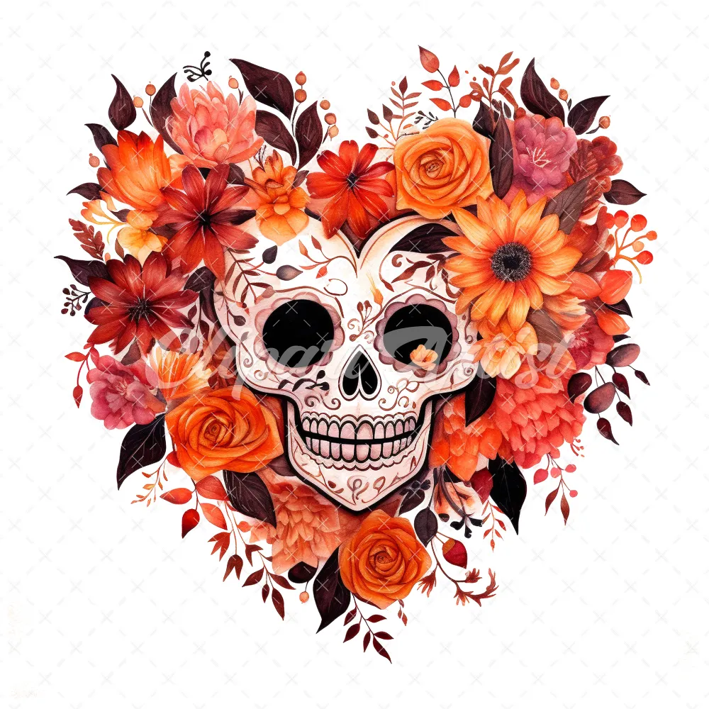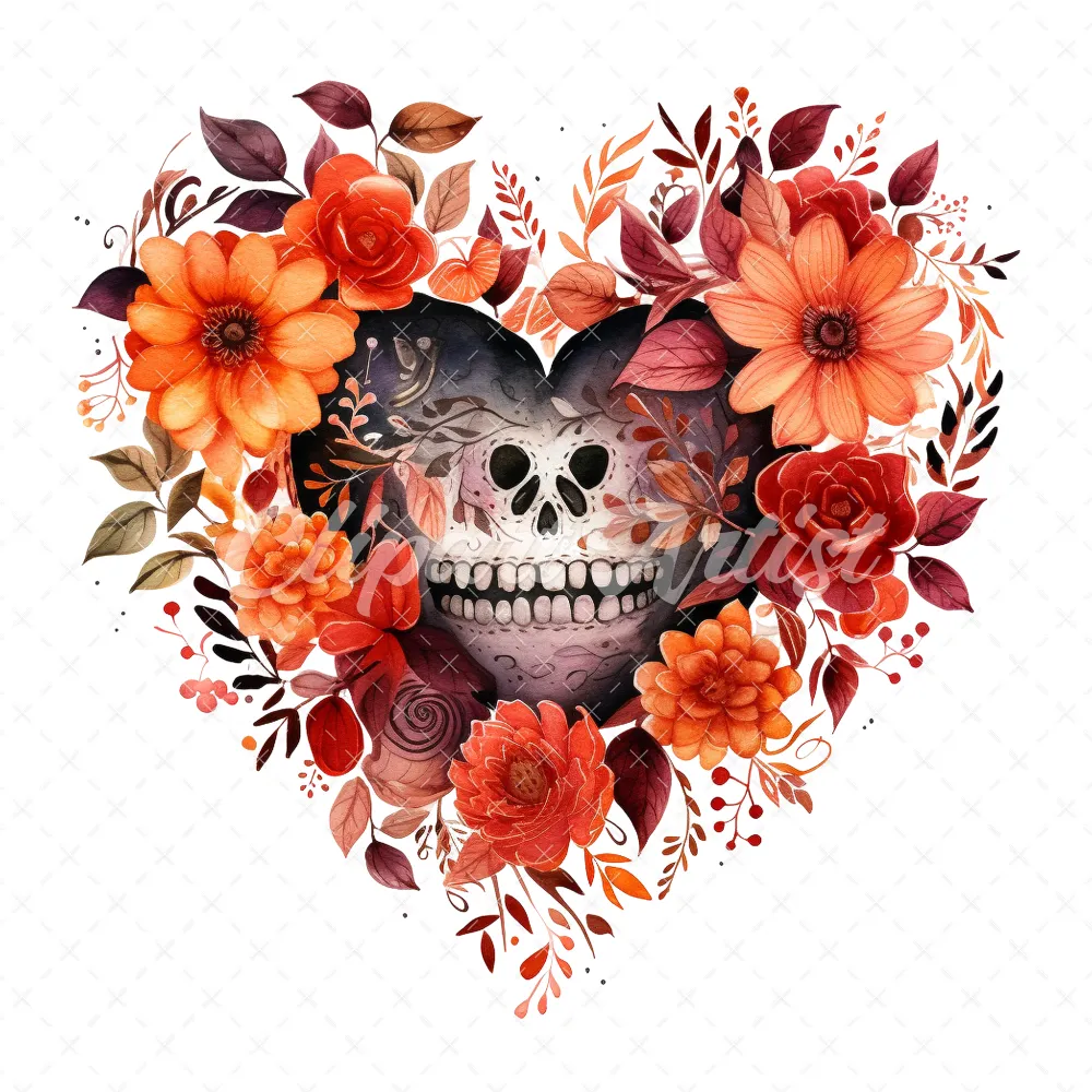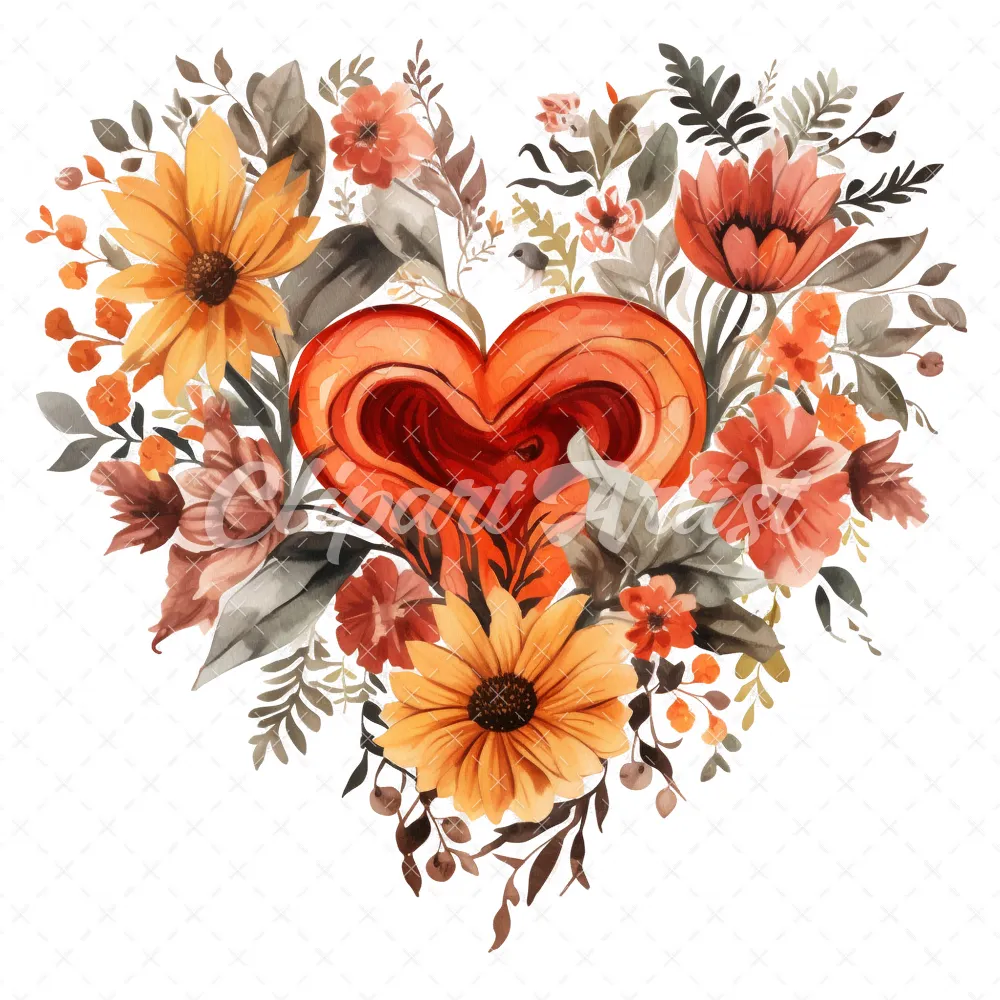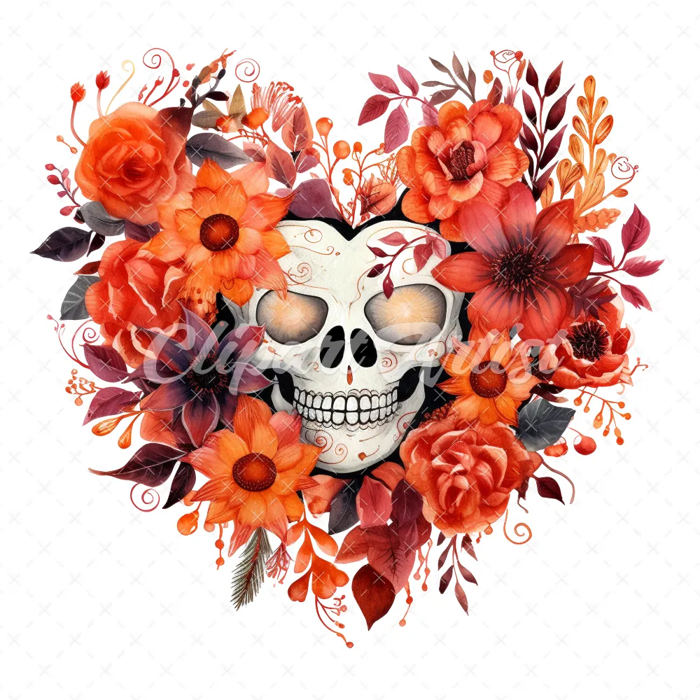 20 High-Quality Halloween Floral Hearts Clipart – Floral heart digital watercolor JPG instant download for commercial use – Digital download
