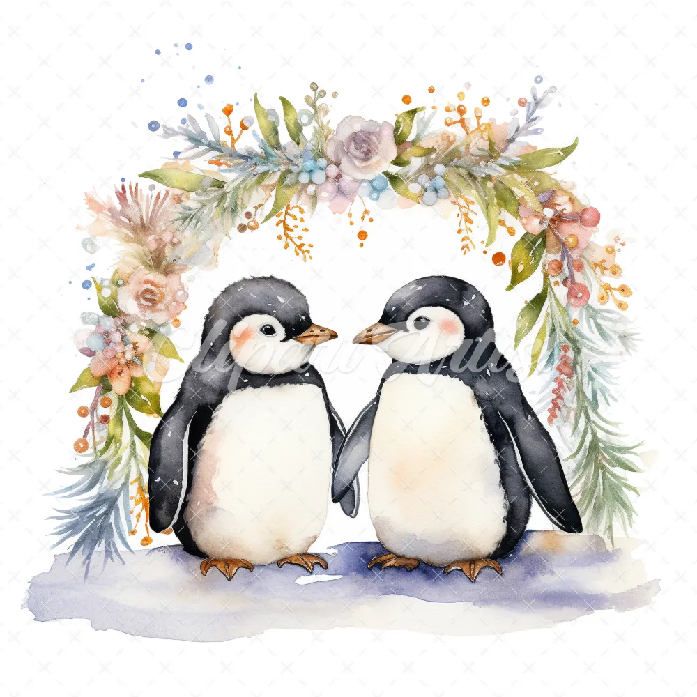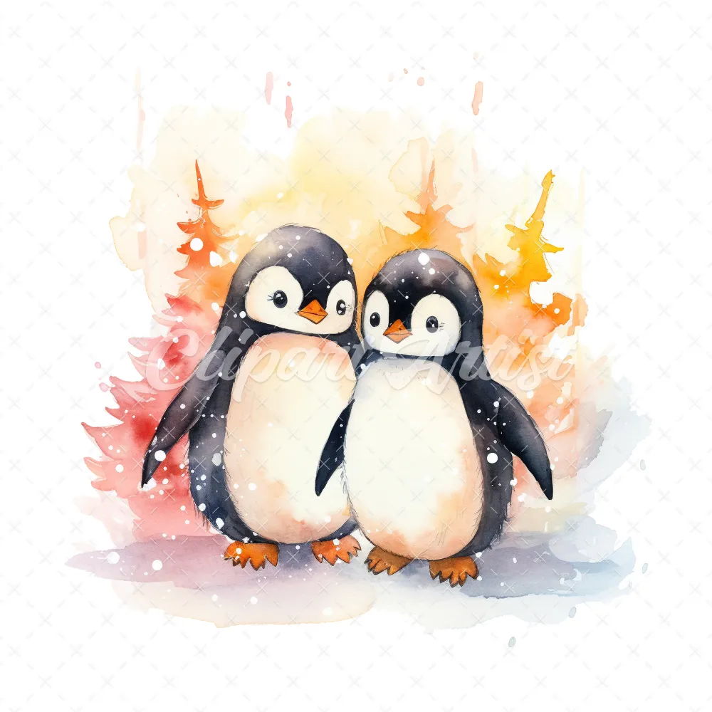 20 High-Quality Happy Penguin Friends Clipart – Penguin friend digital watercolor JPG instant download for commercial use – Digital download