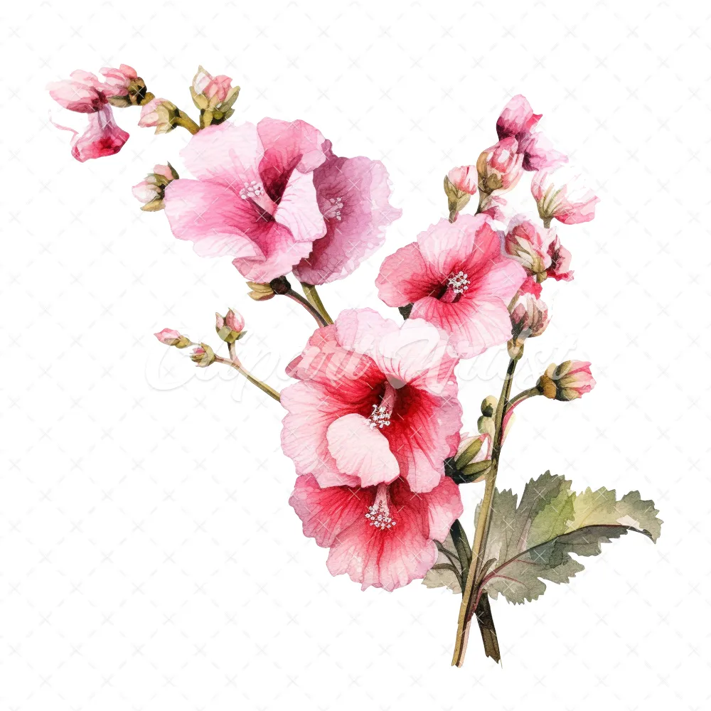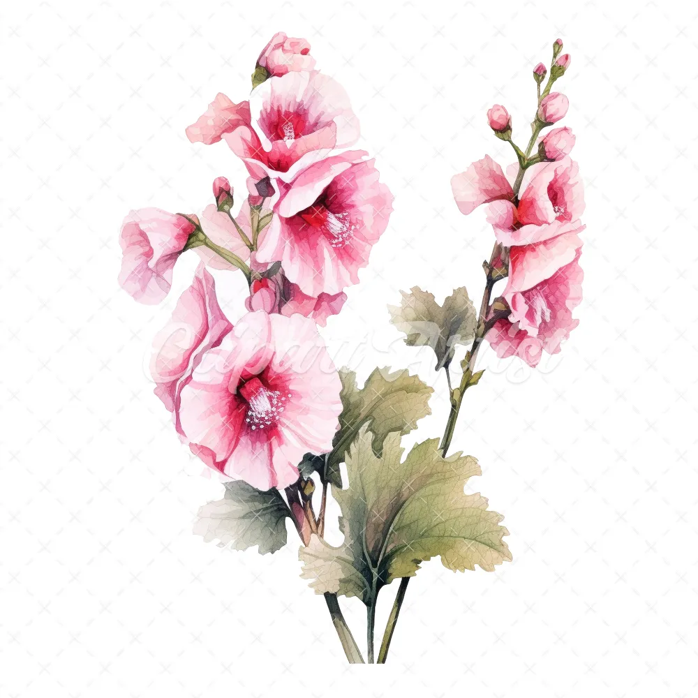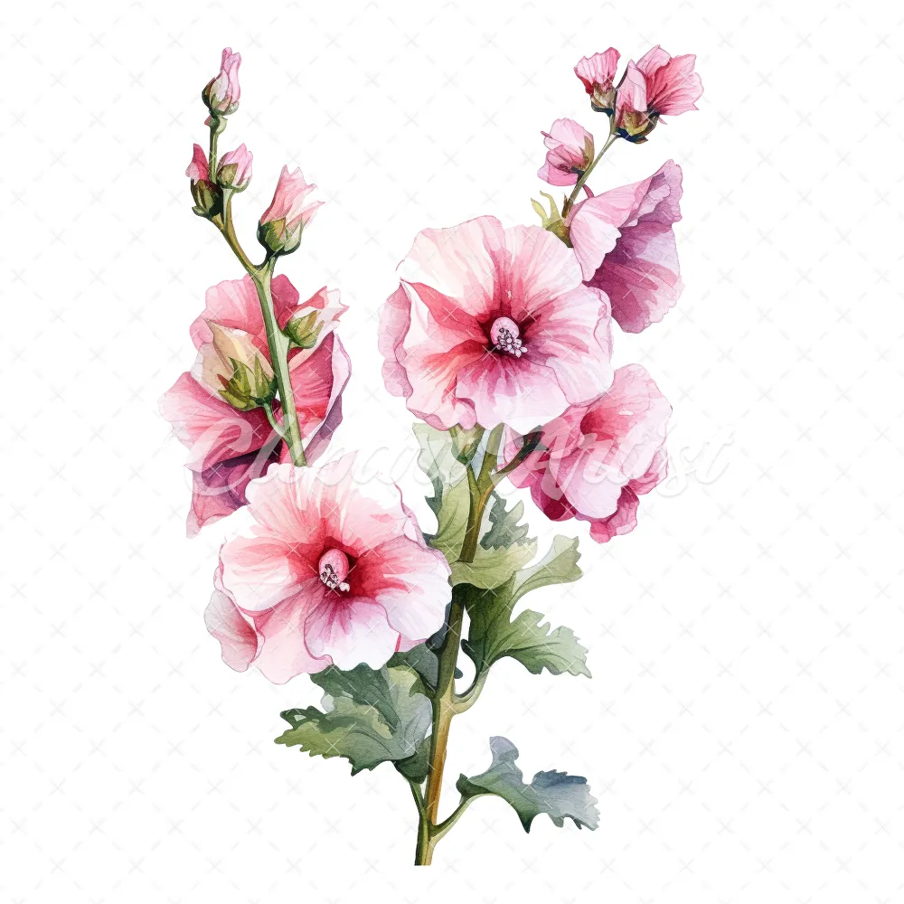 20 High-Quality Hollyhock Clipart – Hollyhock flowers digital watercolor JPG instant download for commercial use – Digital download