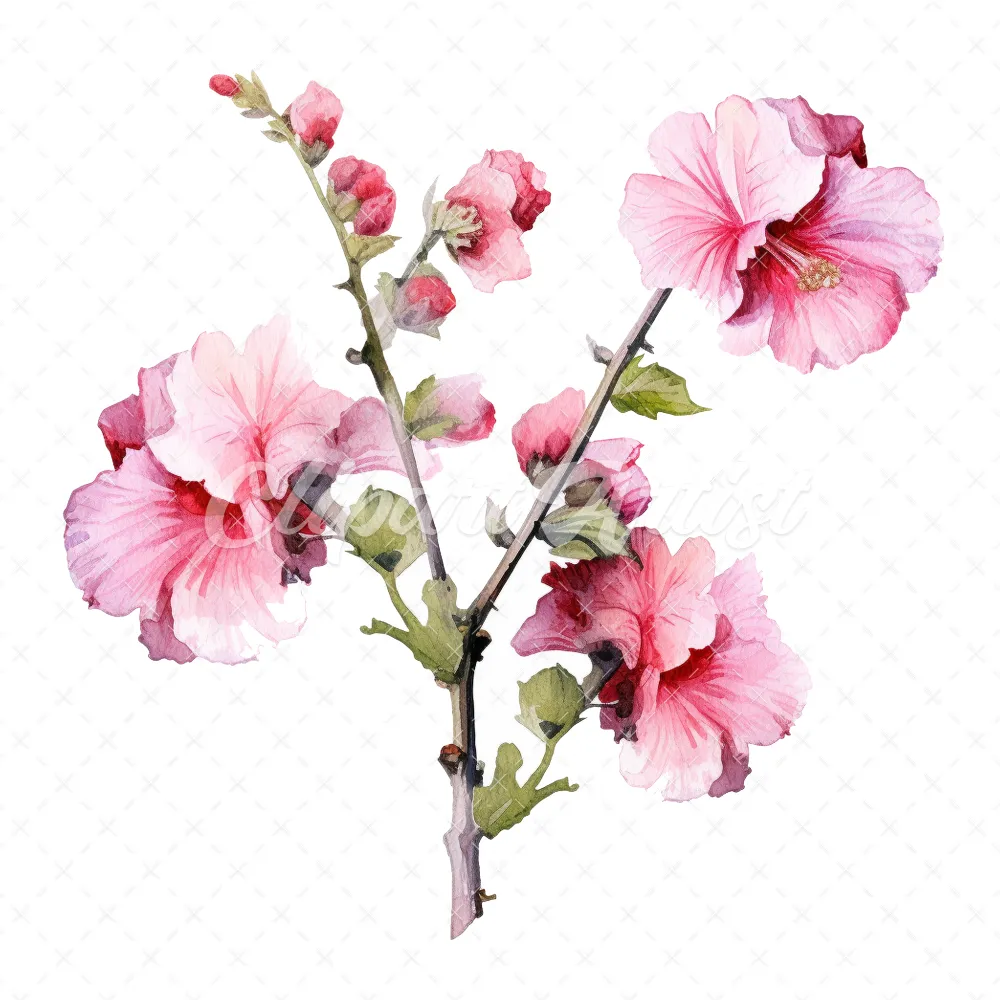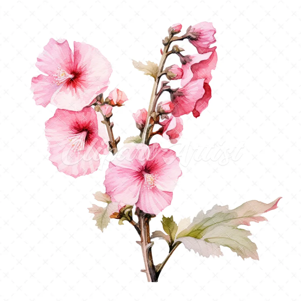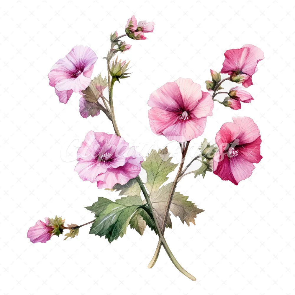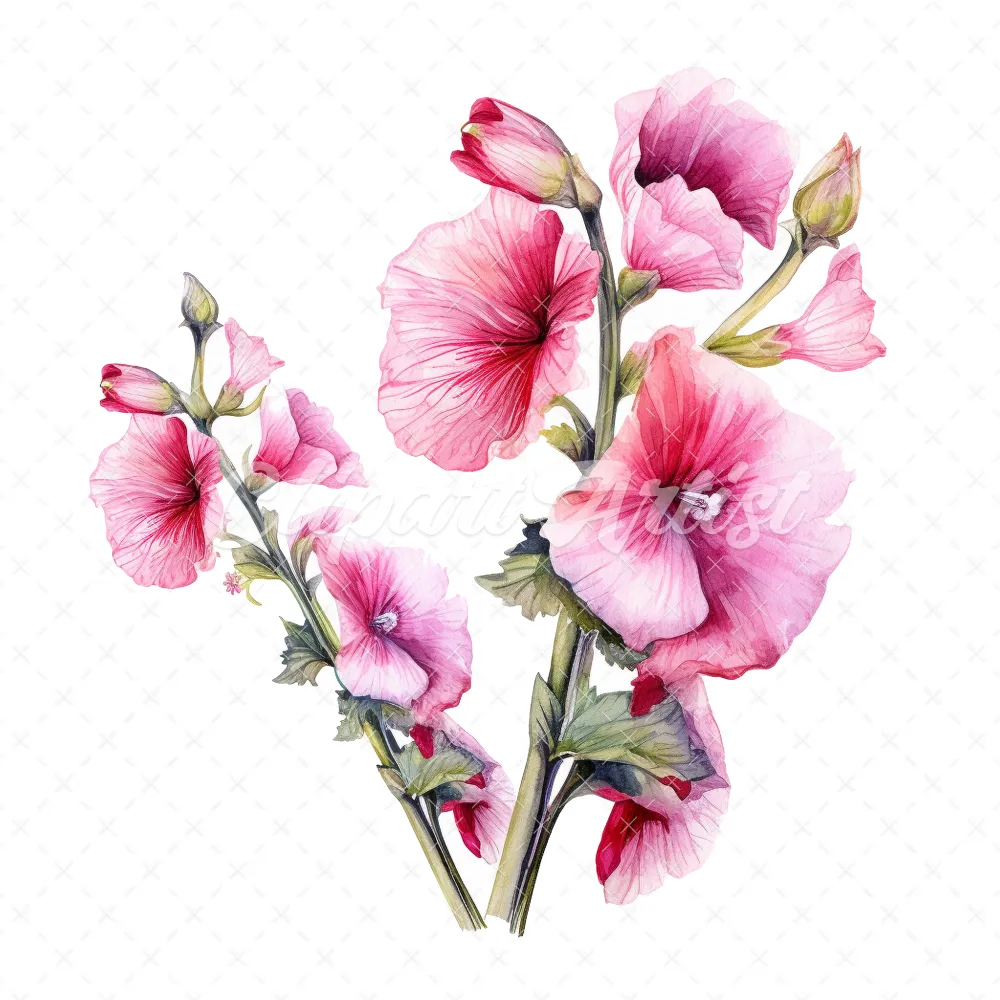 20 High-Quality Hollyhock Clipart – Hollyhock flowers digital watercolor JPG instant download for commercial use – Digital download