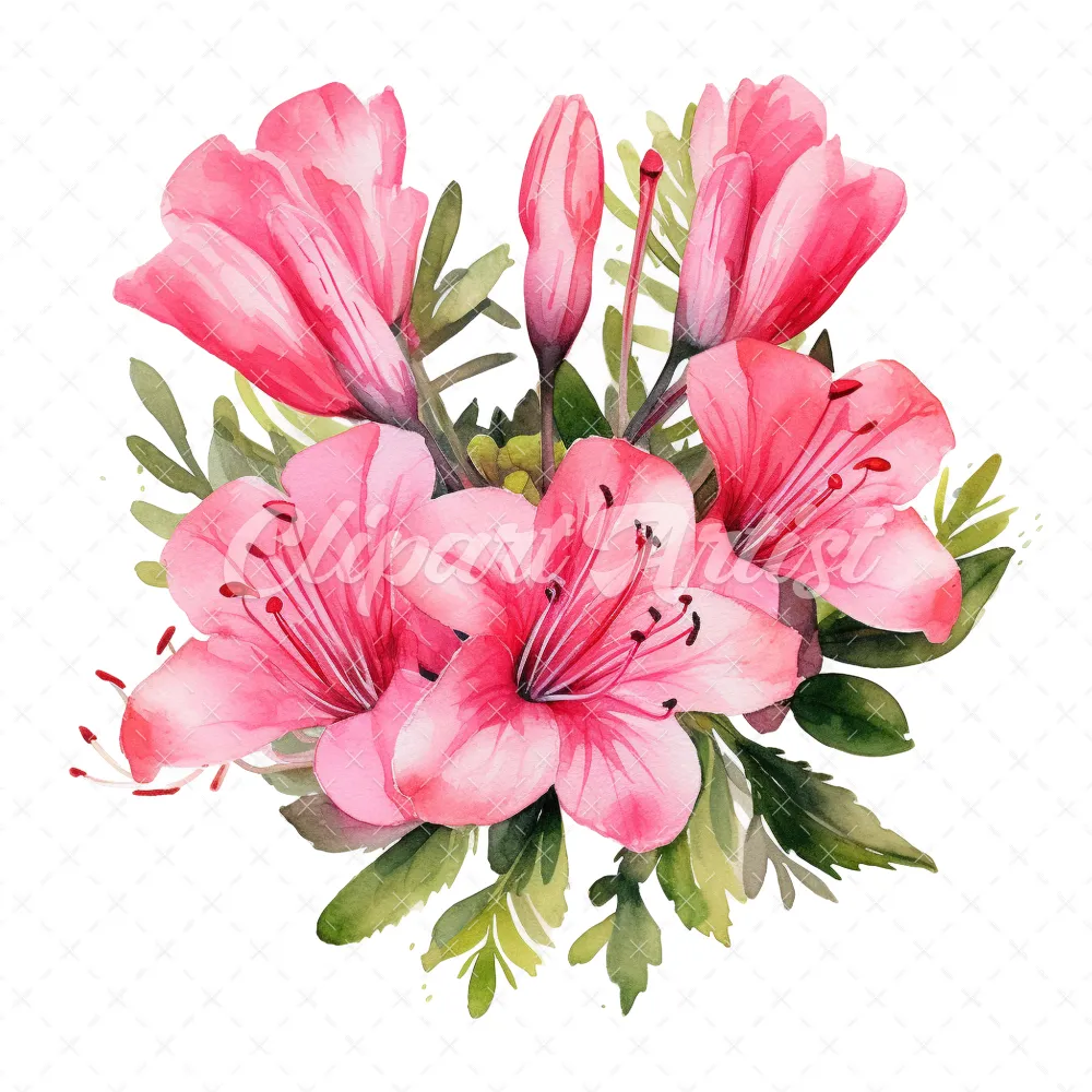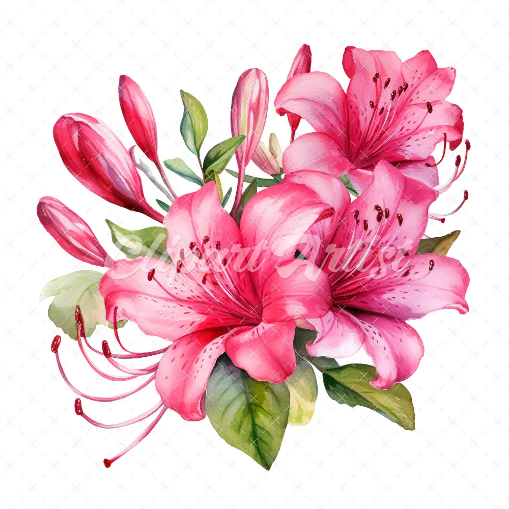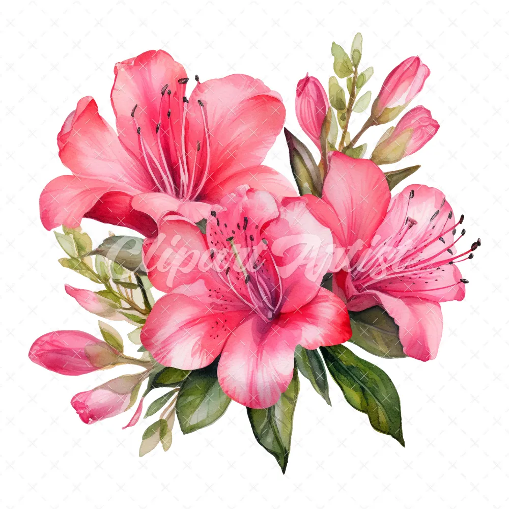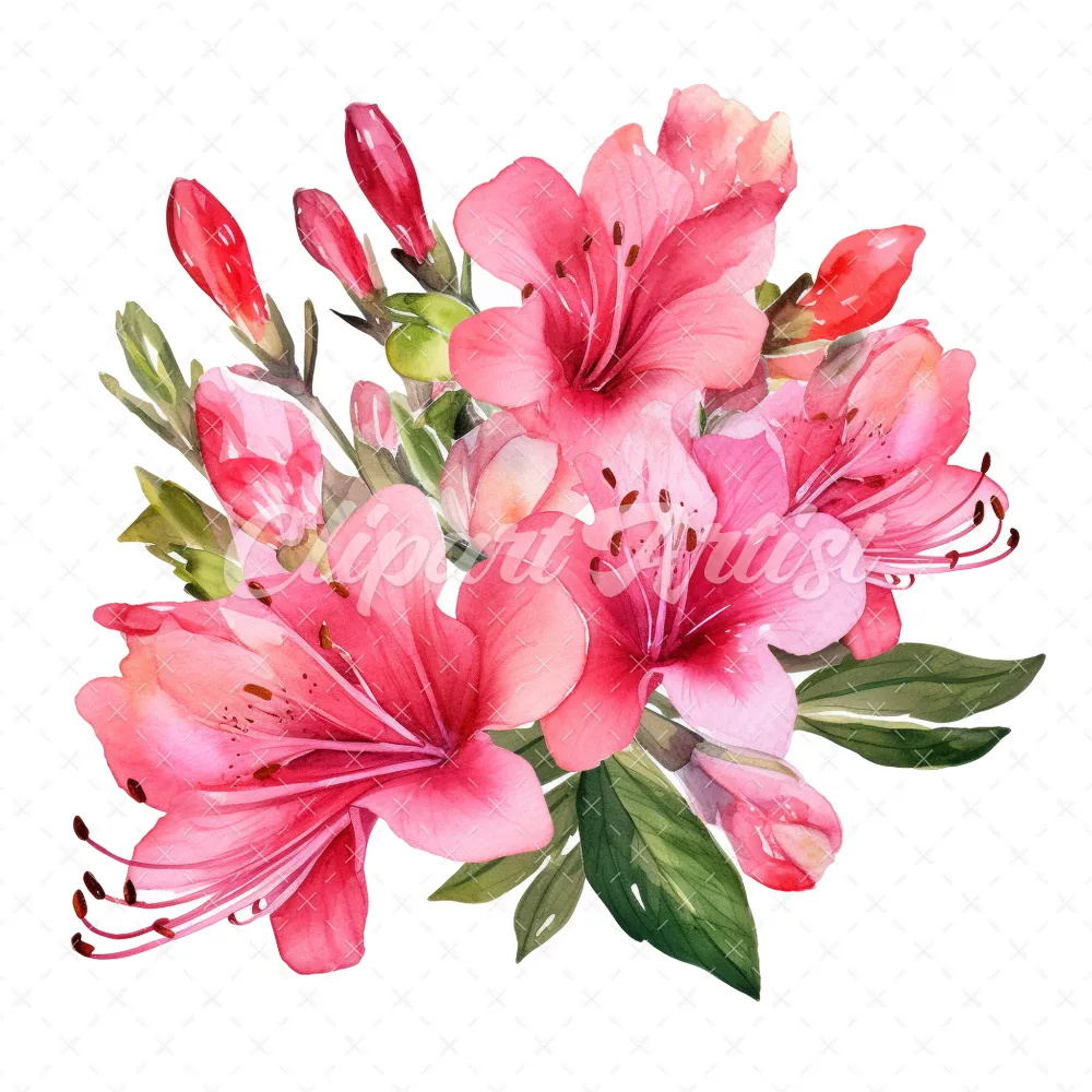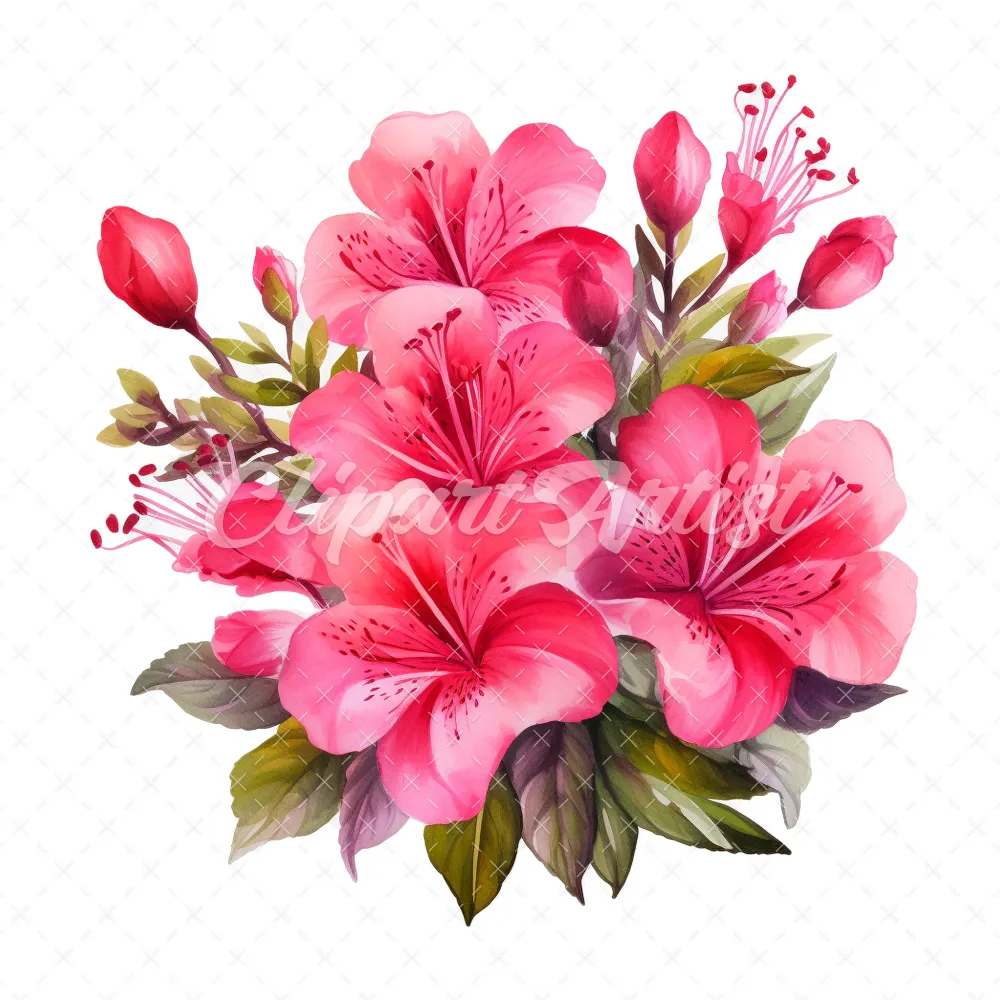 20 High-Quality Hot Pink Azalea Bouquet Clipart – Hot Azalea digital watercolor JPG instant download for commercial use – Digital download