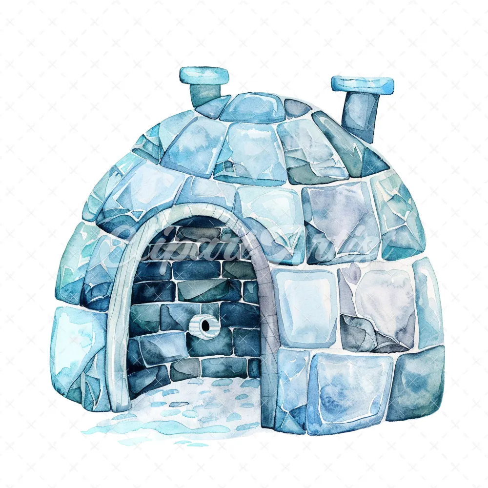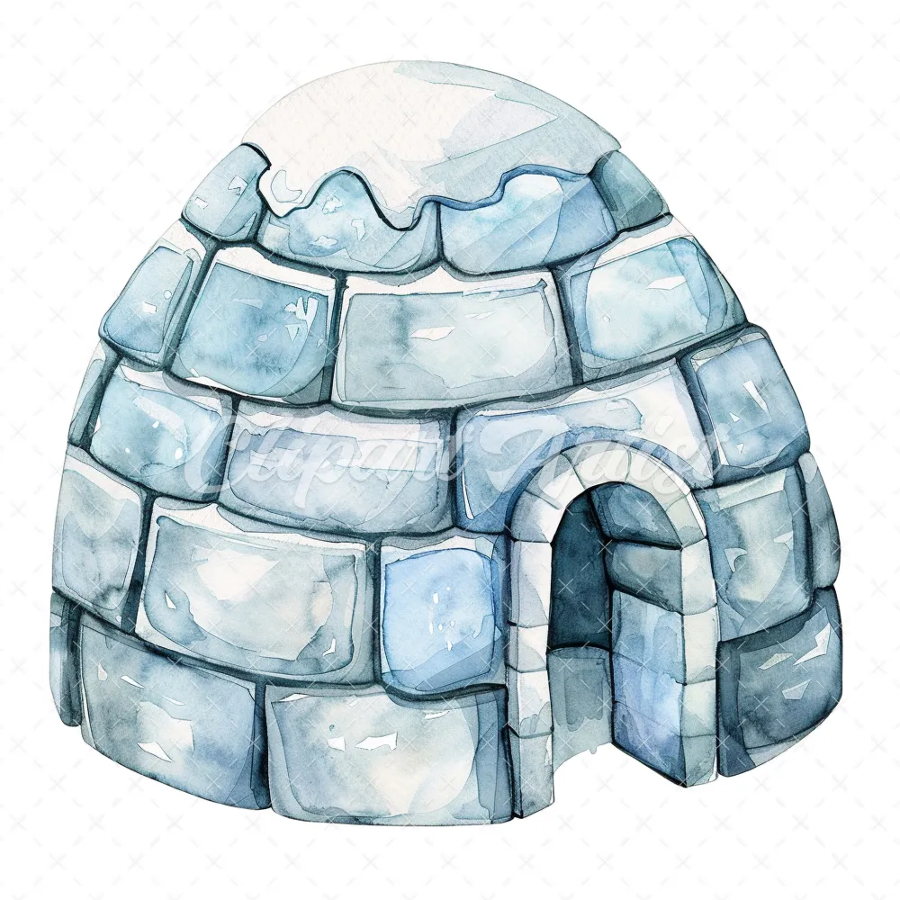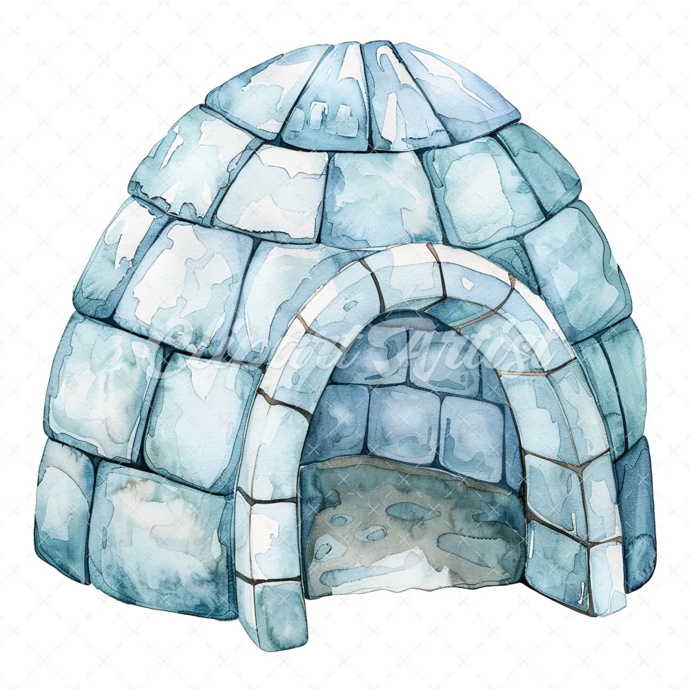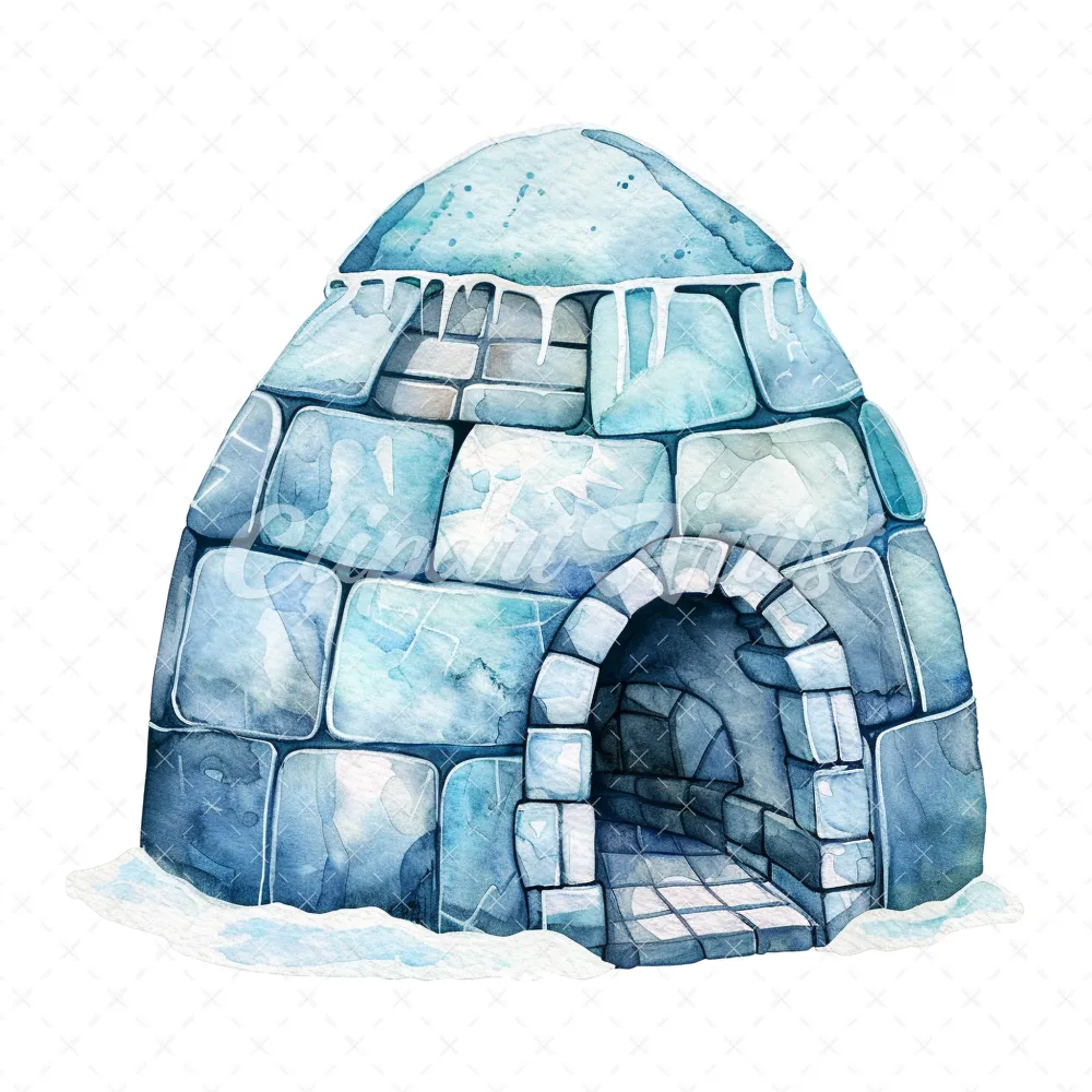 20 High-Quality Igloo Clipart – Snow igloo watercolor JPG instant download for commercial use – Digital download