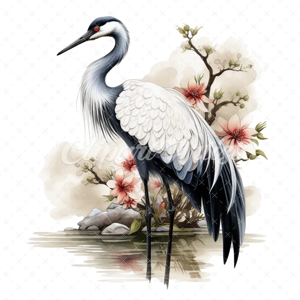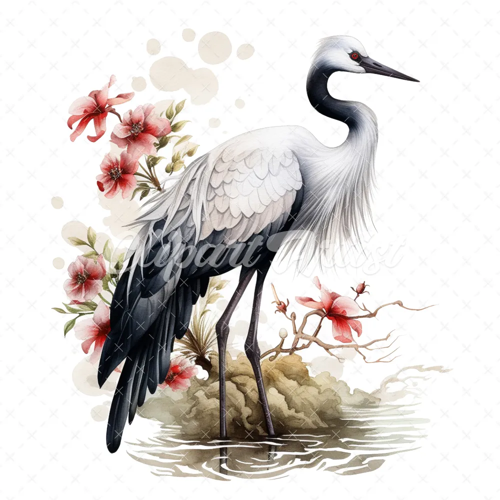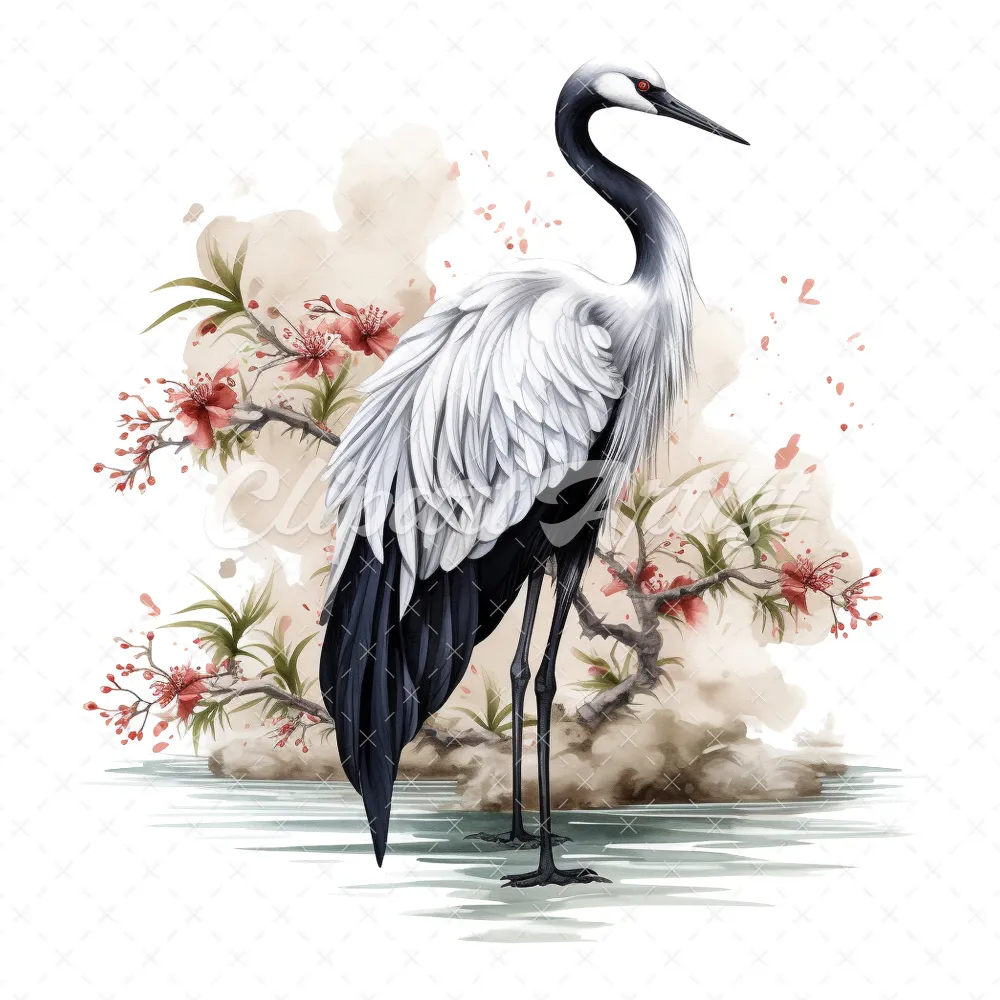 20 High-Quality Japanese Crane Clipart – Japanese crane digital watercolor JPG instant download for commercial use – Digital download