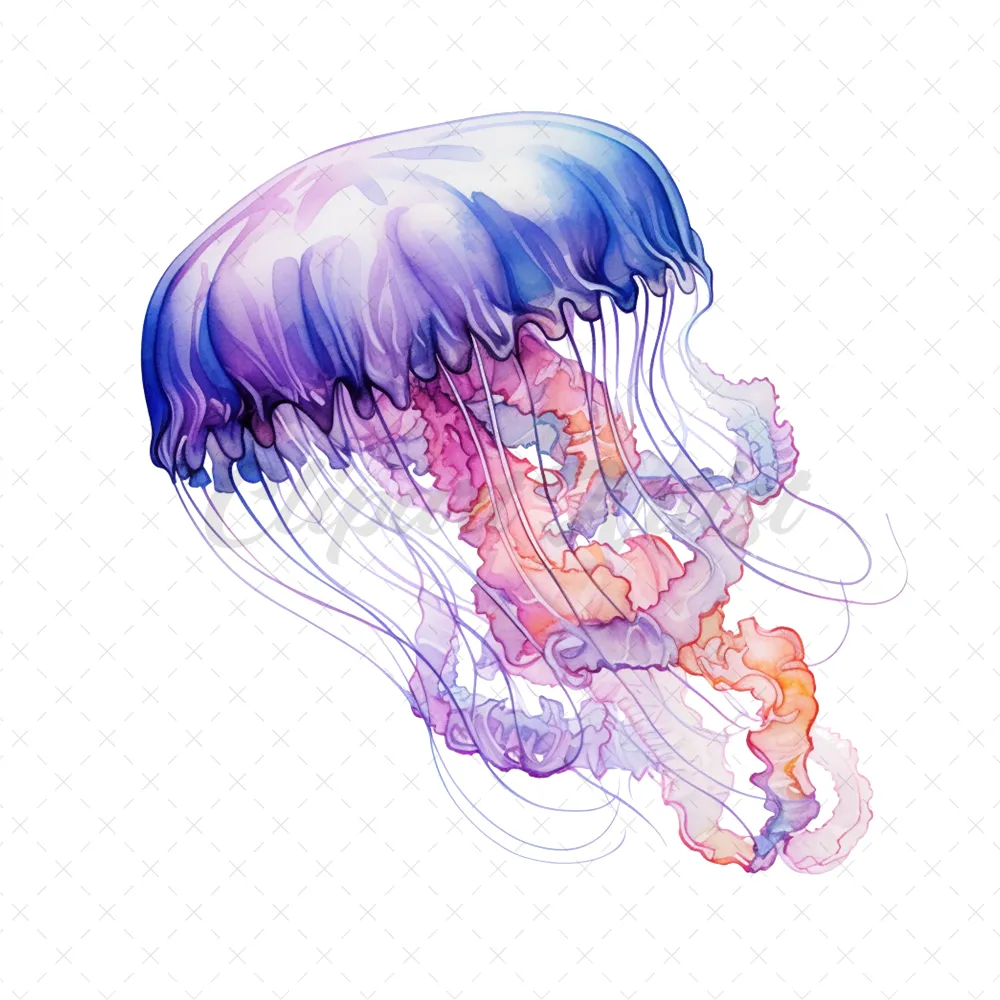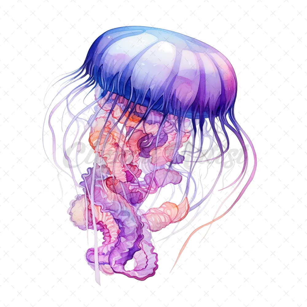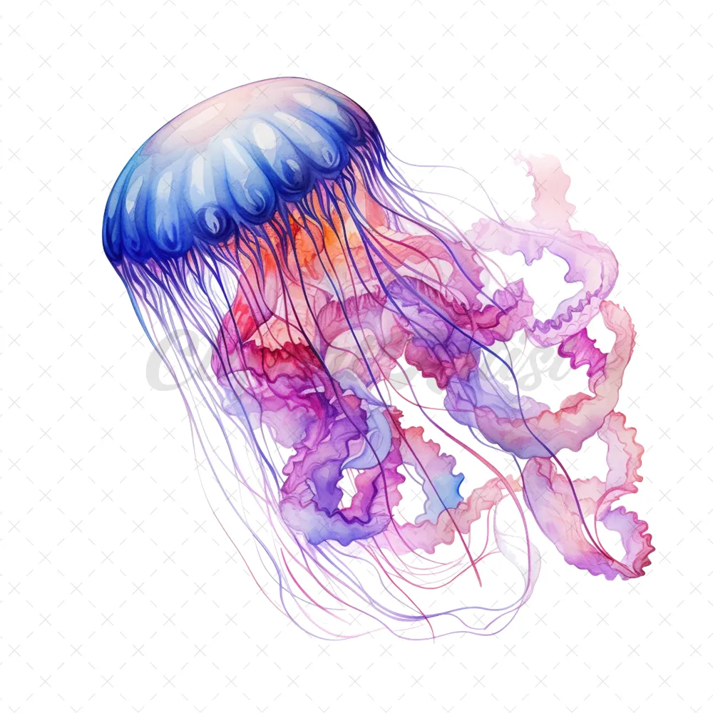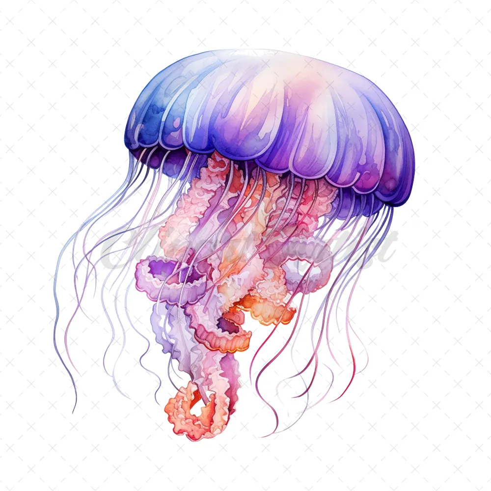 20 High-Quality Jellyfish Clipart – Jellyfish digital watercolor JPG instant download for commercial use – Digital download