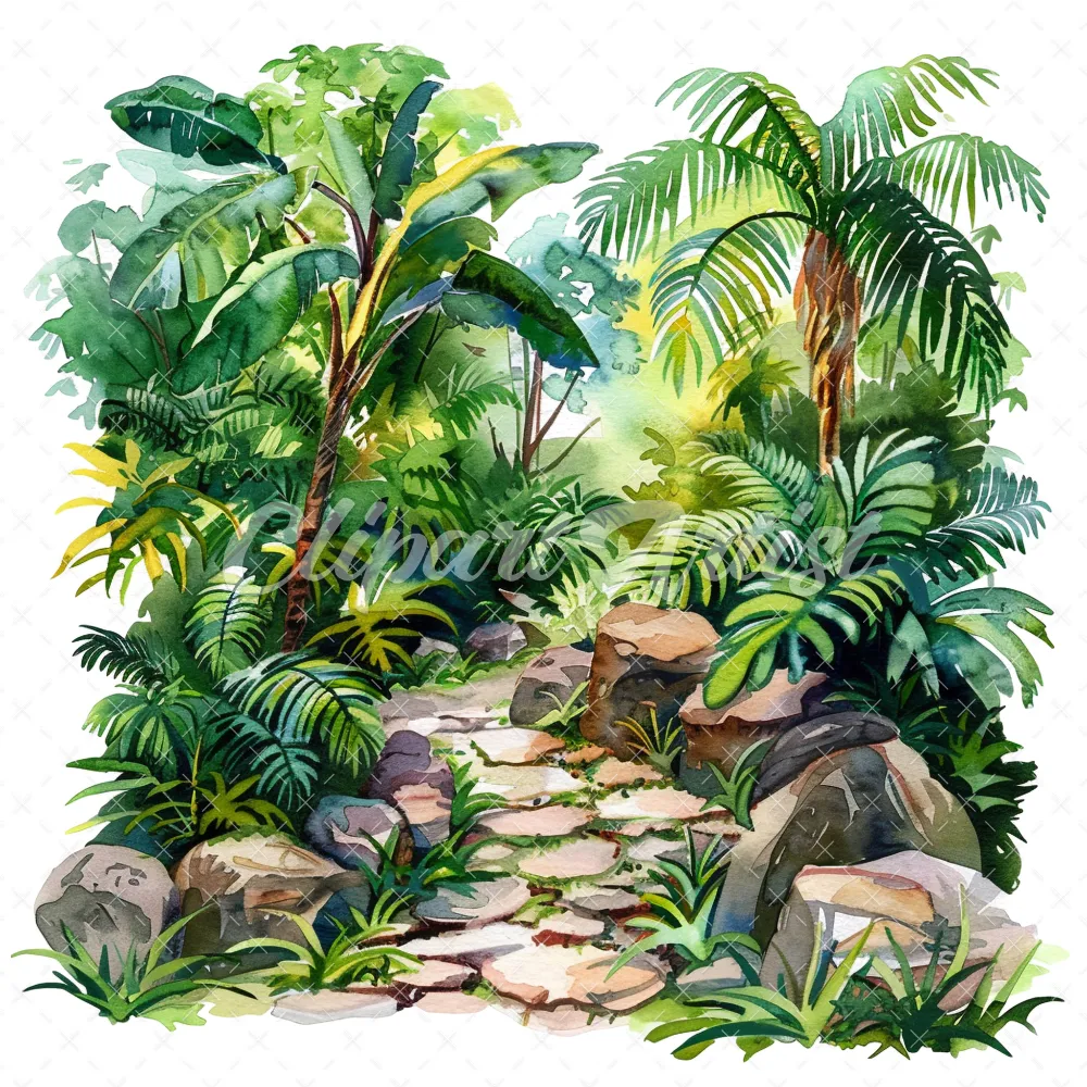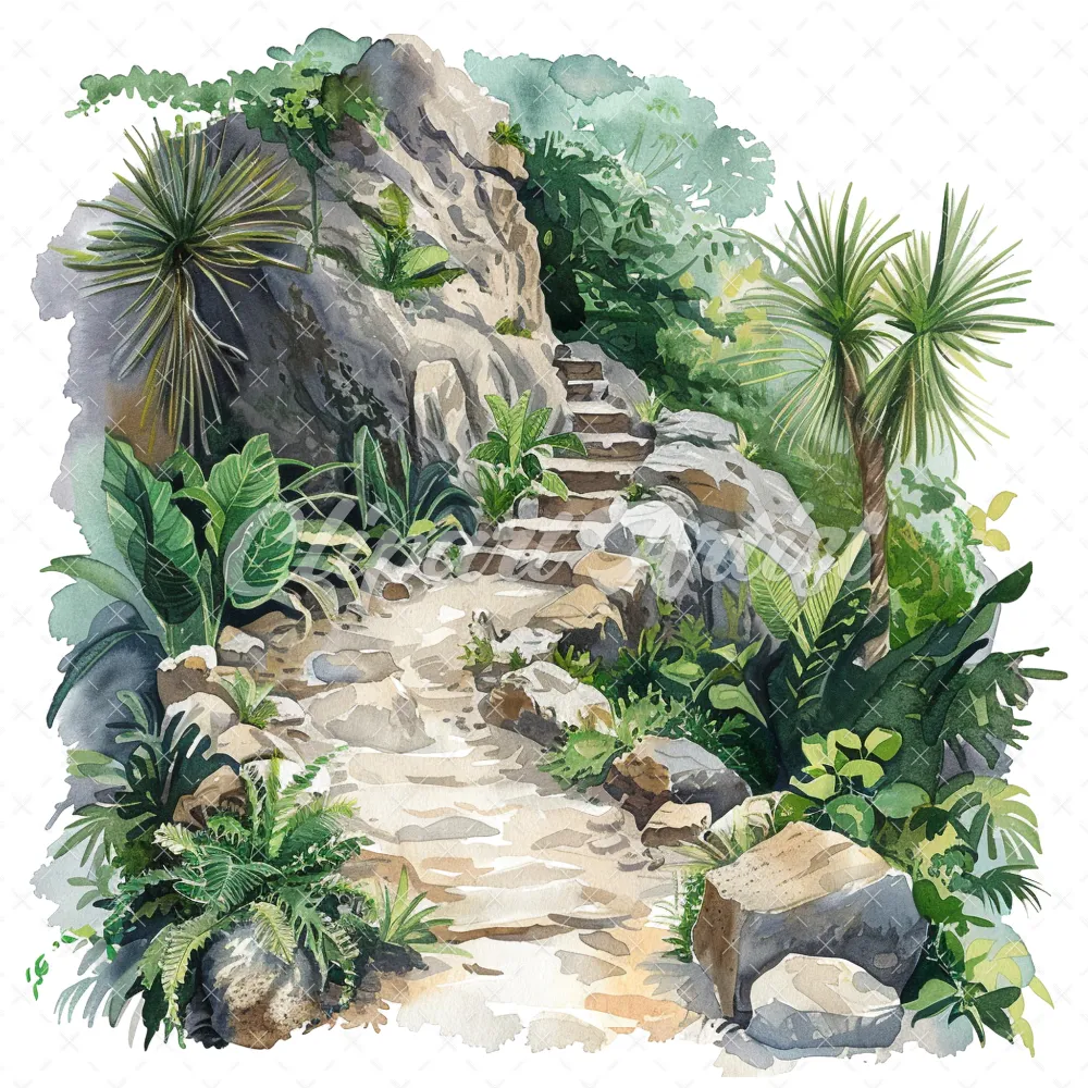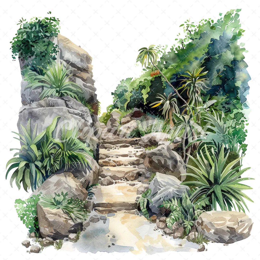 20 High-Quality Jungle Rocky Path Clipart – Jungle rocky path digital watercolor JPG instant download for commercial use – Digital download