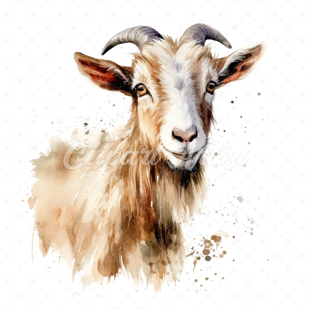 20 High-Quality Kiko Goat Clipart – Kiko goat digital watercolor JPG instant download for commercial use – Digital download