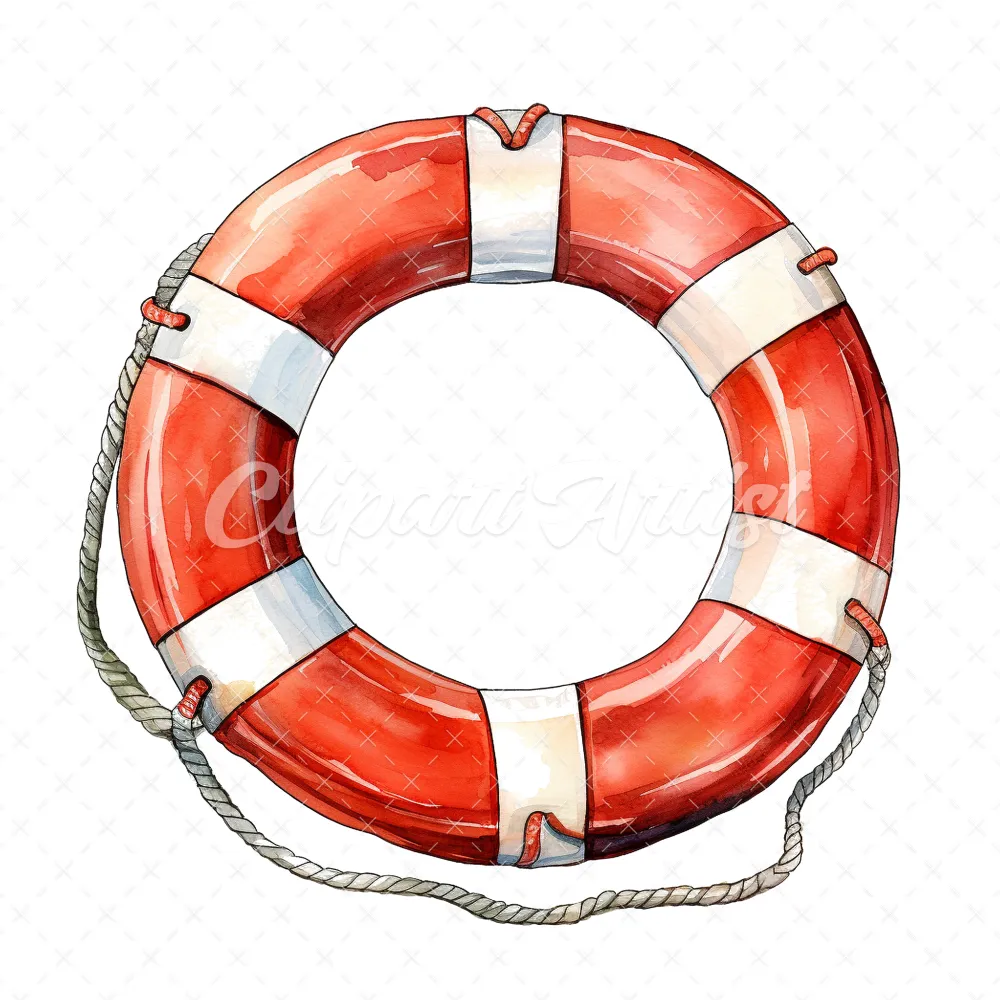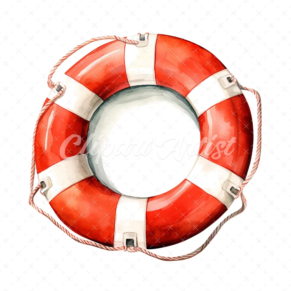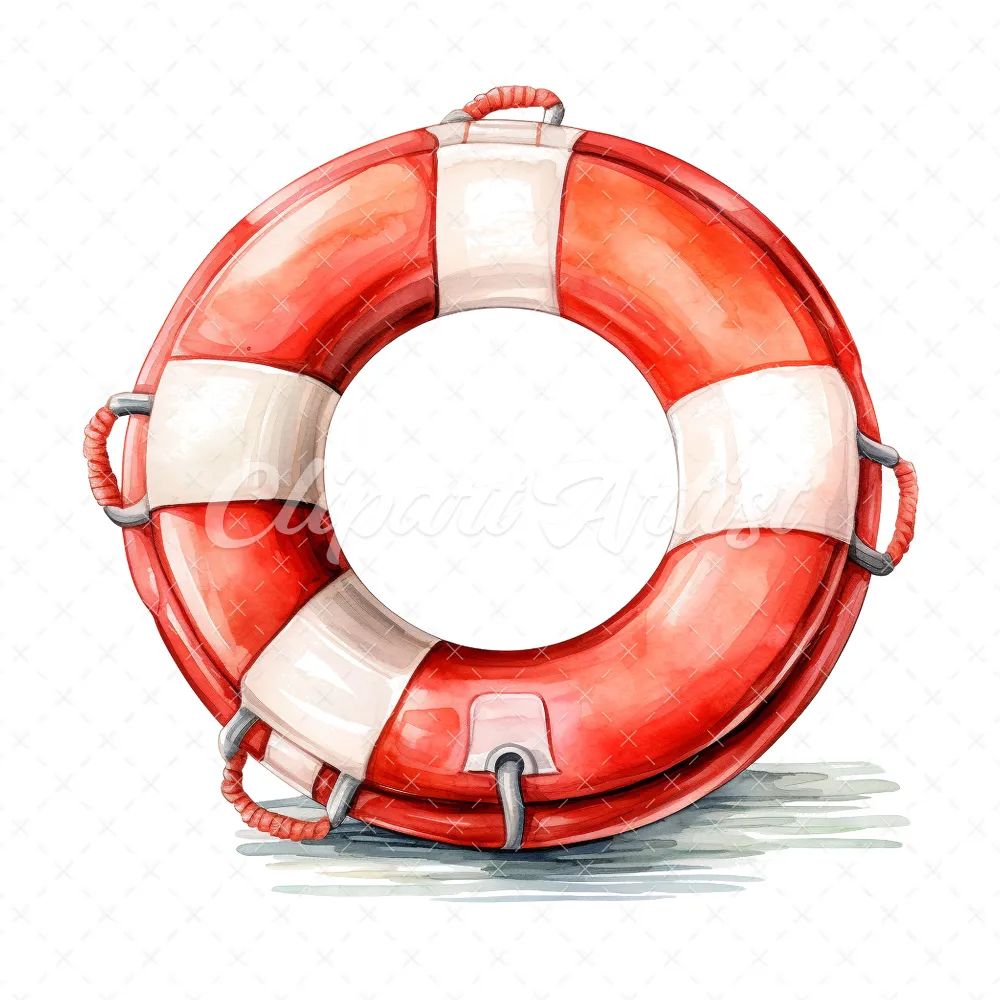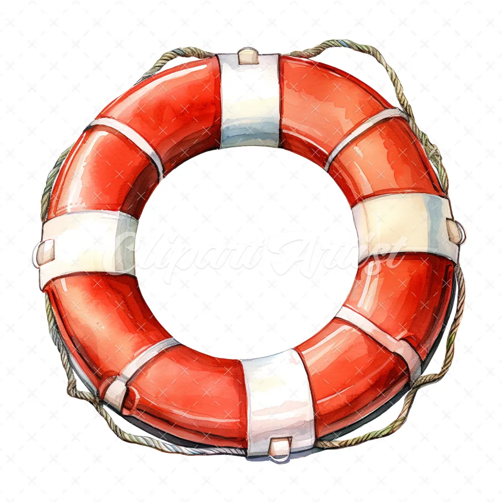 20 High-Quality Lifebuoy Clipart – Lifebuoy digital watercolor JPG instant download for commercial use – Digital download