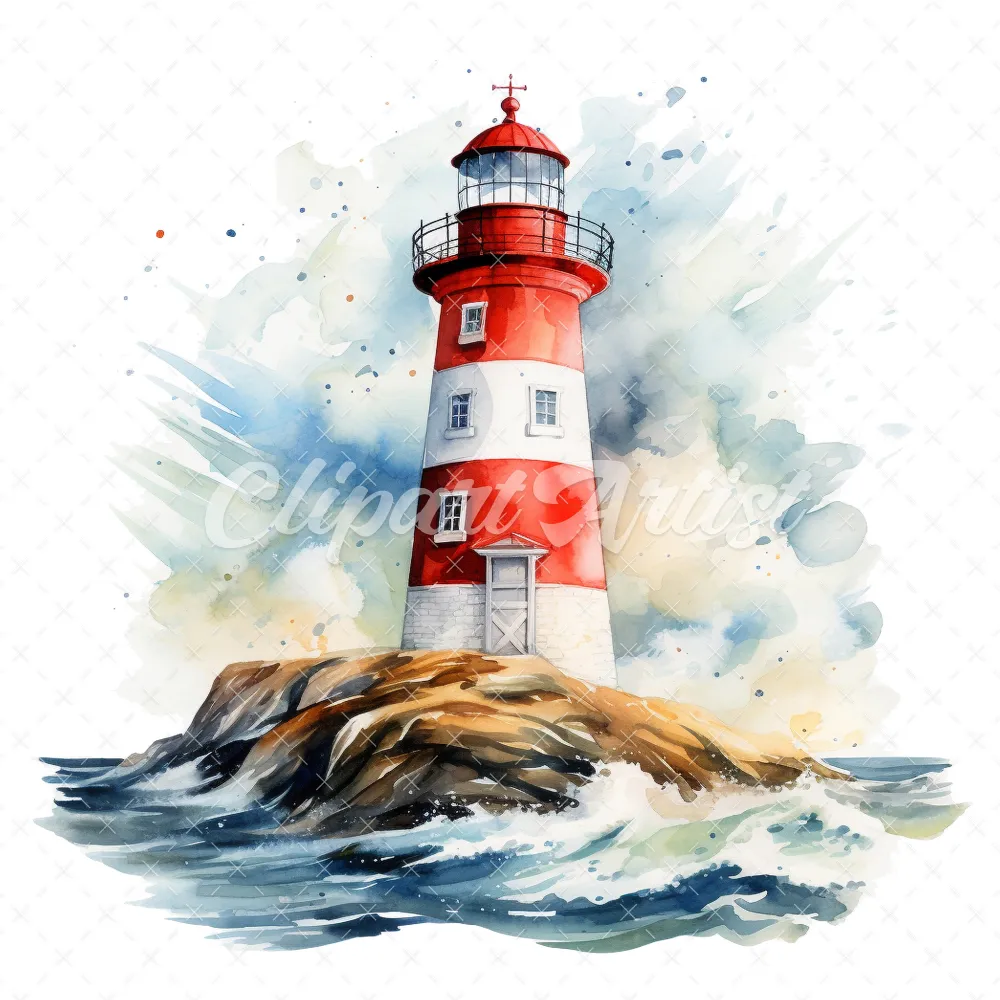 20 High-Quality Lighthouses Clipart – Lighthouses digital watercolor JPG instant download for commercial use – Digital download