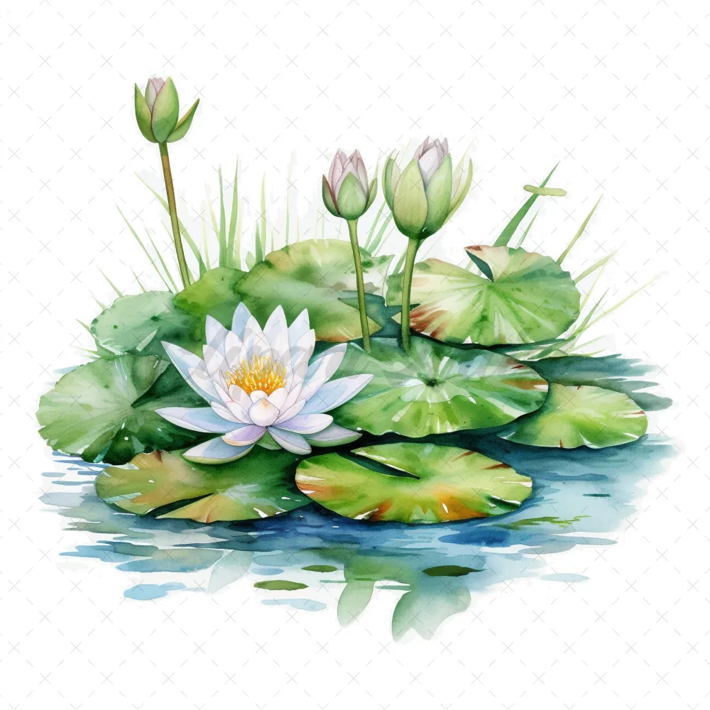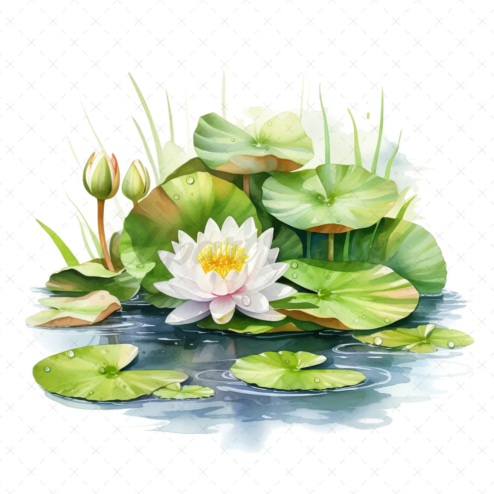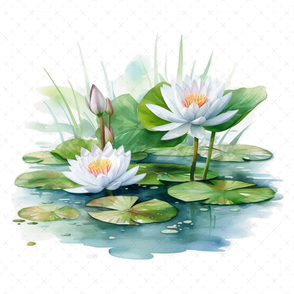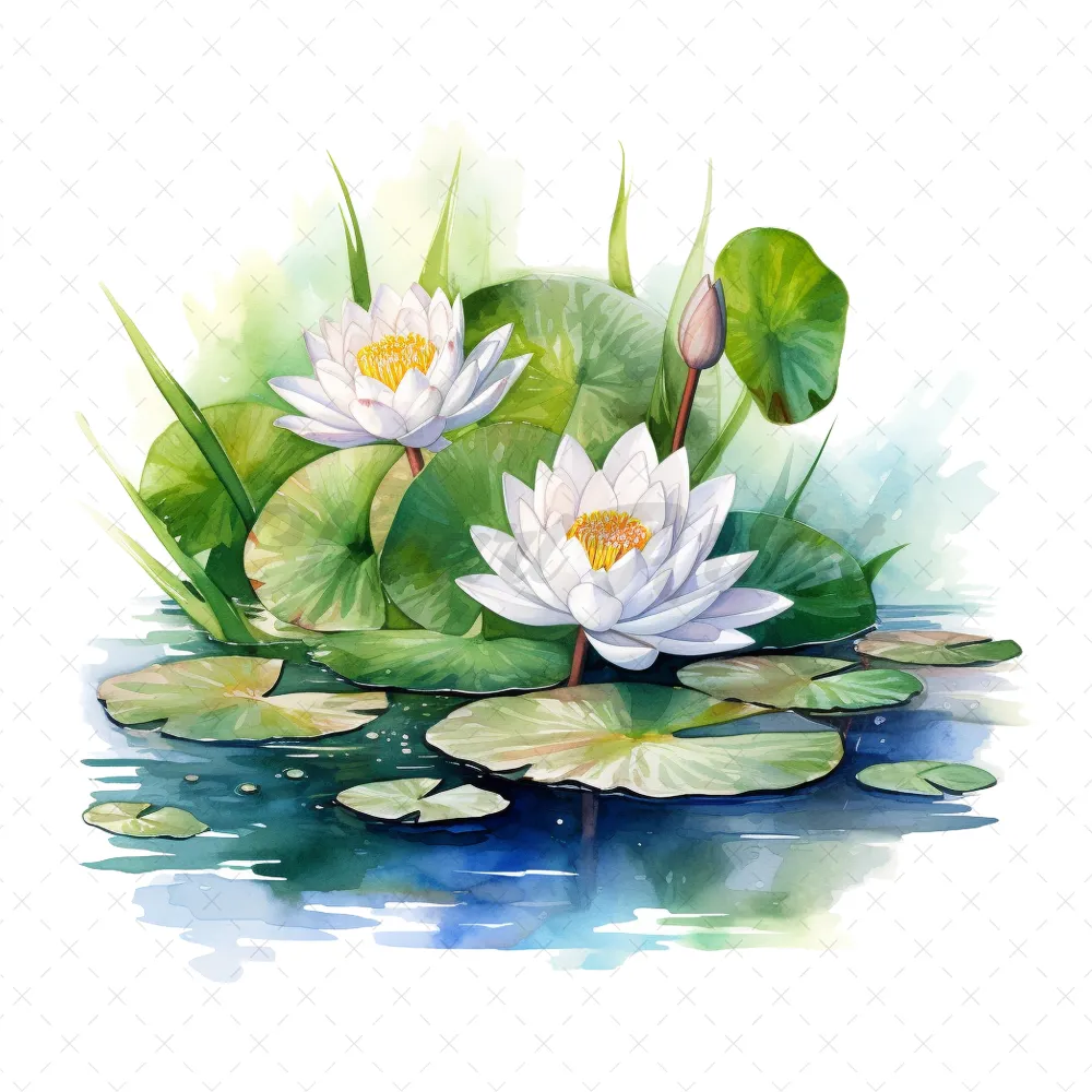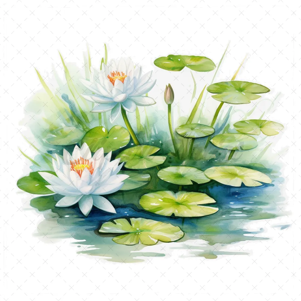 20 High-Quality Lily Pond Clipart – Lily pond digital watercolor JPG instant download for commercial use – Digital download