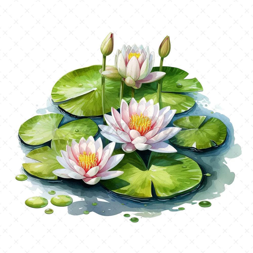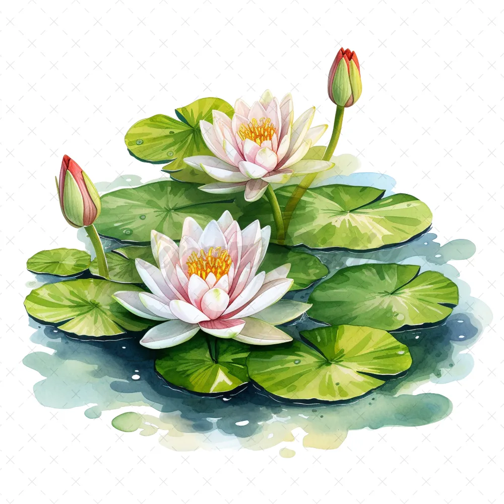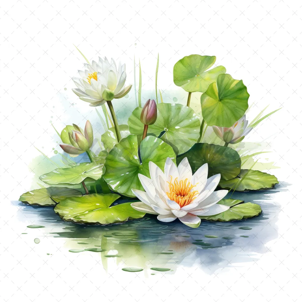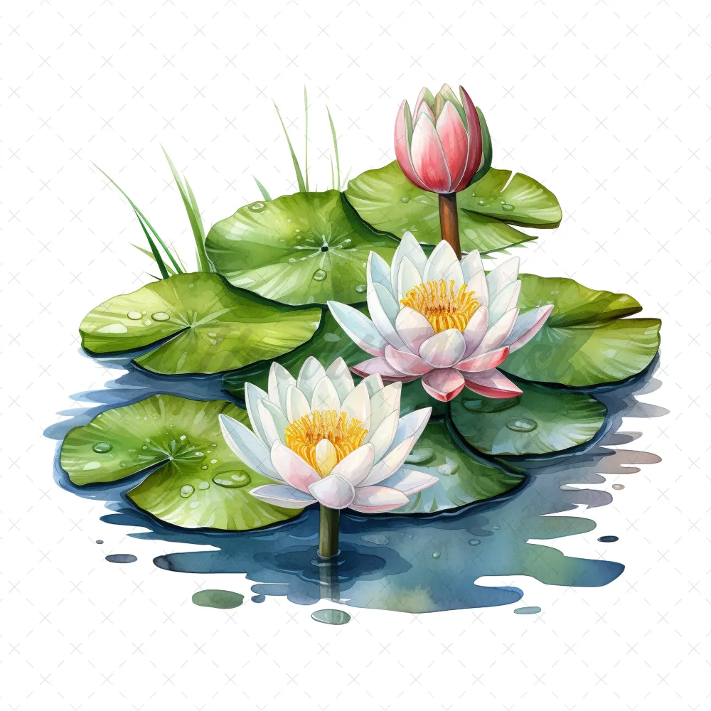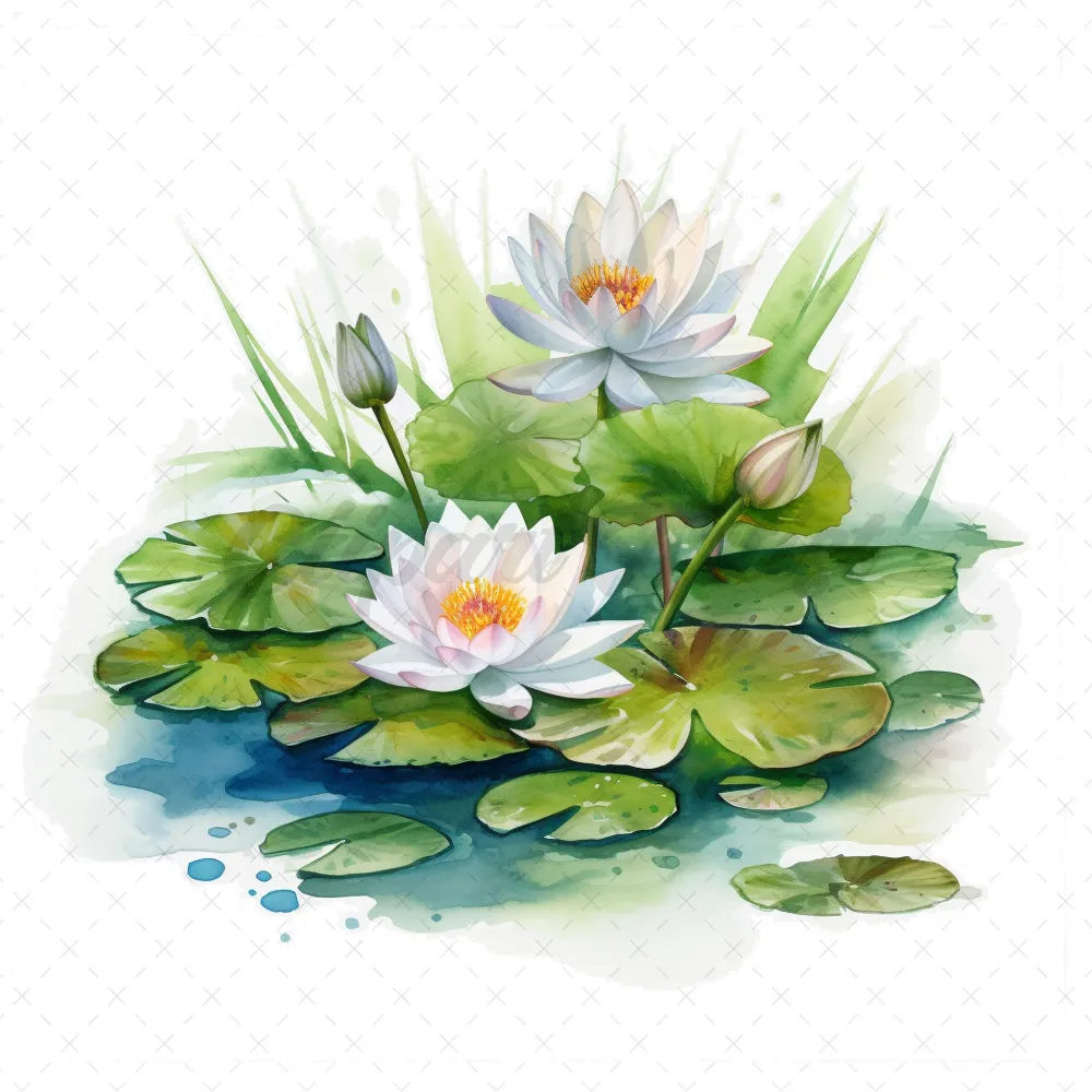 20 High-Quality Lily Pond Clipart – Lily pond digital watercolor JPG instant download for commercial use – Digital download